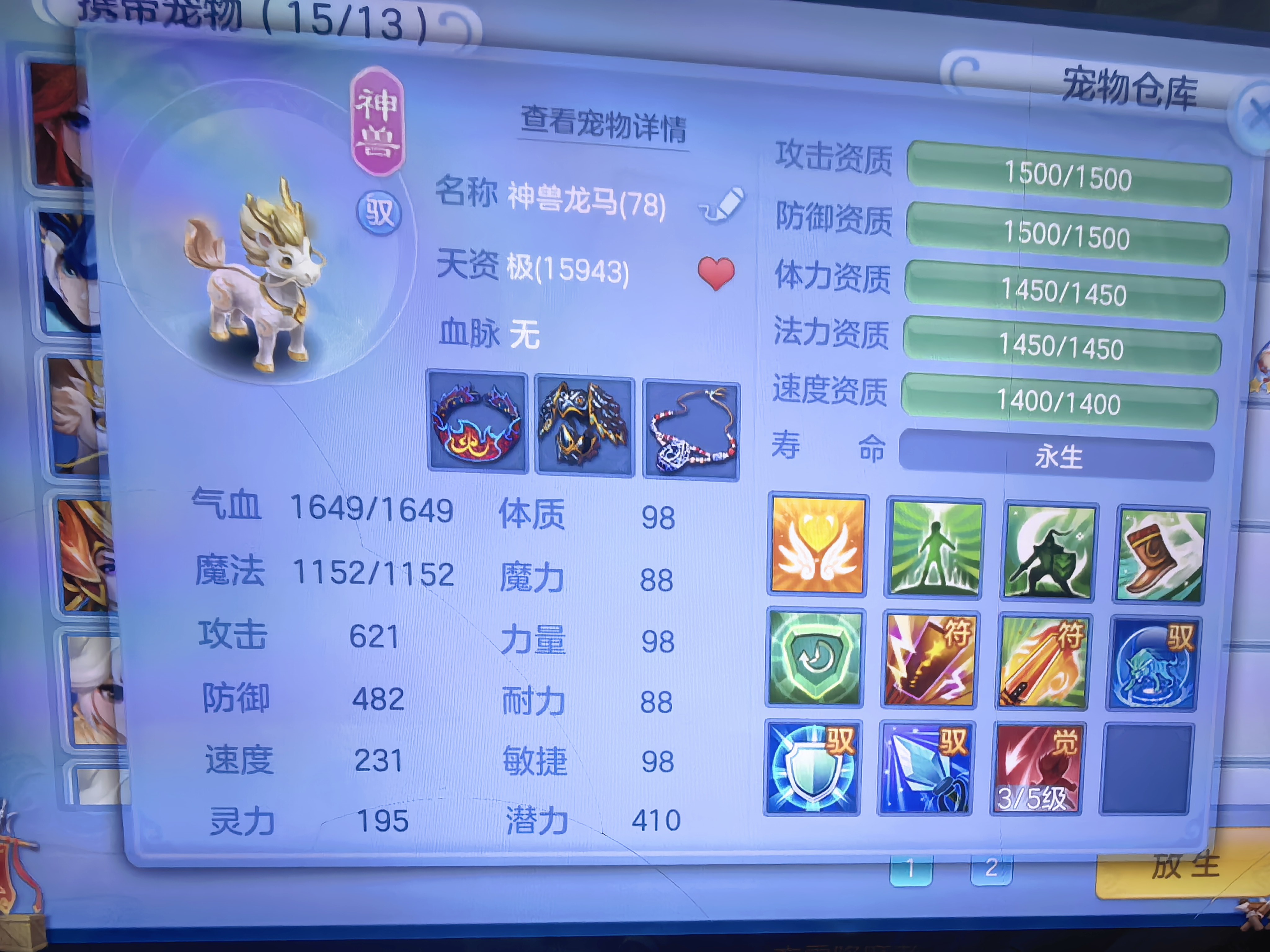 09满配法师三神兽一蛇一龙一马 可7天换绑