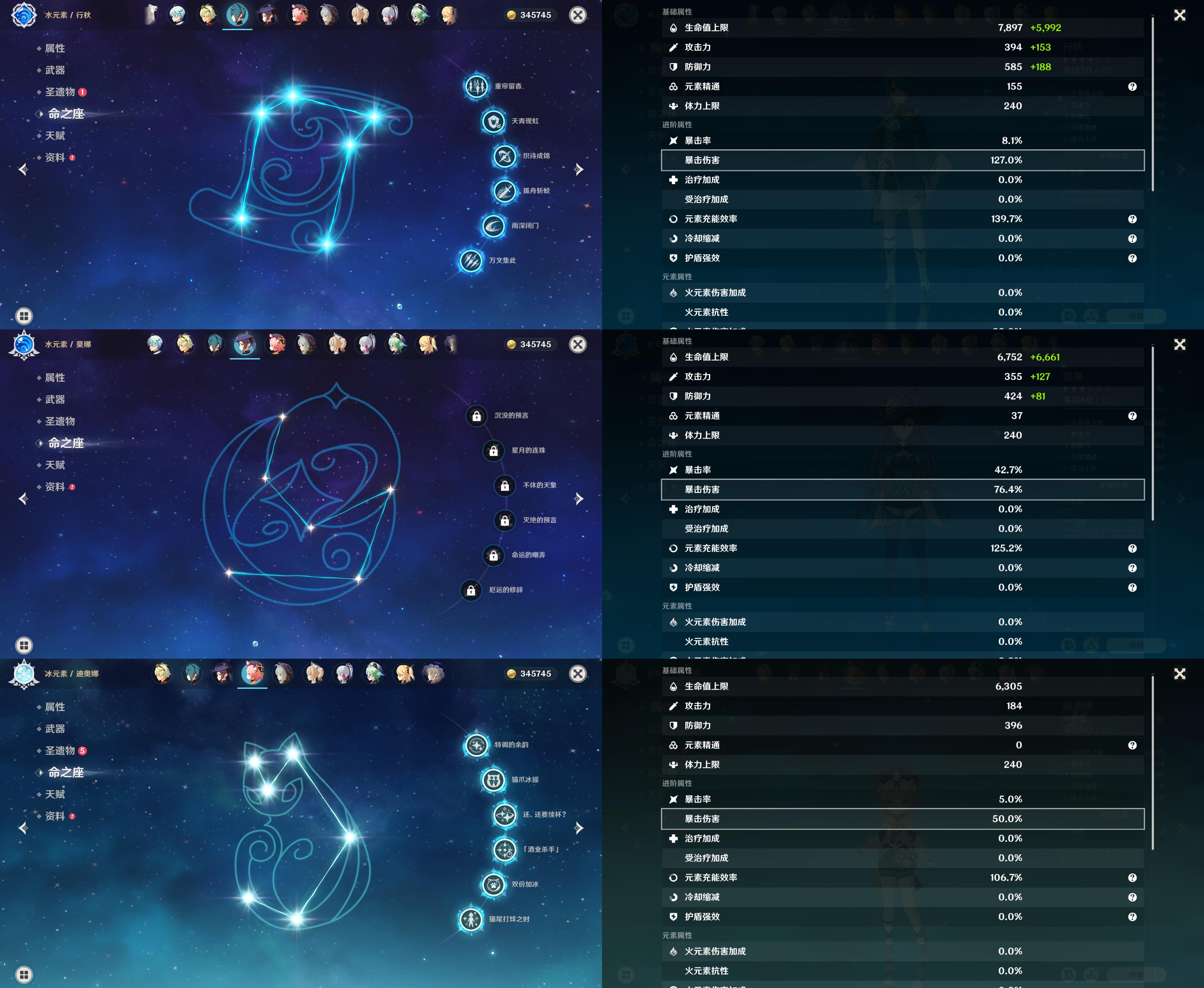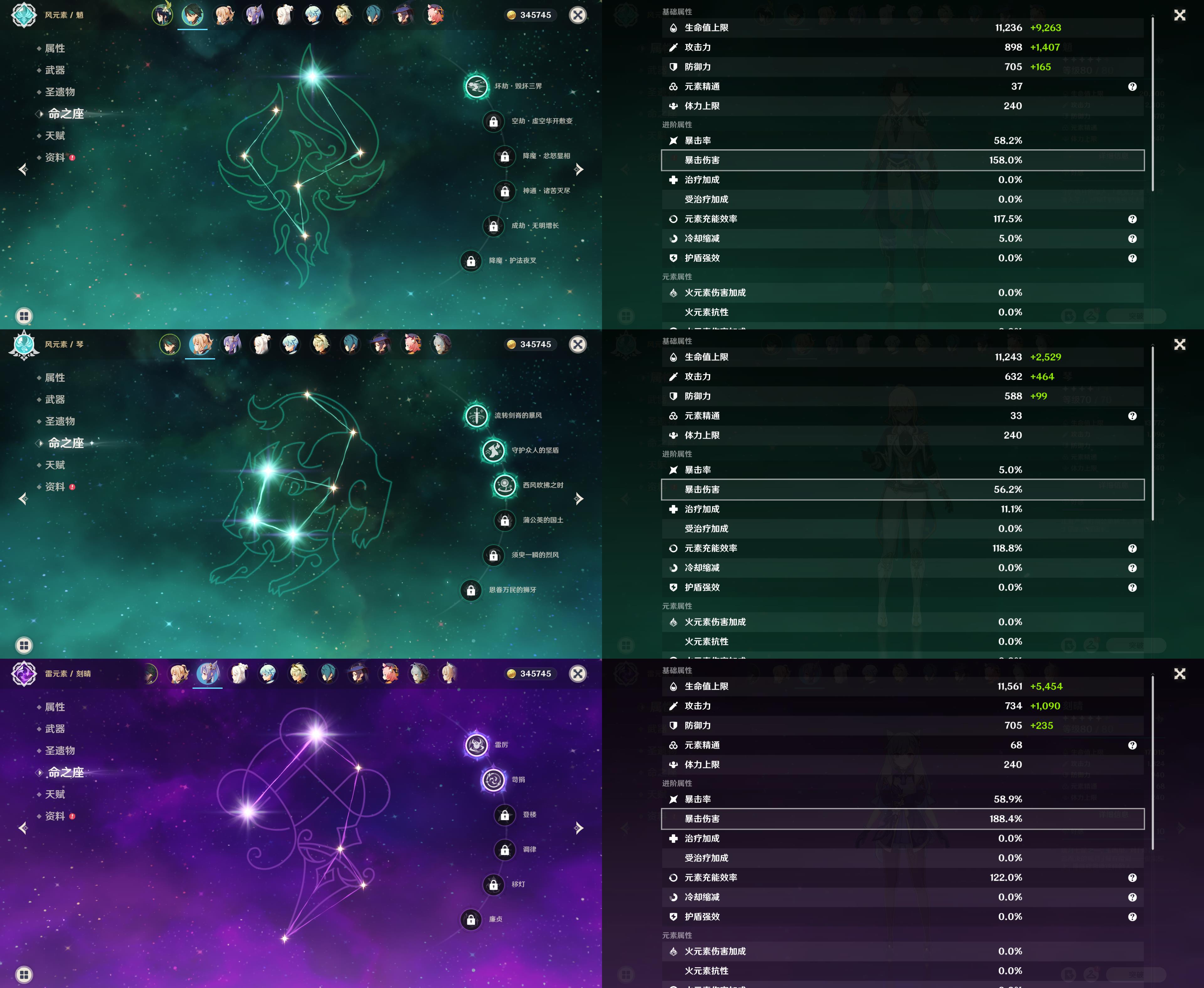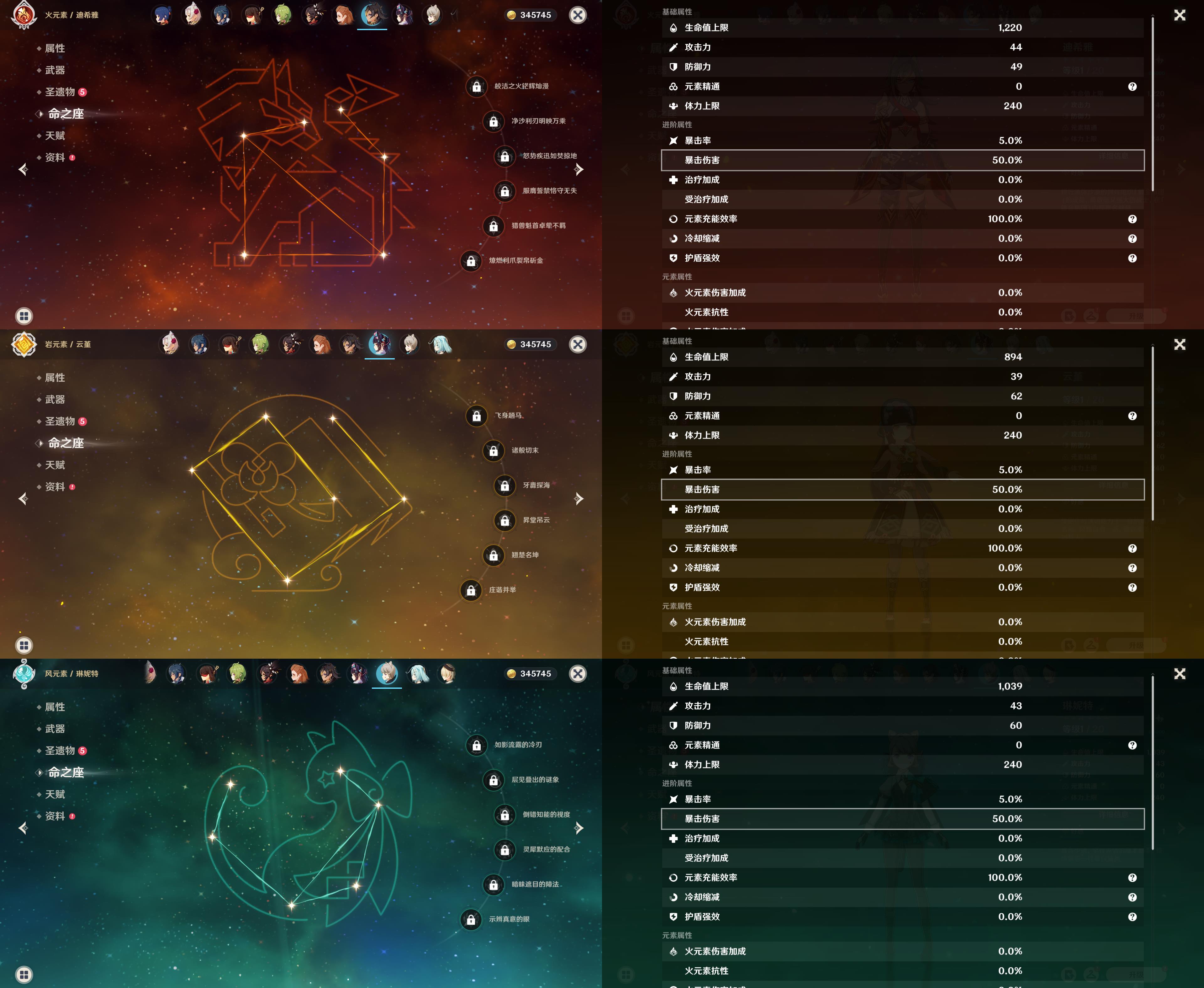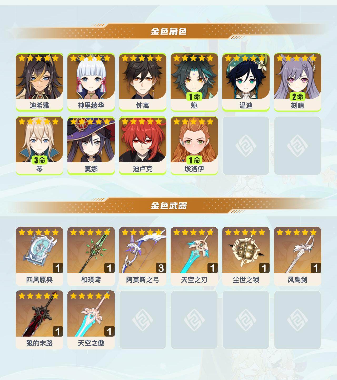 55级/26黄/女主/10个五星角色/8个五星武器/钟离/迪卢克/温迪/1命魈/3命琴