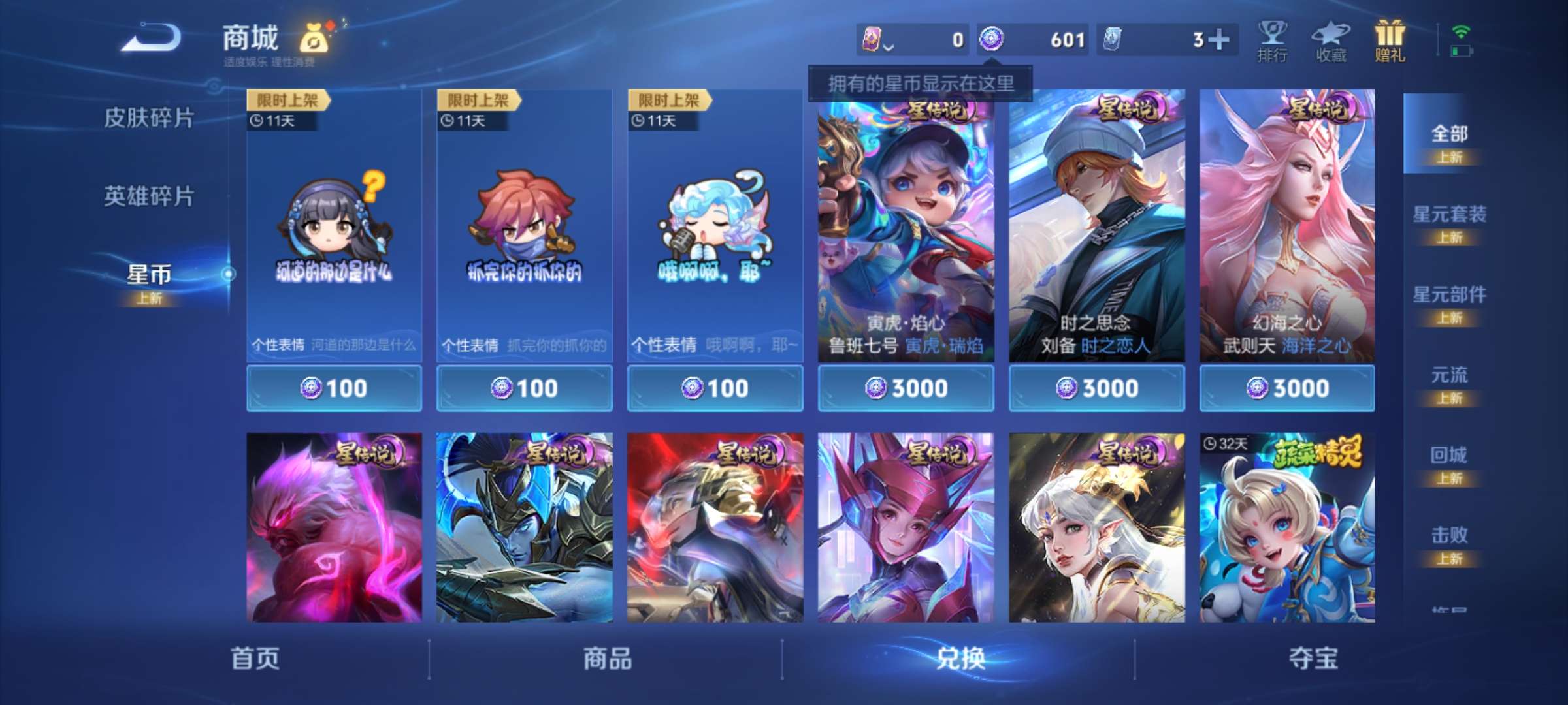 【史诗皮肤】 百解令 地狱燃心 修罗 魅力维加斯 黄金分割率 鹰眼统帅 金属风暴 特工魅影 皇家上将 天才门将 御风骁将 冰雪圆舞曲 天狼征服者 绅士熊喵 星界特工 江河有灵 幽灵船长 暗隐猎兽者