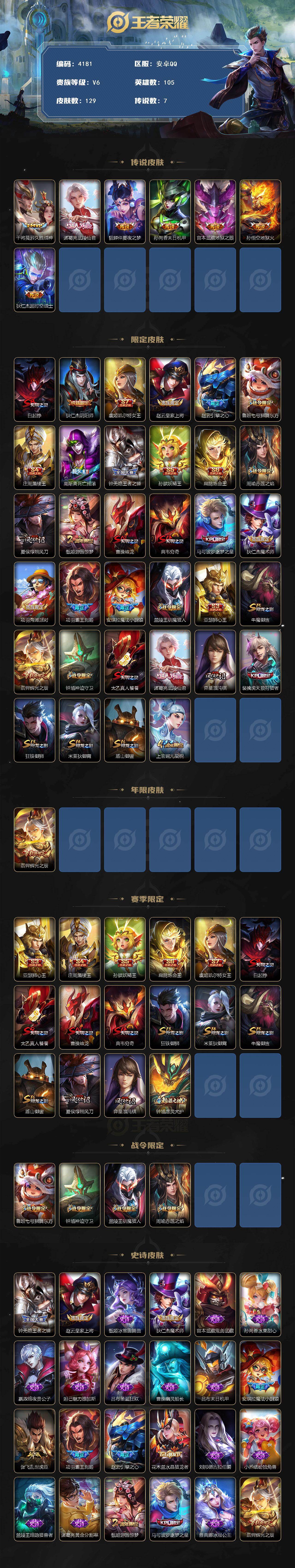 安卓Q-V0-最强王者段位-105英雄-129皮肤-7传说-31史诗【传说皮