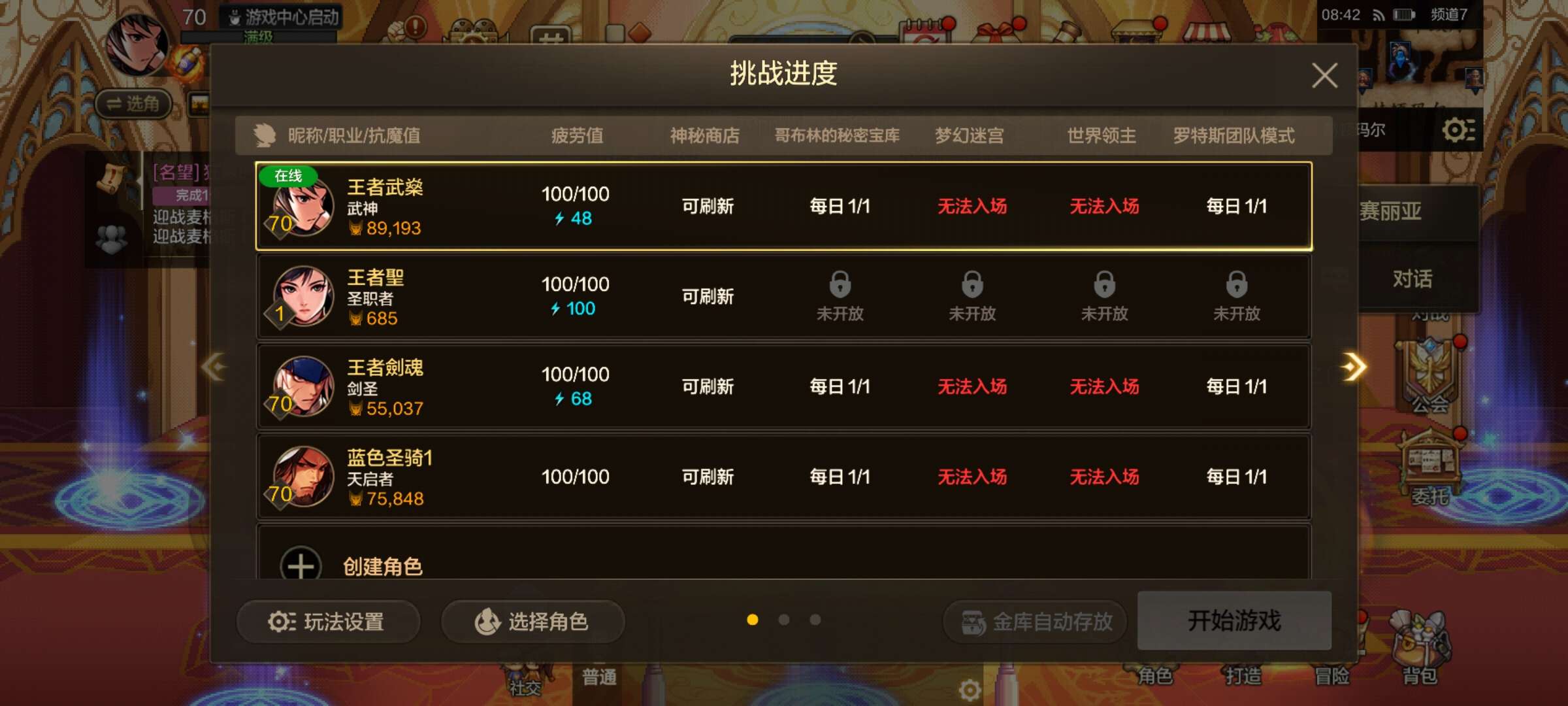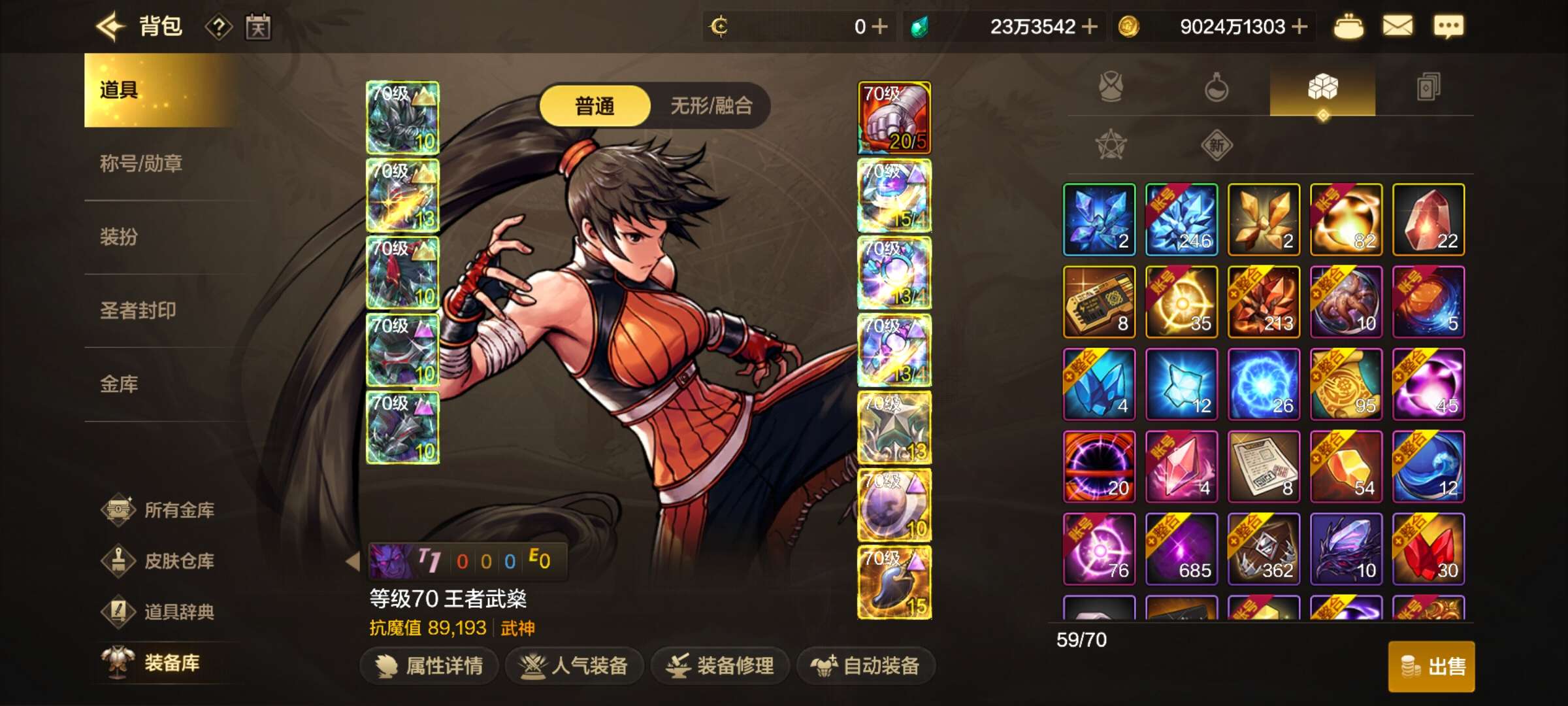 70级武神抗魔89000,泰拉23W,金币9000W,天空套,3个满级角色
