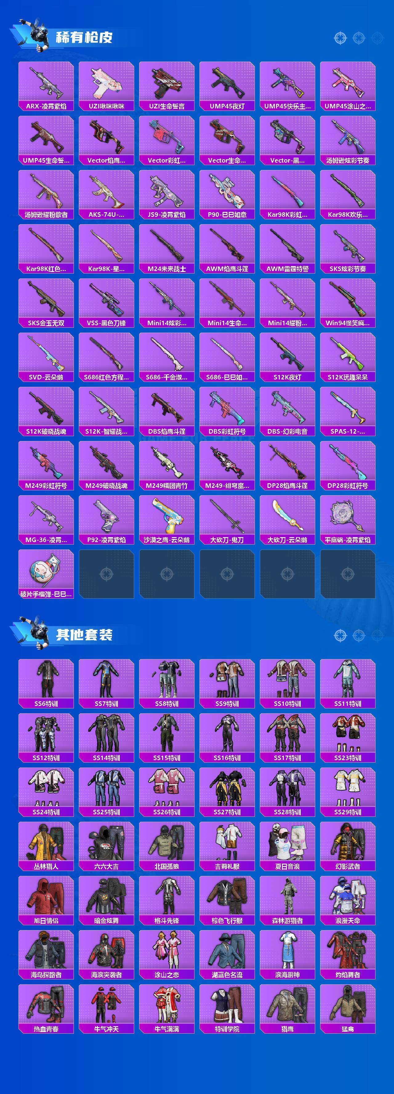 【粉色枪皮等级】:M416-电玩时刻(五级),GROZA-镜光银凌(五级),A