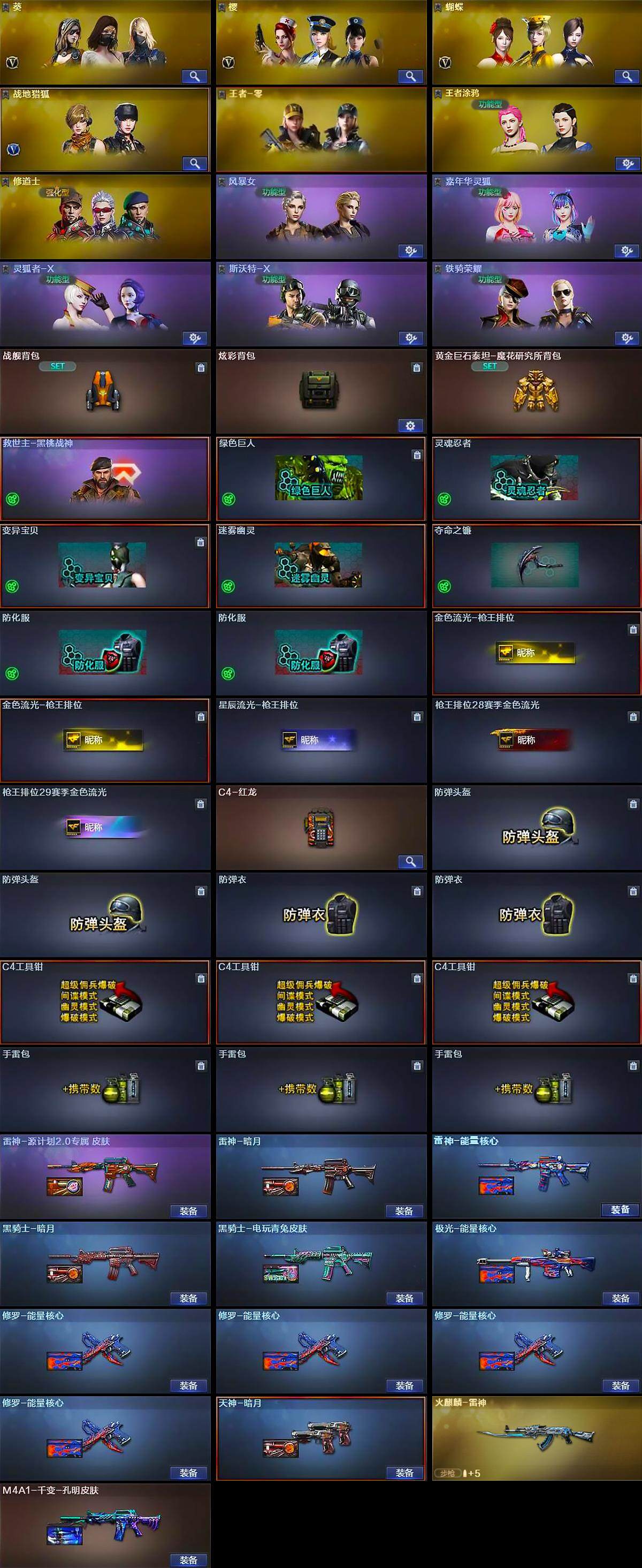 【热门武器】:金色小号,C.A.T,M4A1-黑骑士*4,汤姆逊-烈龙*8,RPK-盘龙*6,加特林-炼狱*8,沙鹰-修罗*9,高爆手雷-幻兽*5