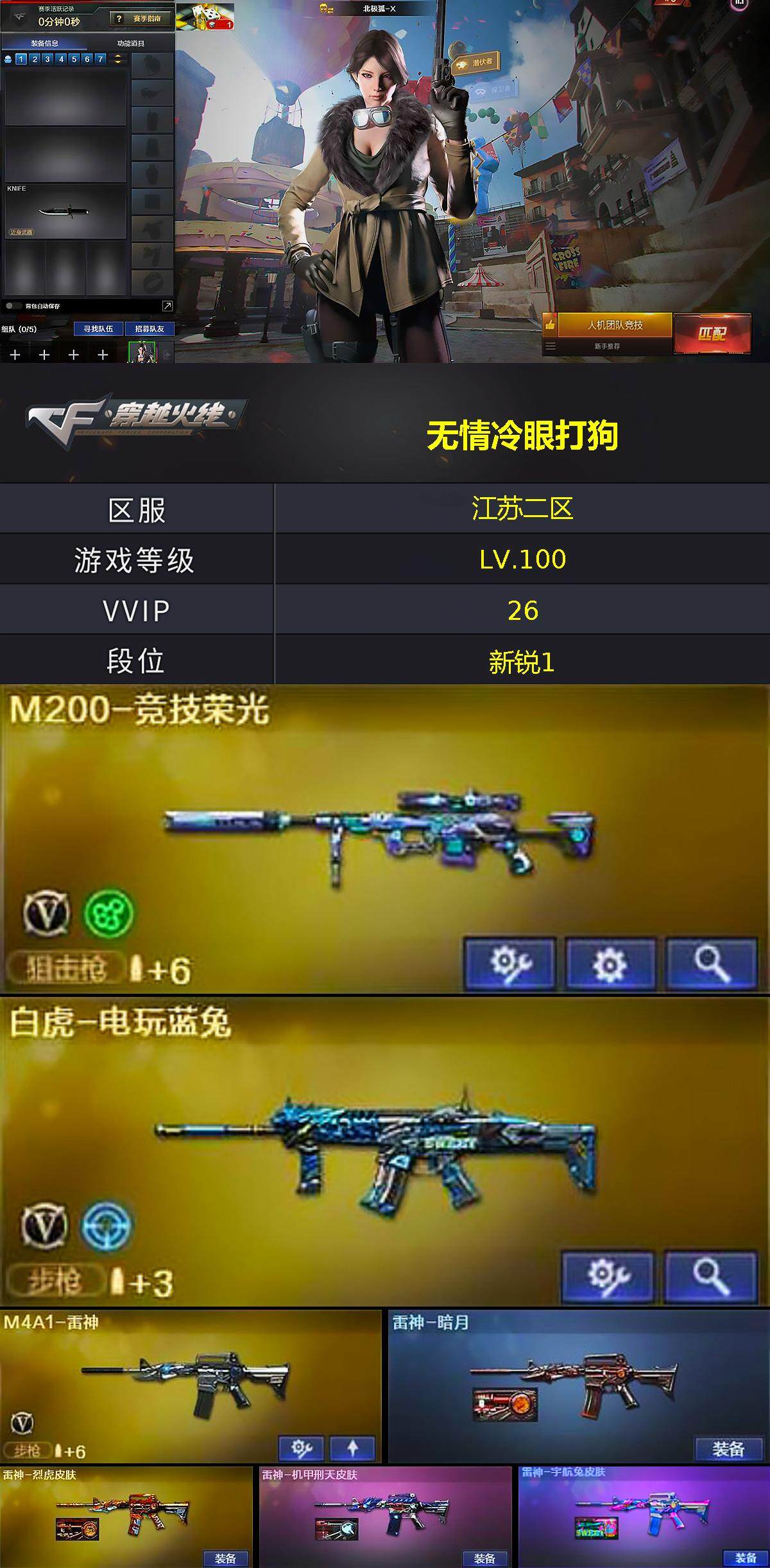 江苏二区-26V-3王者-0炫金【热门武器】:M200-竞技荣光,死亡之眼,