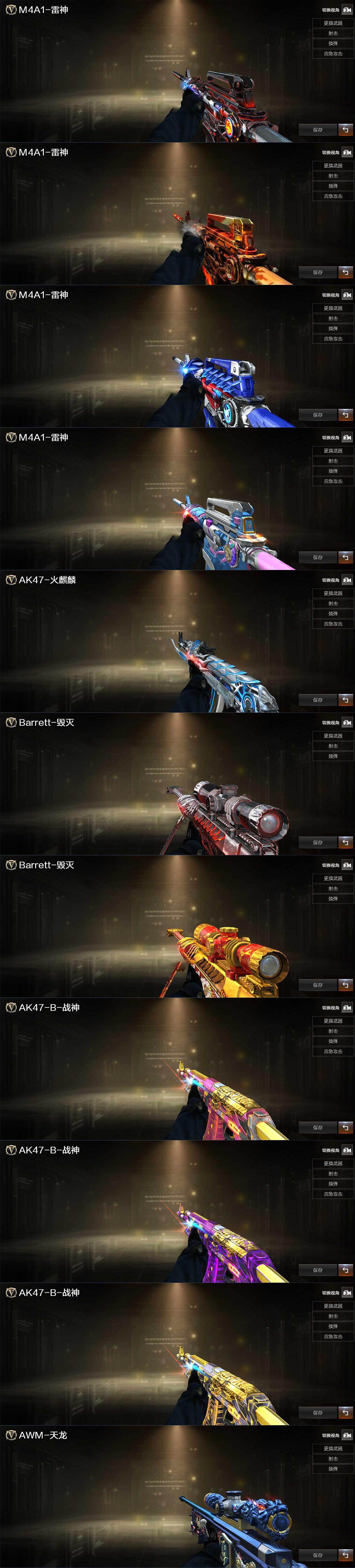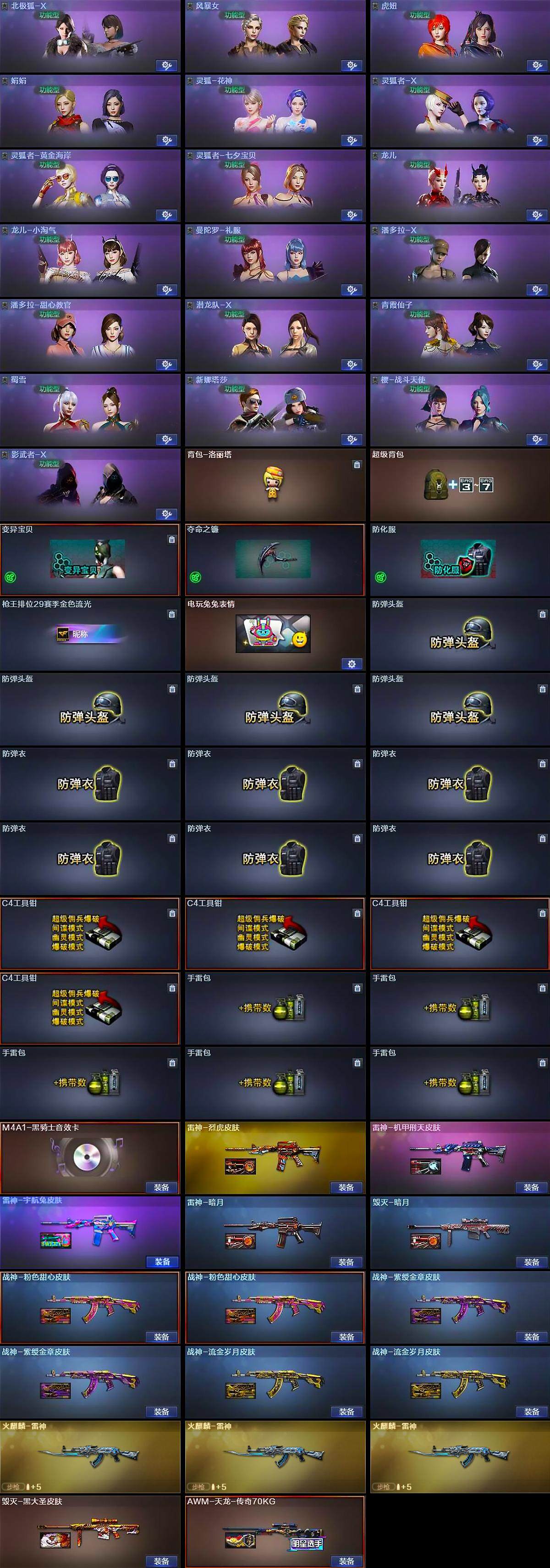 【皮肤】:雷神-暗月,雷神-烈虎皮肤,雷神-机甲刑天皮肤,雷神-宇航兔皮肤,火麒麟-雷神*3,毁灭-暗月,毁灭-黑大圣皮肤,战神-粉色甜心皮肤*2,战神-紫绶金章皮肤*2,战神-流金岁月皮肤*2,AK47-B-常胜将军-刘备*2,AK47-B-常胜将军-孙权,AWM-