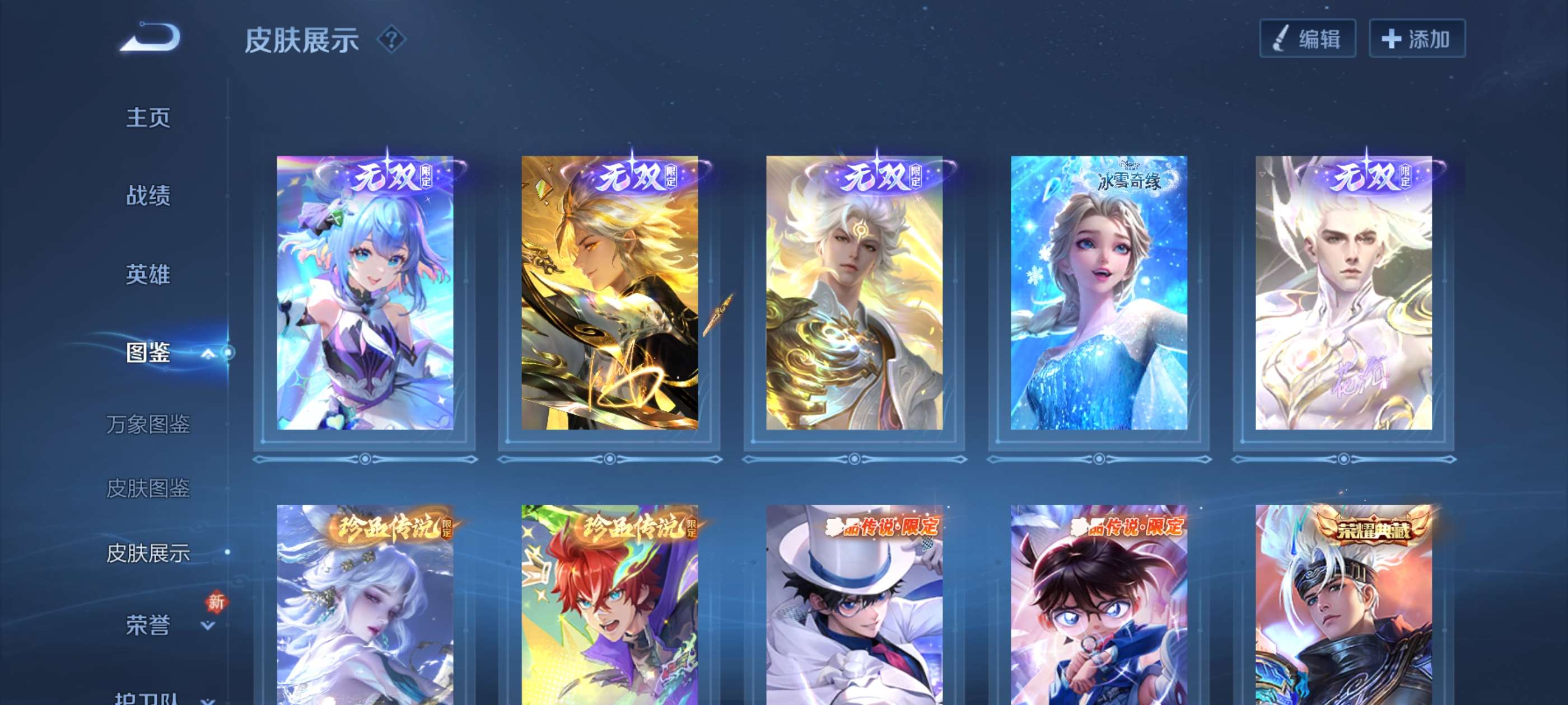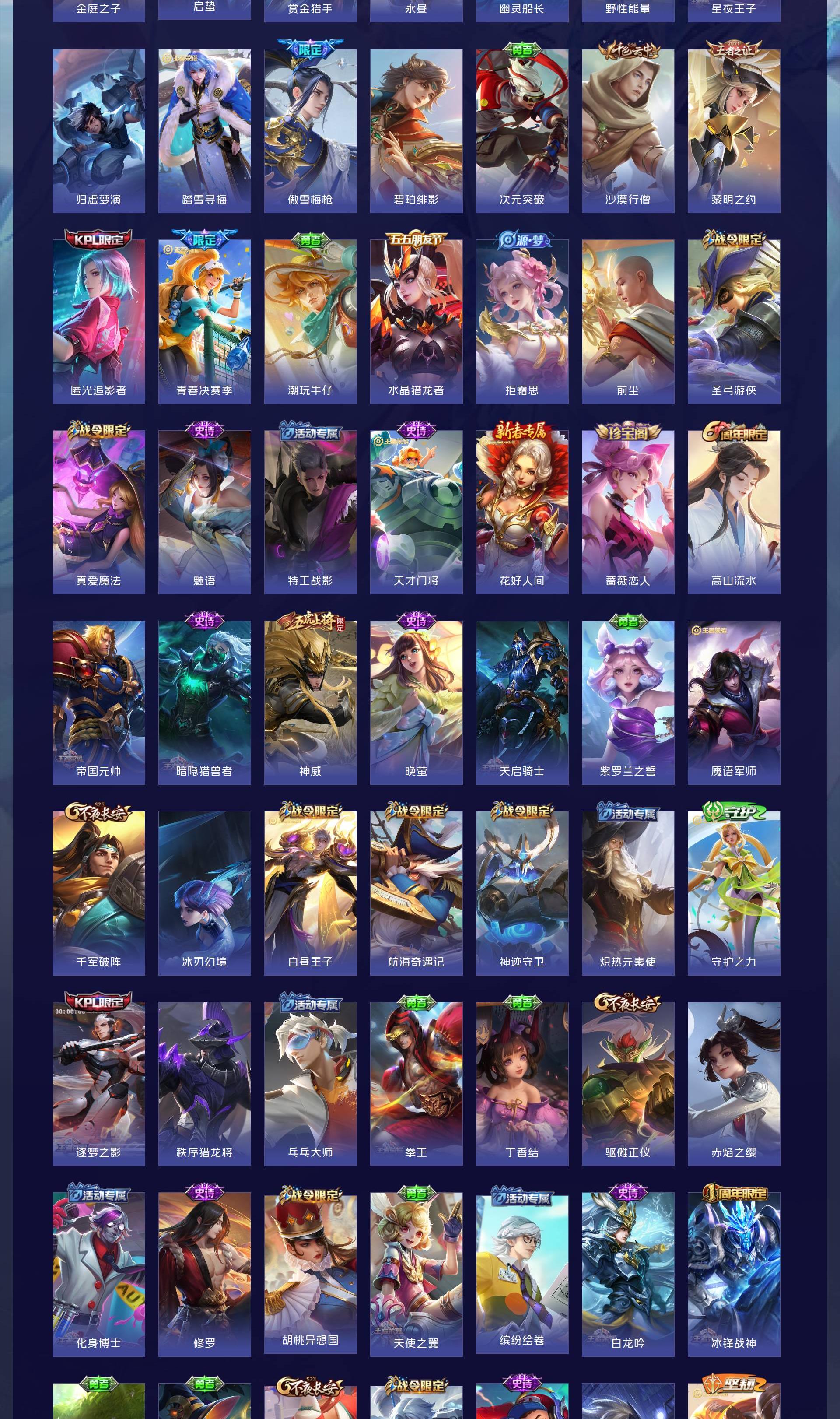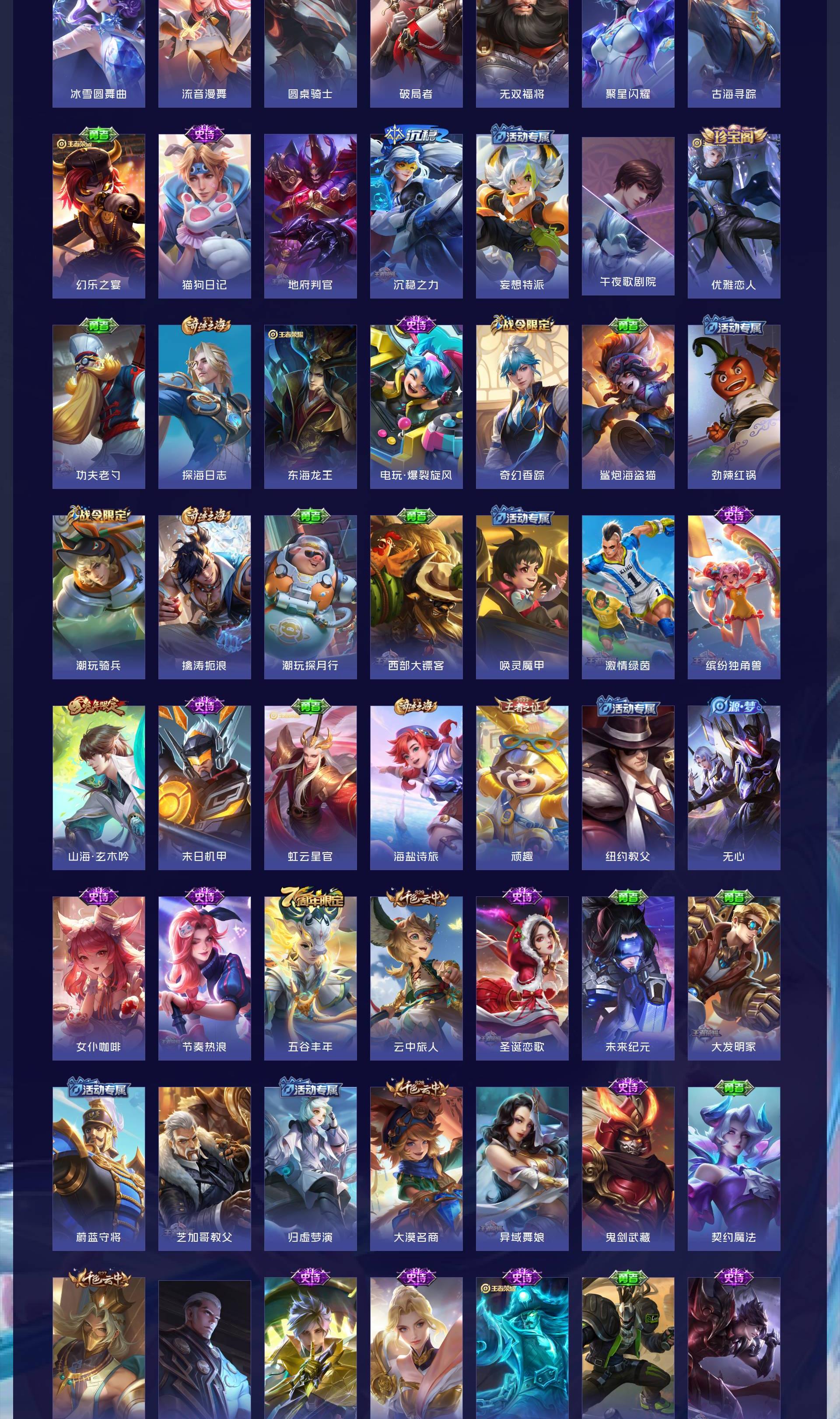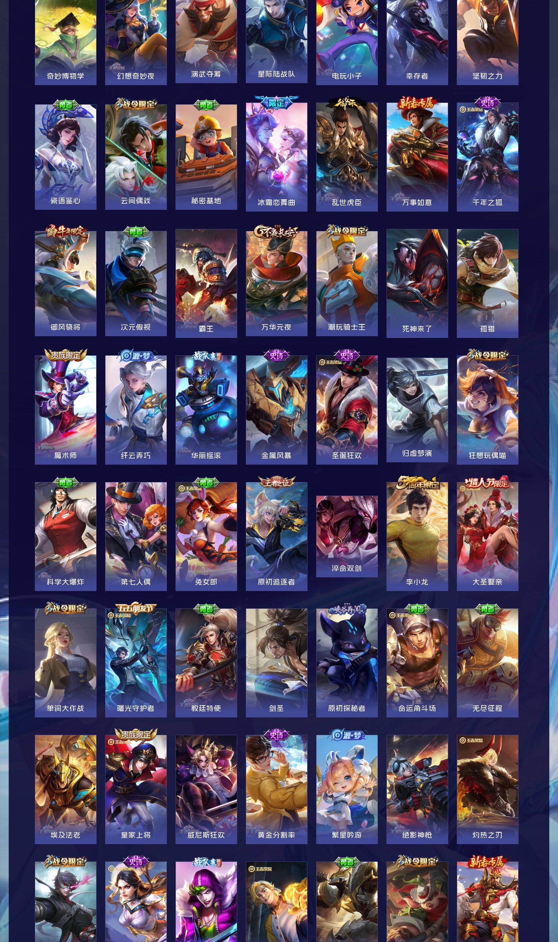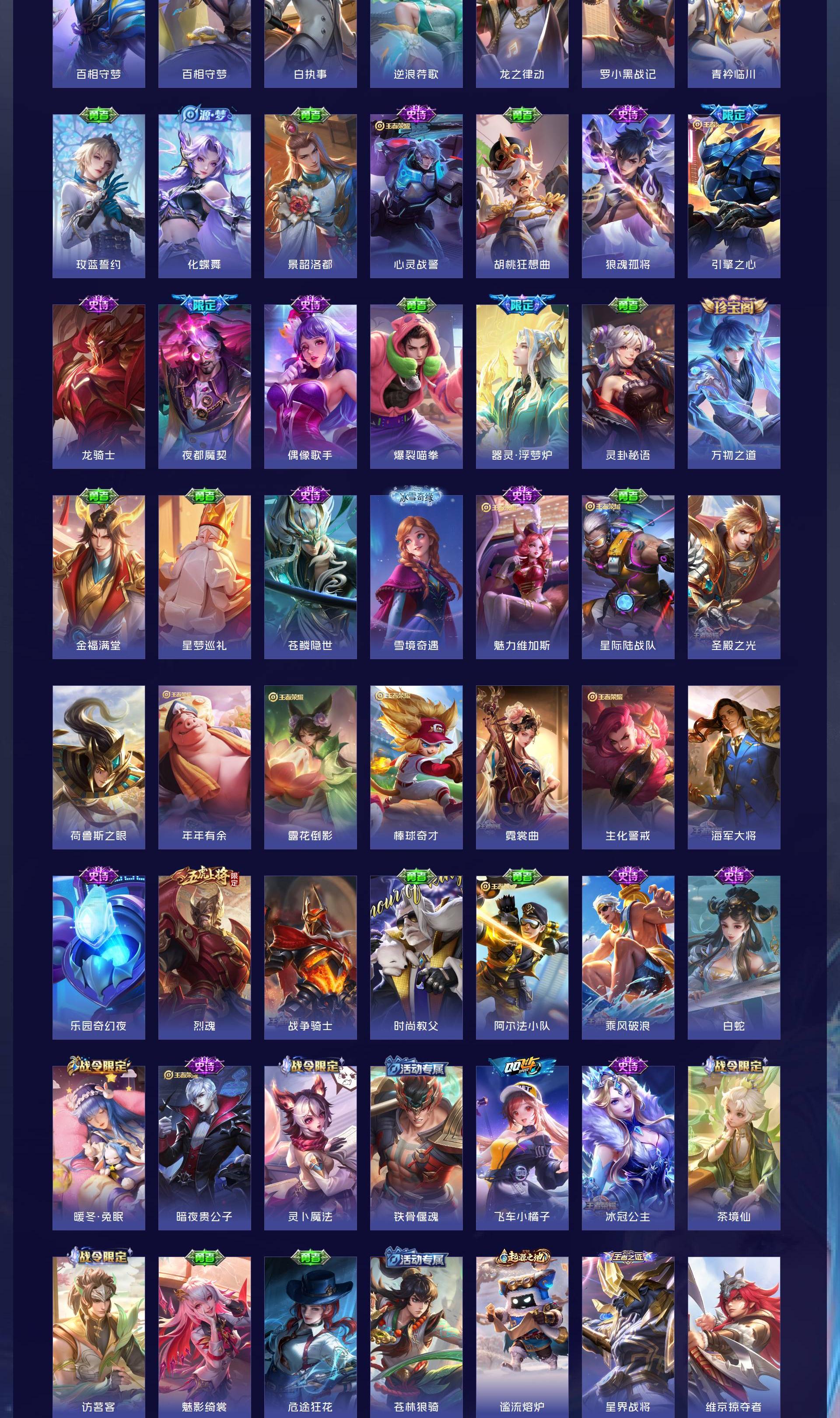 V9 皮肤364 至尊星耀 荣耀典藏1 无双皮肤5 珍品传说4 传说32 其他皮肤326