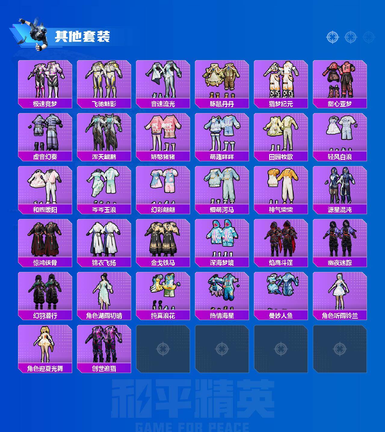 【粉色套装】:粉装-冰霜白皇,粉装-筑梦精灵,粉装-闲梦青缨,角色-鸢尾晶梦,粉装-星穹咏叹调