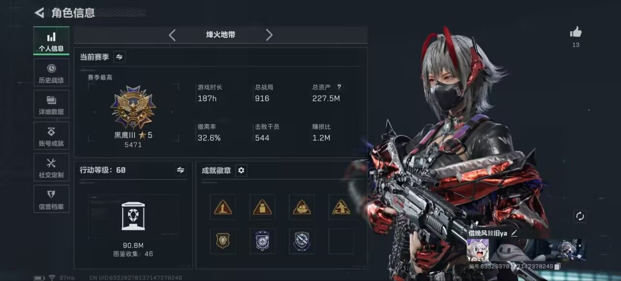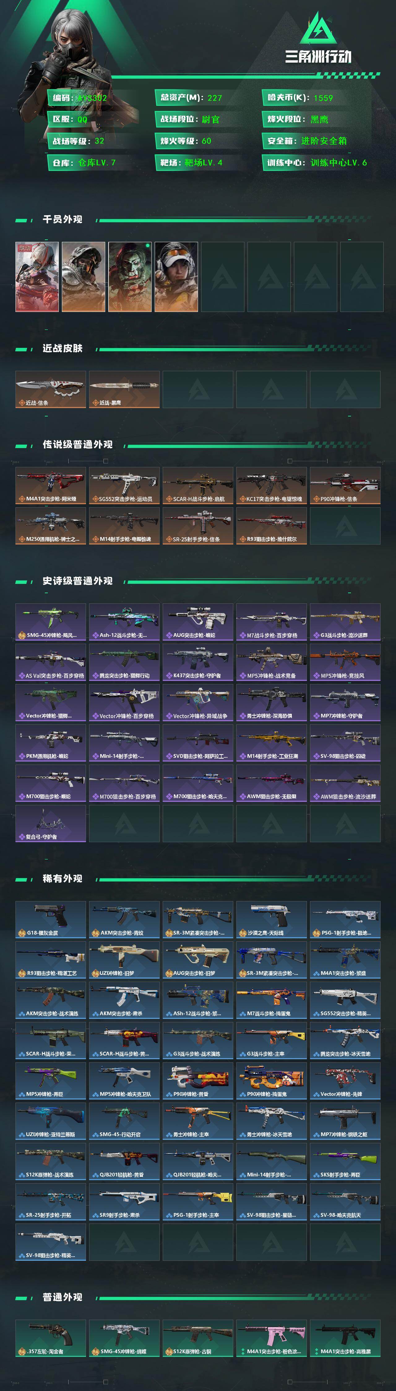 227m总资产-1559k哈伏币-60烽火等级-黑鹰-32战场等级-尉官【干