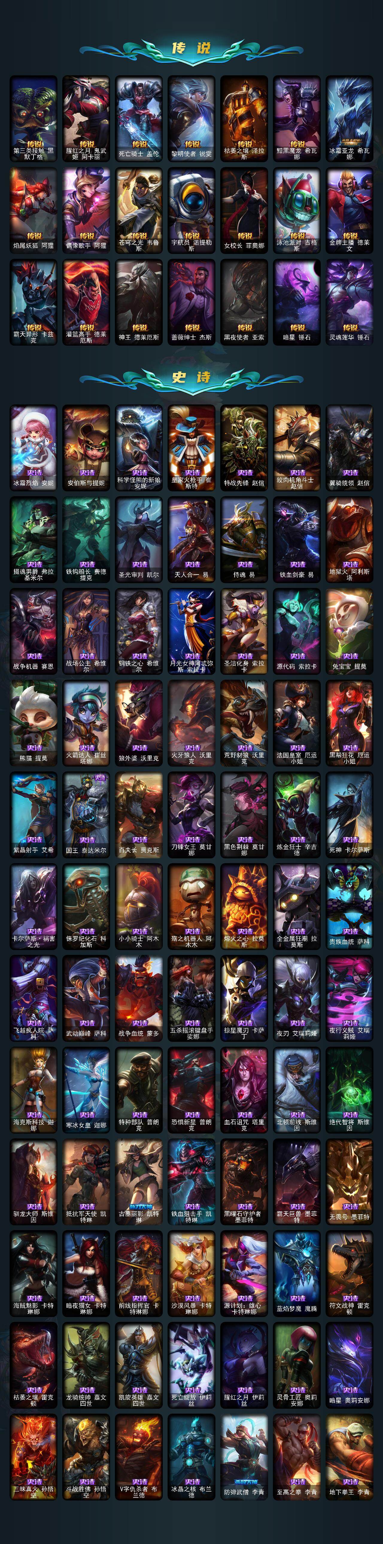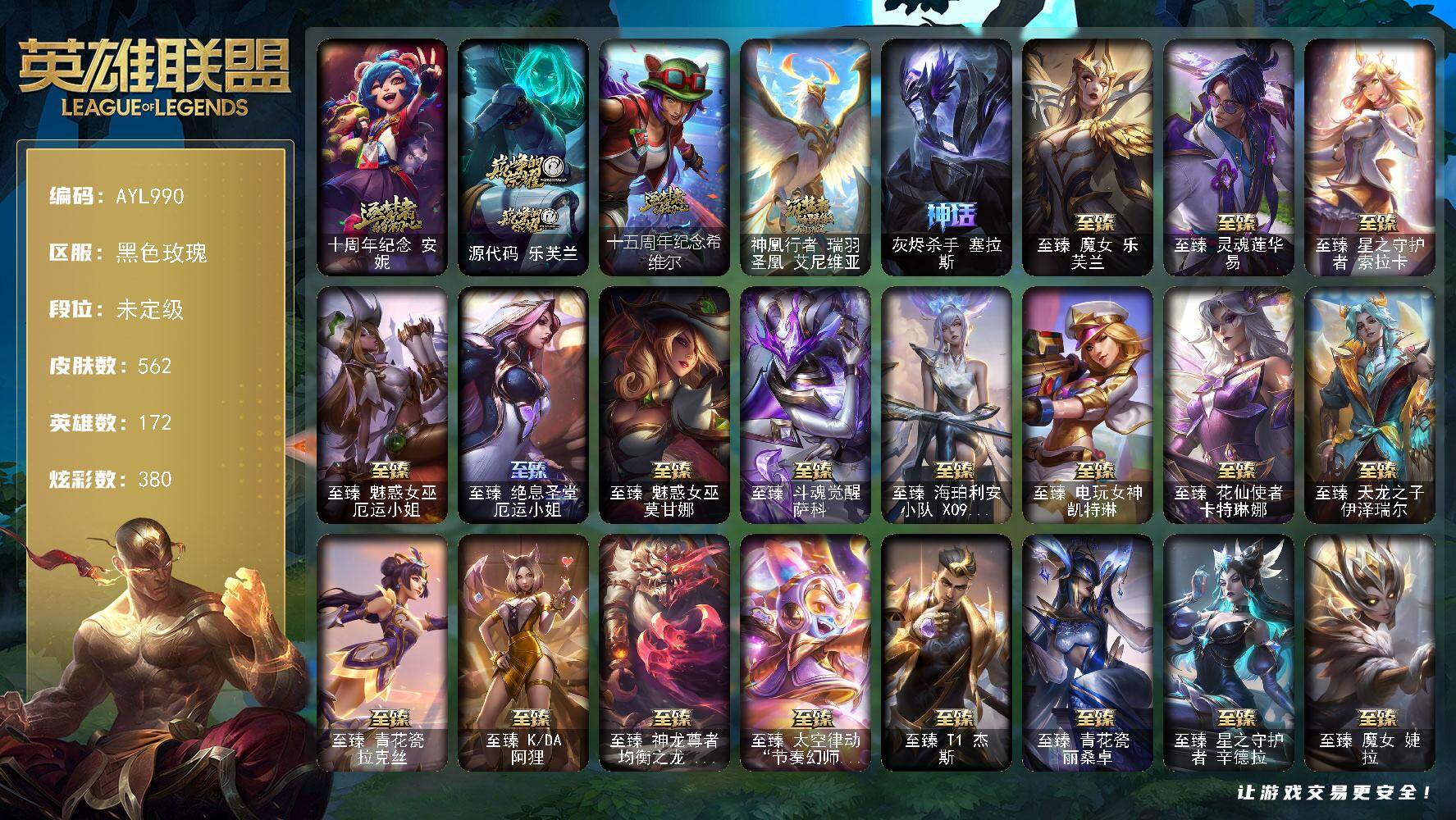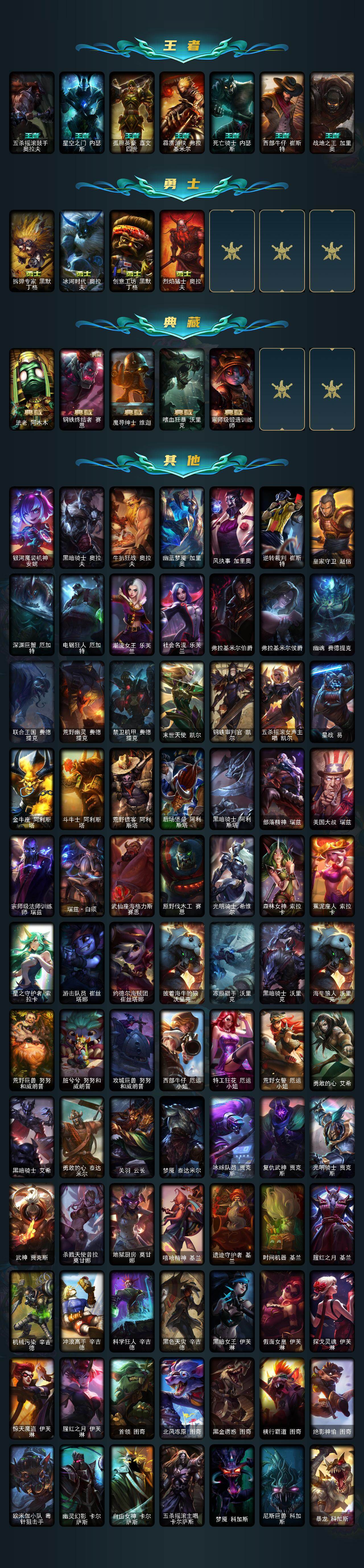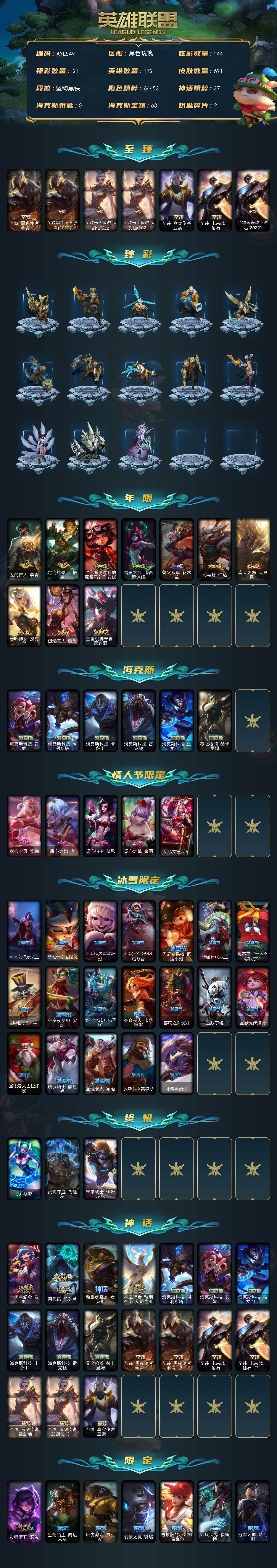 未定级段位-172英雄-691皮肤-144炫彩-3终极-17神话-107限定-56传说-186史诗