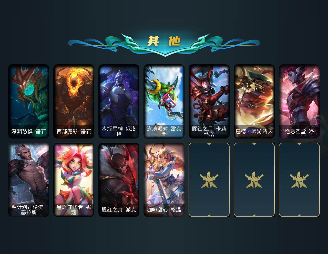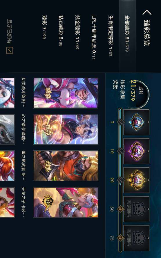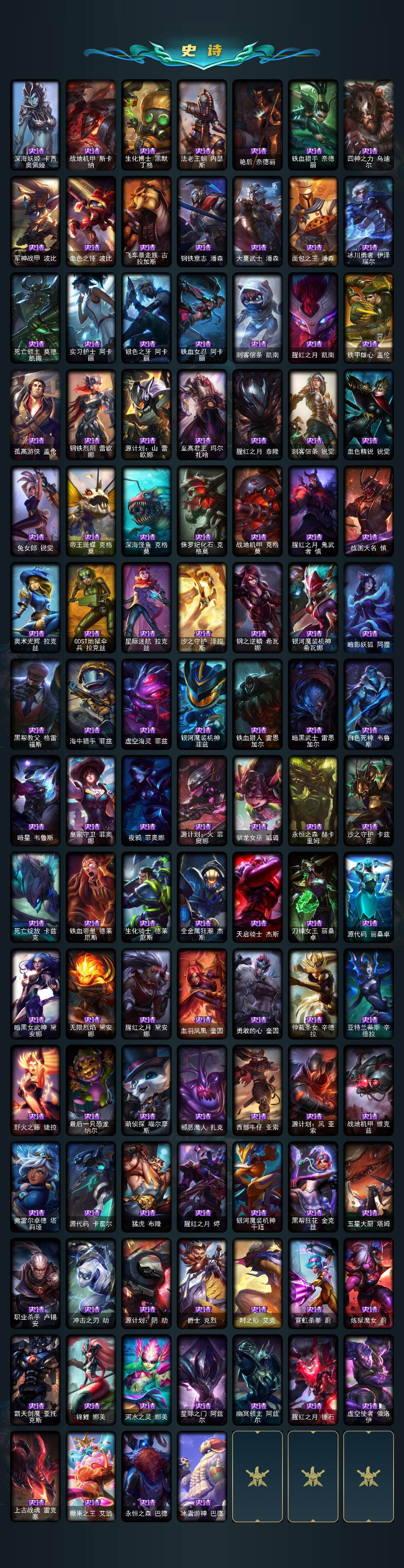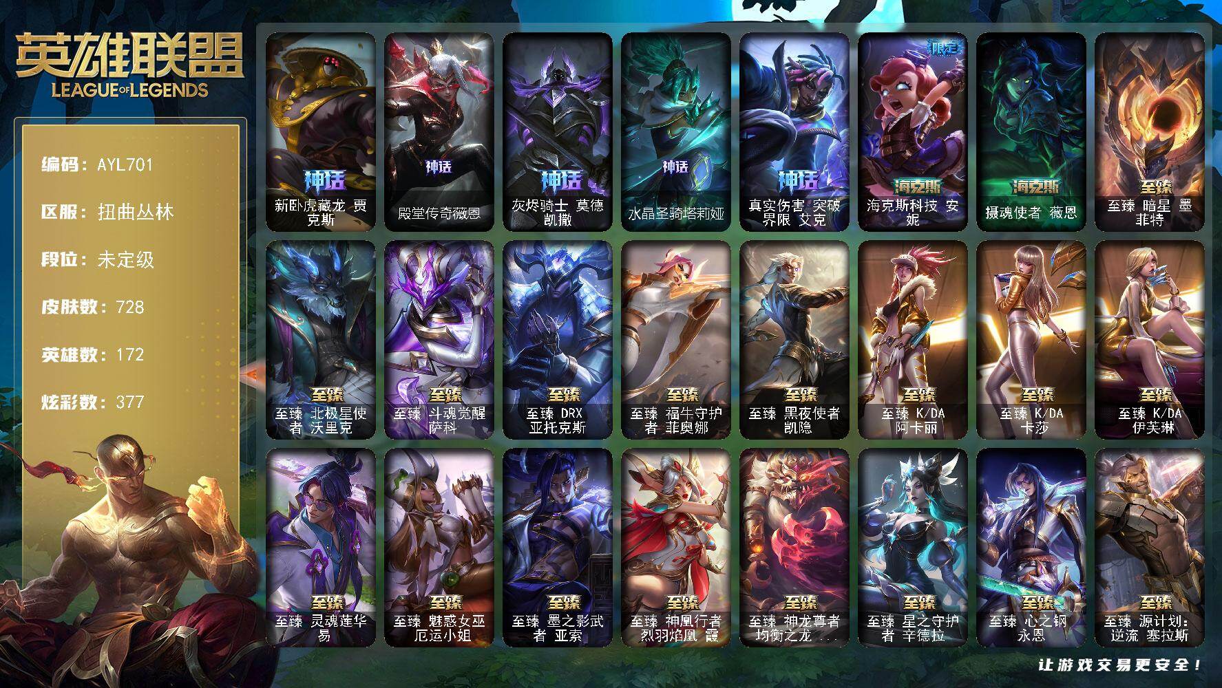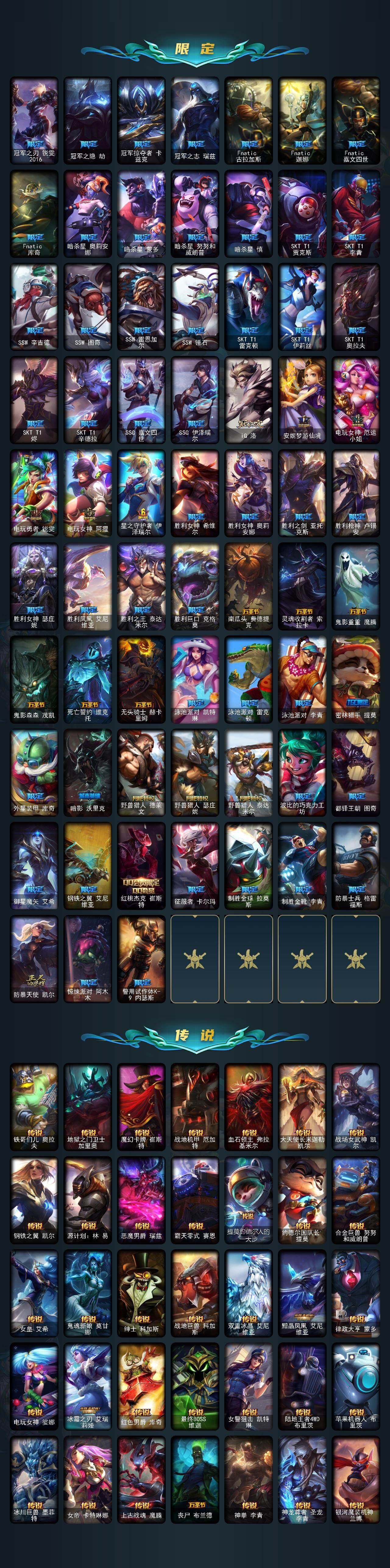未定级段位-172英雄-691皮肤-144炫彩-3终极-17神话-107限定-56传说-186史诗