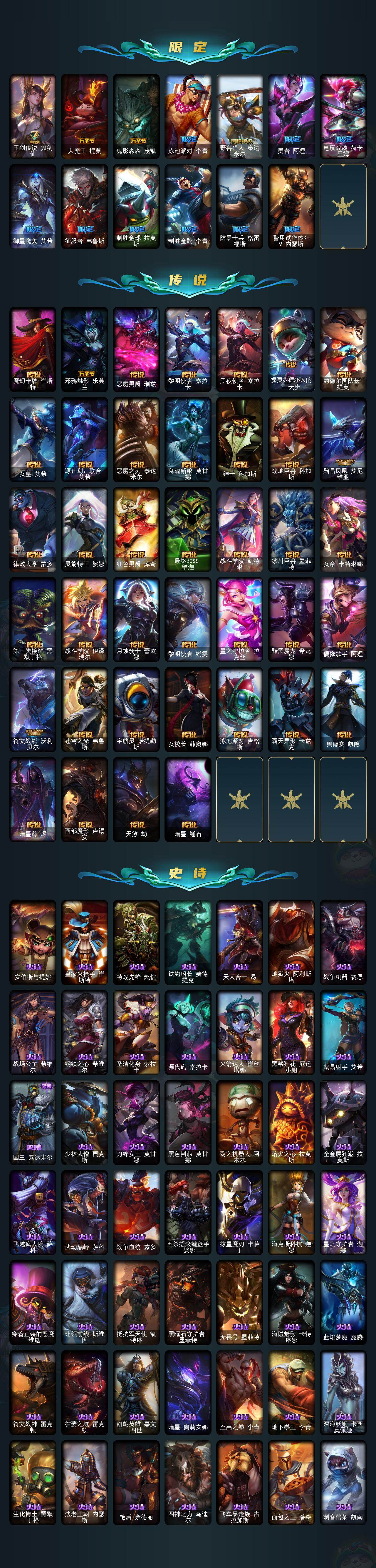 【年限皮肤】:龙的传人李青,碧玉之牙卡西奥佩娅,美