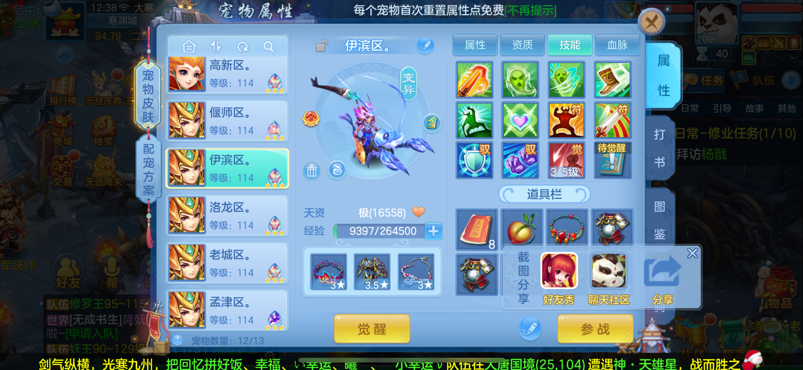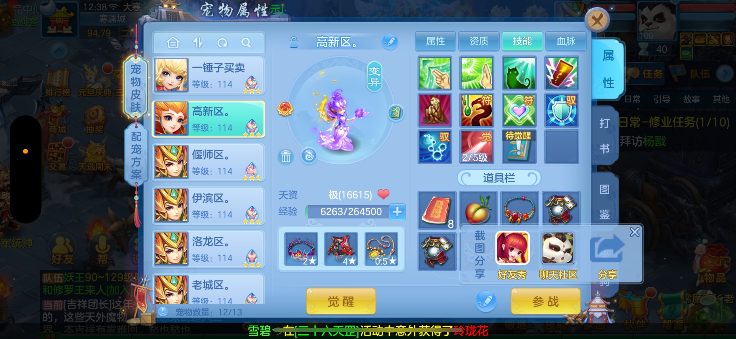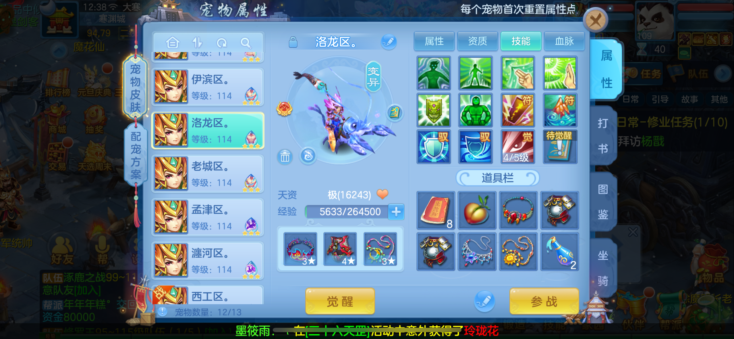 109魔王,13段,12只成品宝宝,8技能龙虾