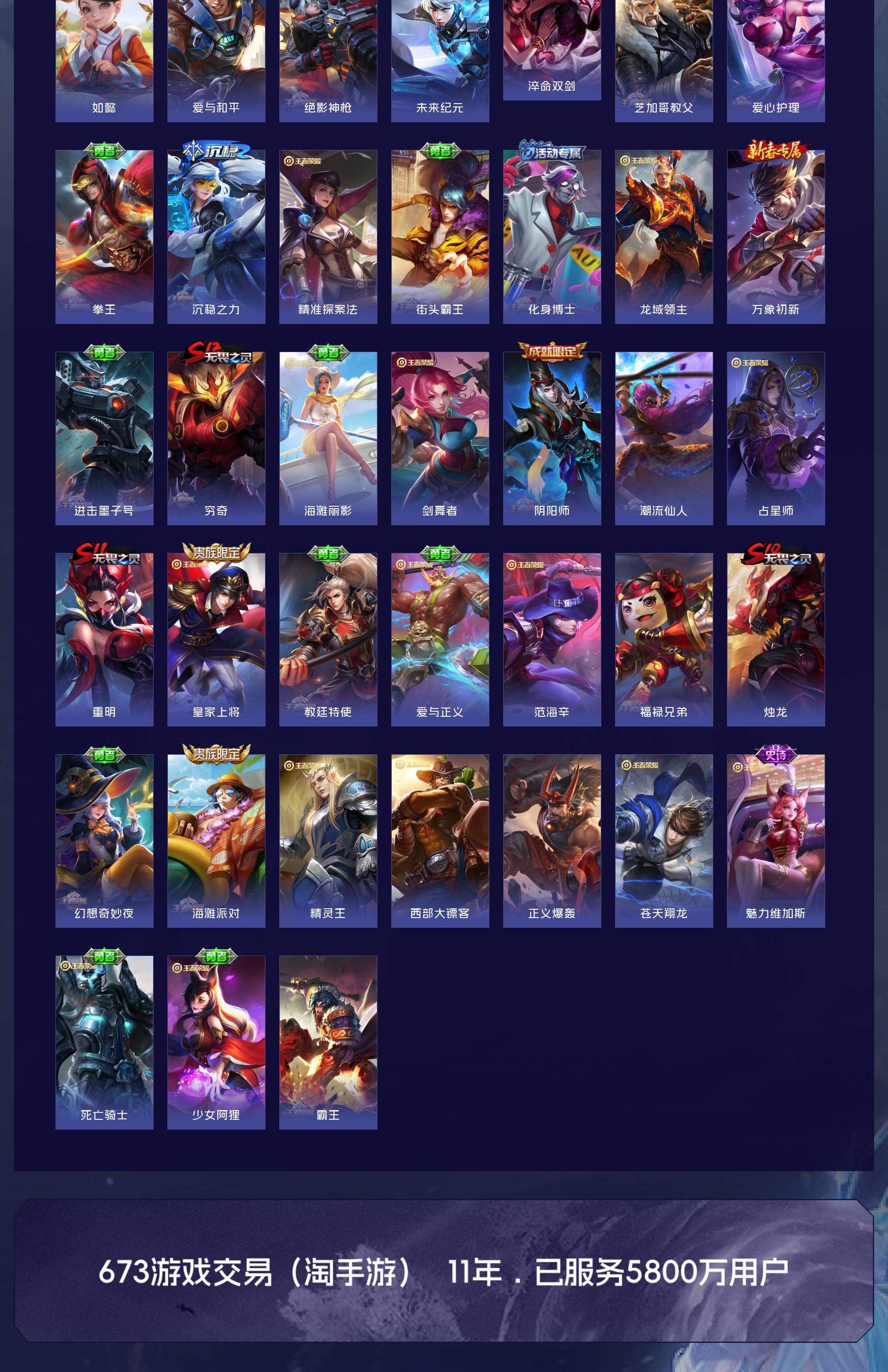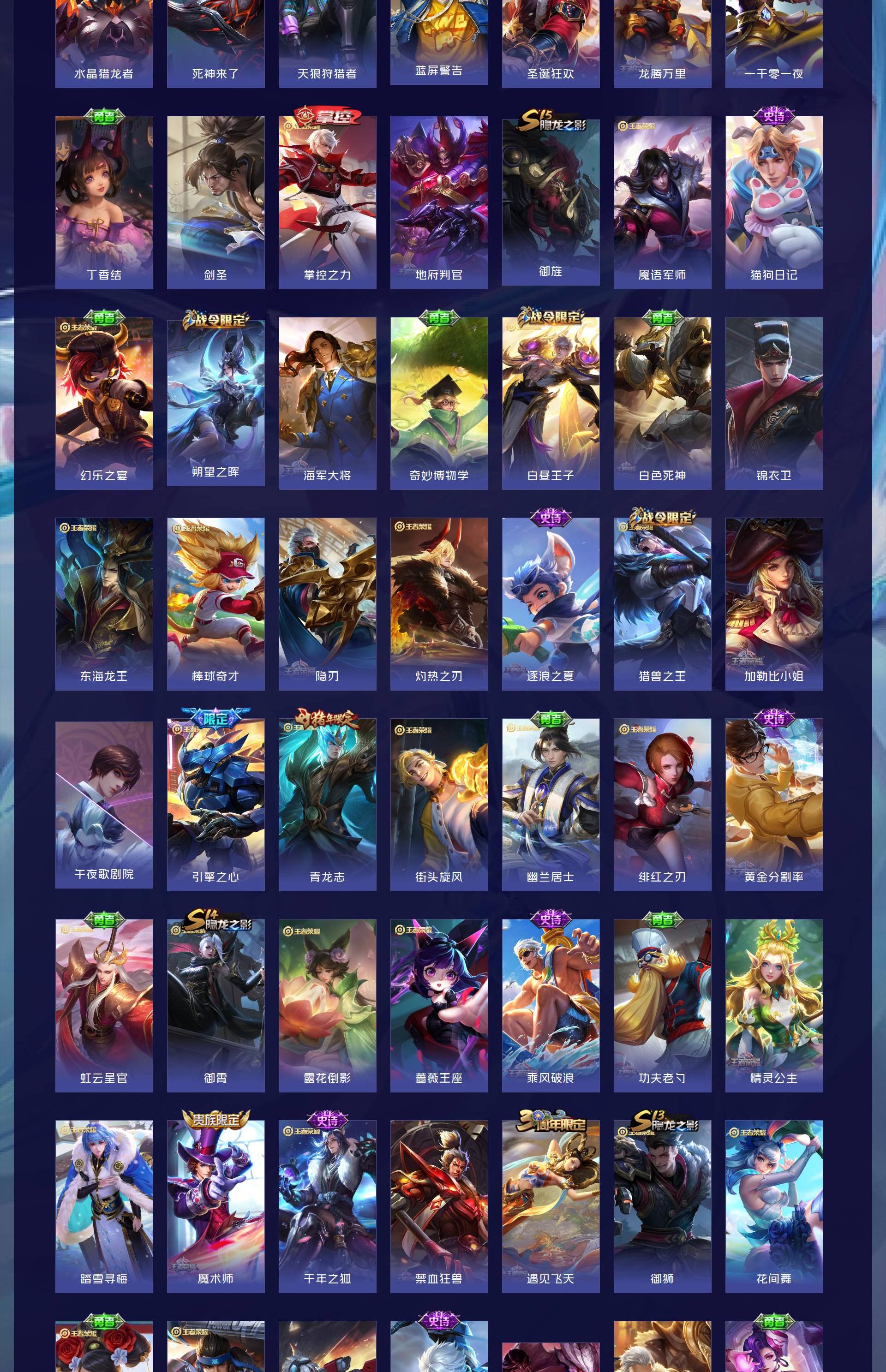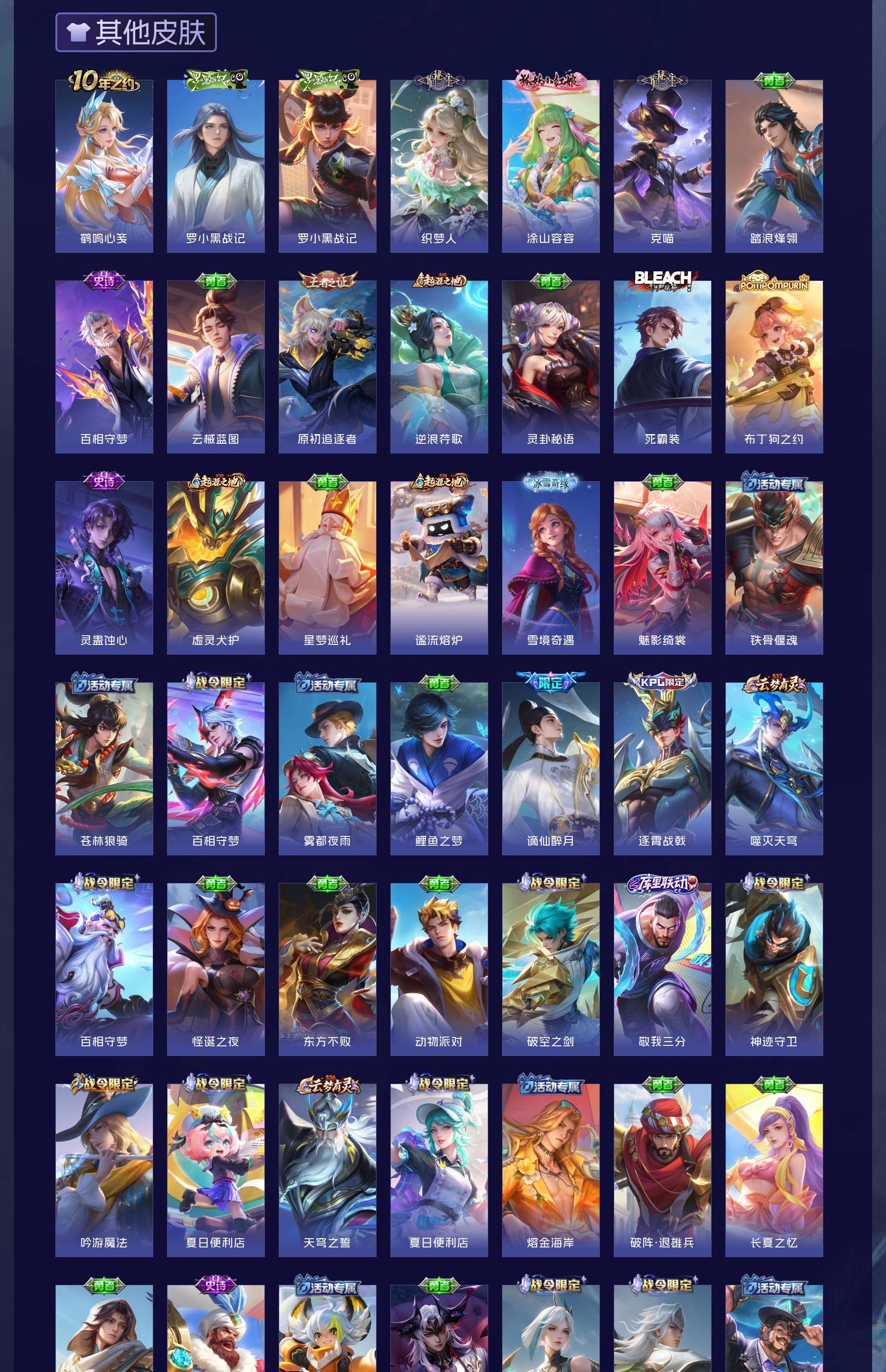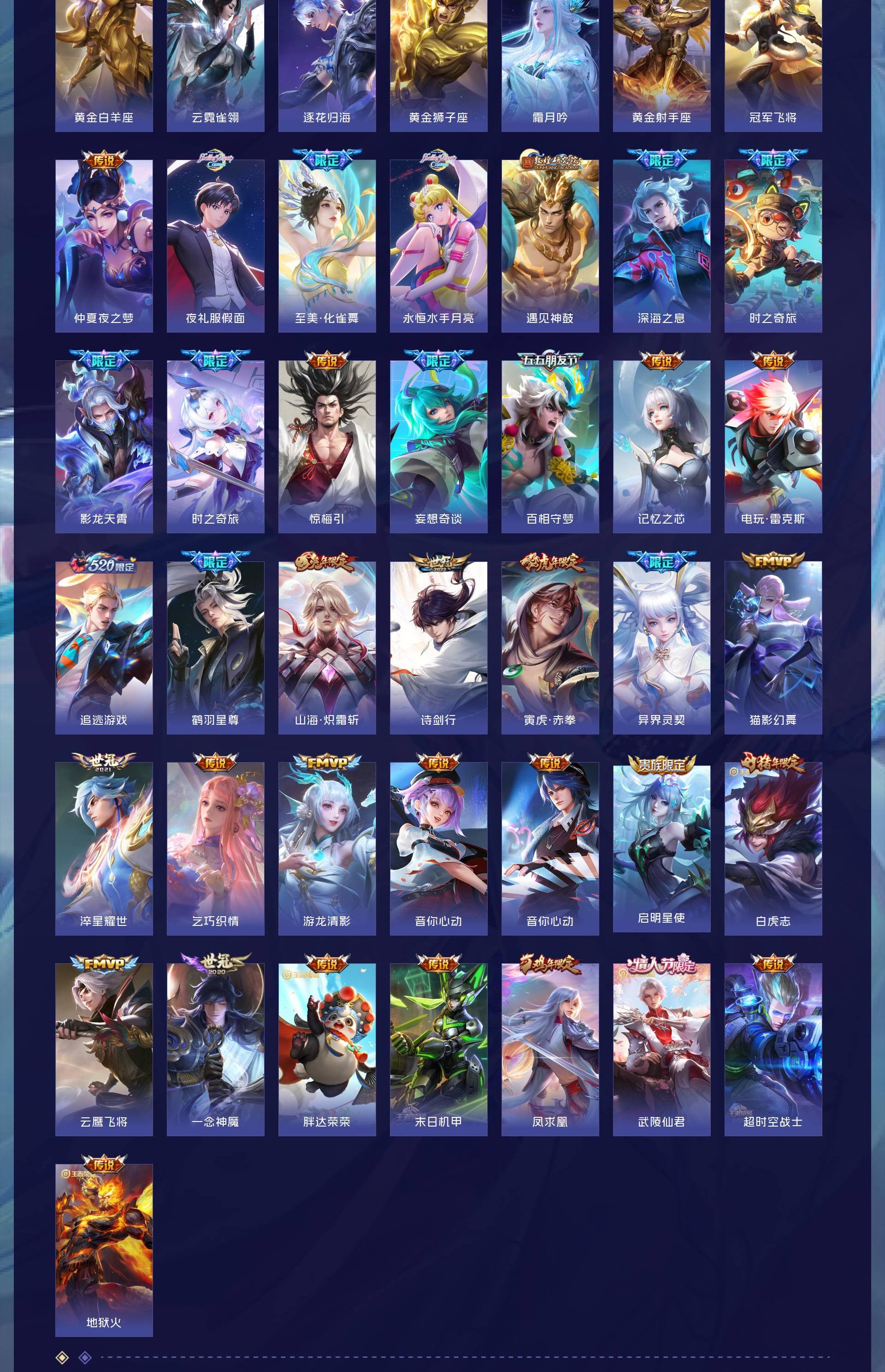 V10 皮肤476 英雄128 至尊星耀 荣耀典藏6 无双皮肤3 传说58 其他皮肤416