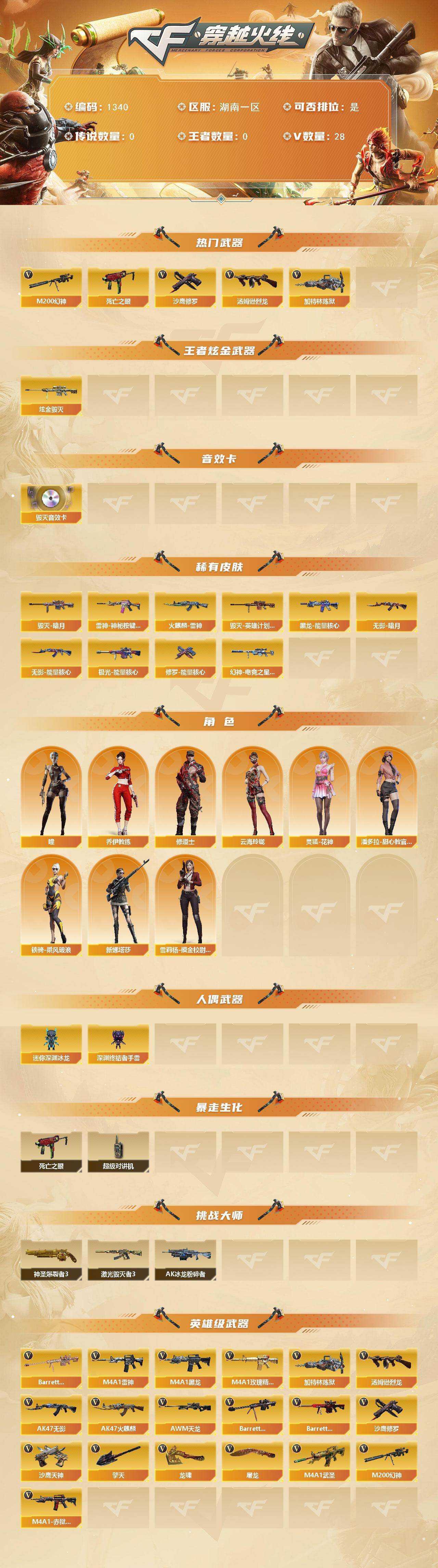 湖南一区-28V-0王者-1炫金【热门武器】:M200-幻神,死亡之眼,汤姆