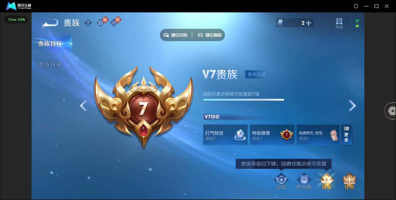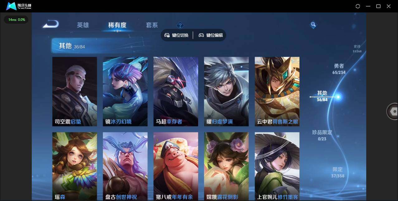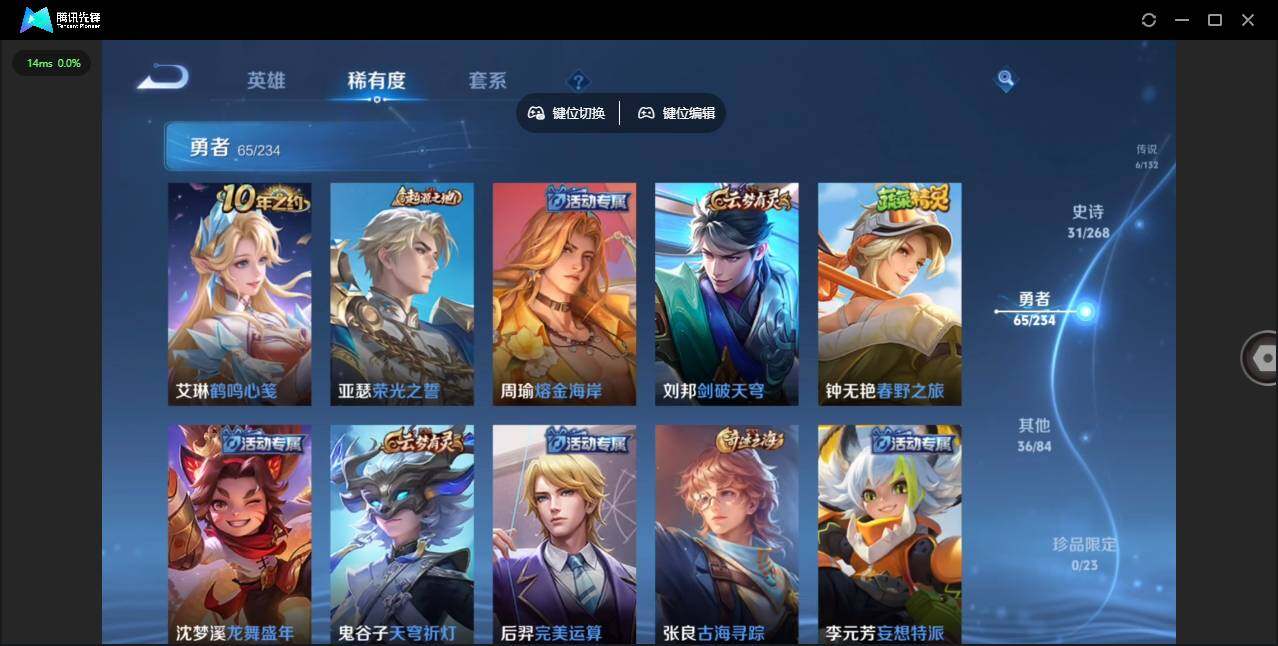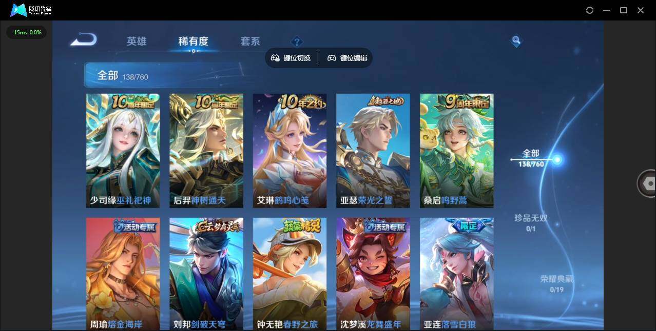 实名: 可修改 贵族等级: V7 英雄数: 128 皮肤数: 138 传说皮: