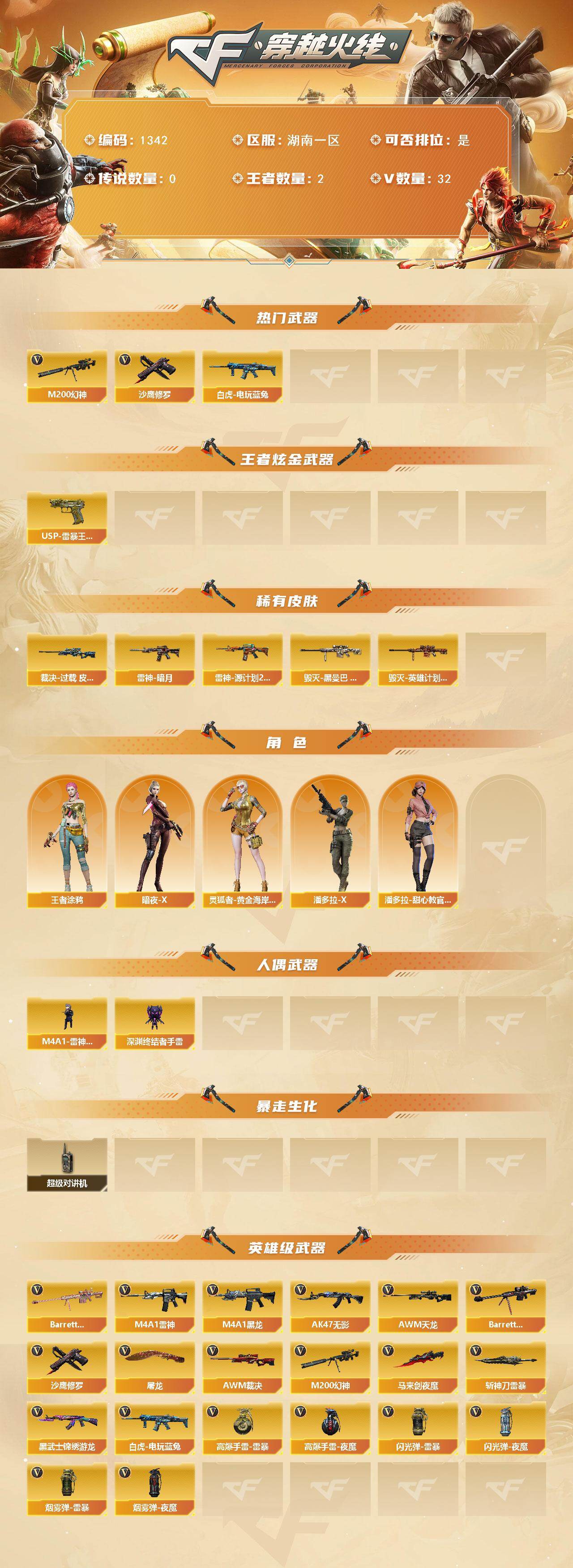 湖南一区-32V-2王者-0炫金【热门武器】:M200-幻神,白虎-电玩蓝兔