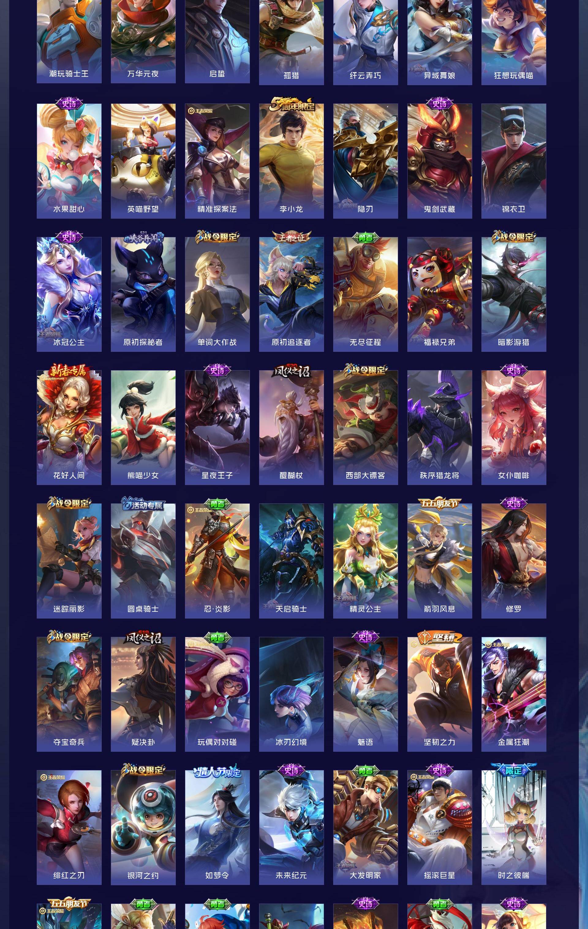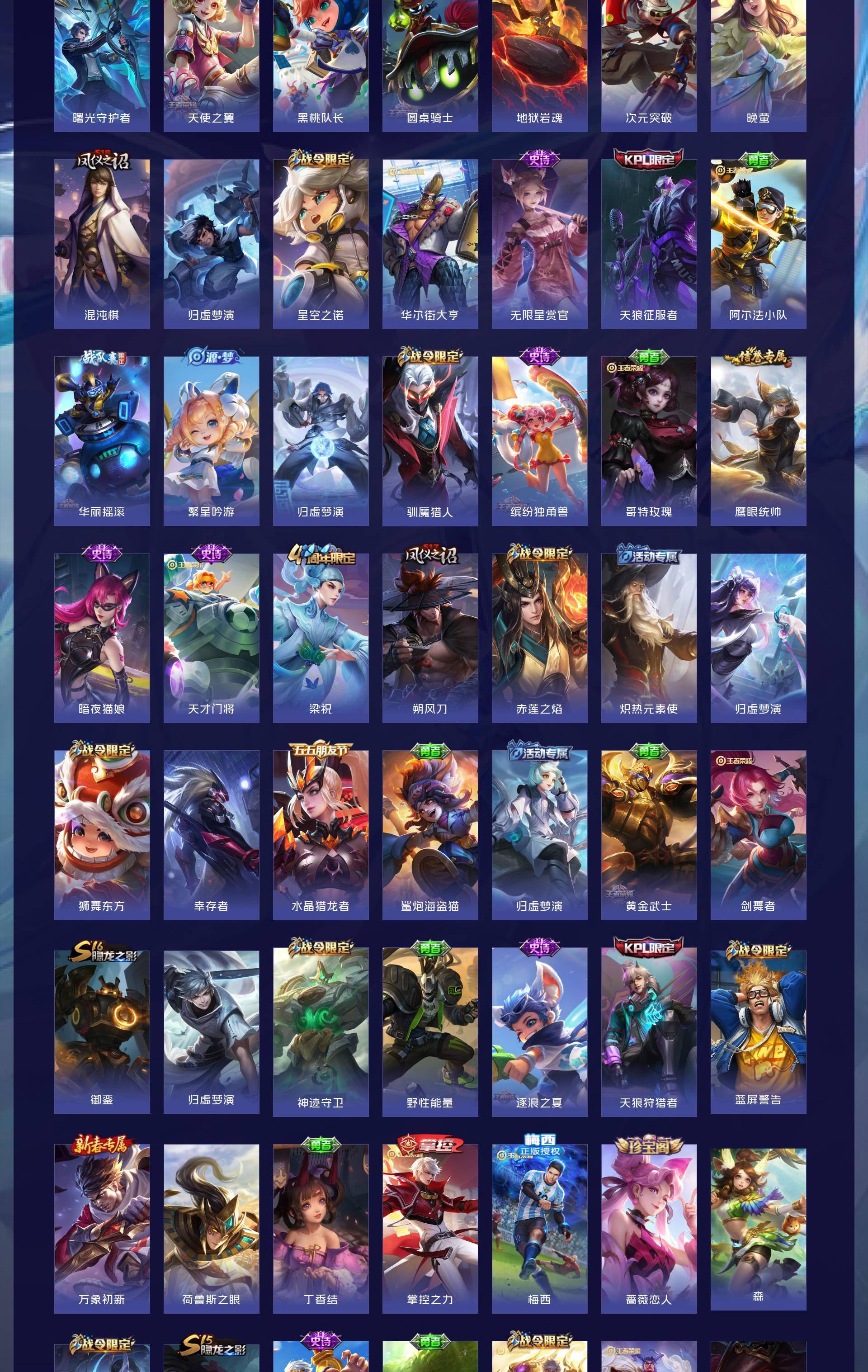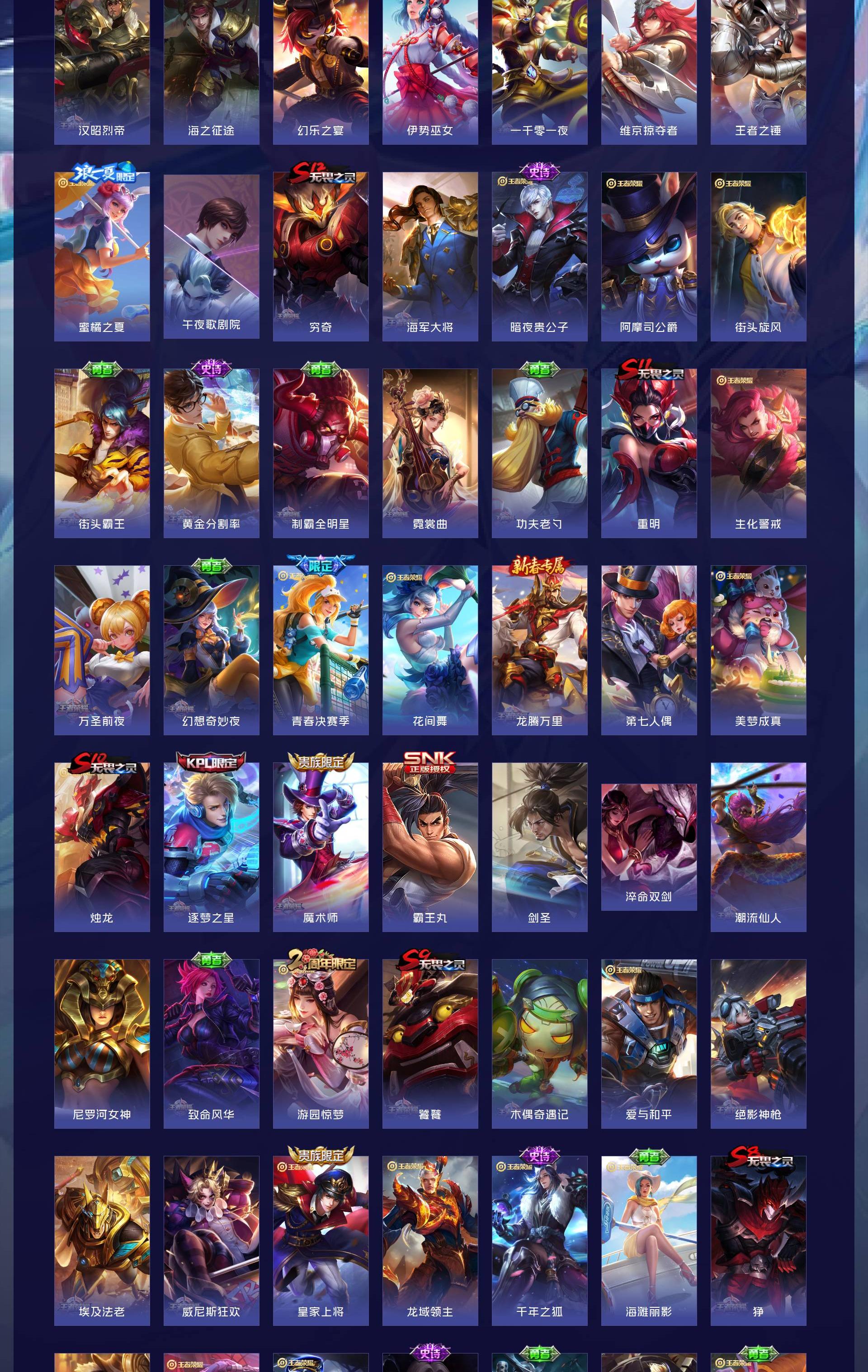 V10 皮肤495 英雄129 至尊星耀 荣耀典藏5 传说46 其他皮肤450