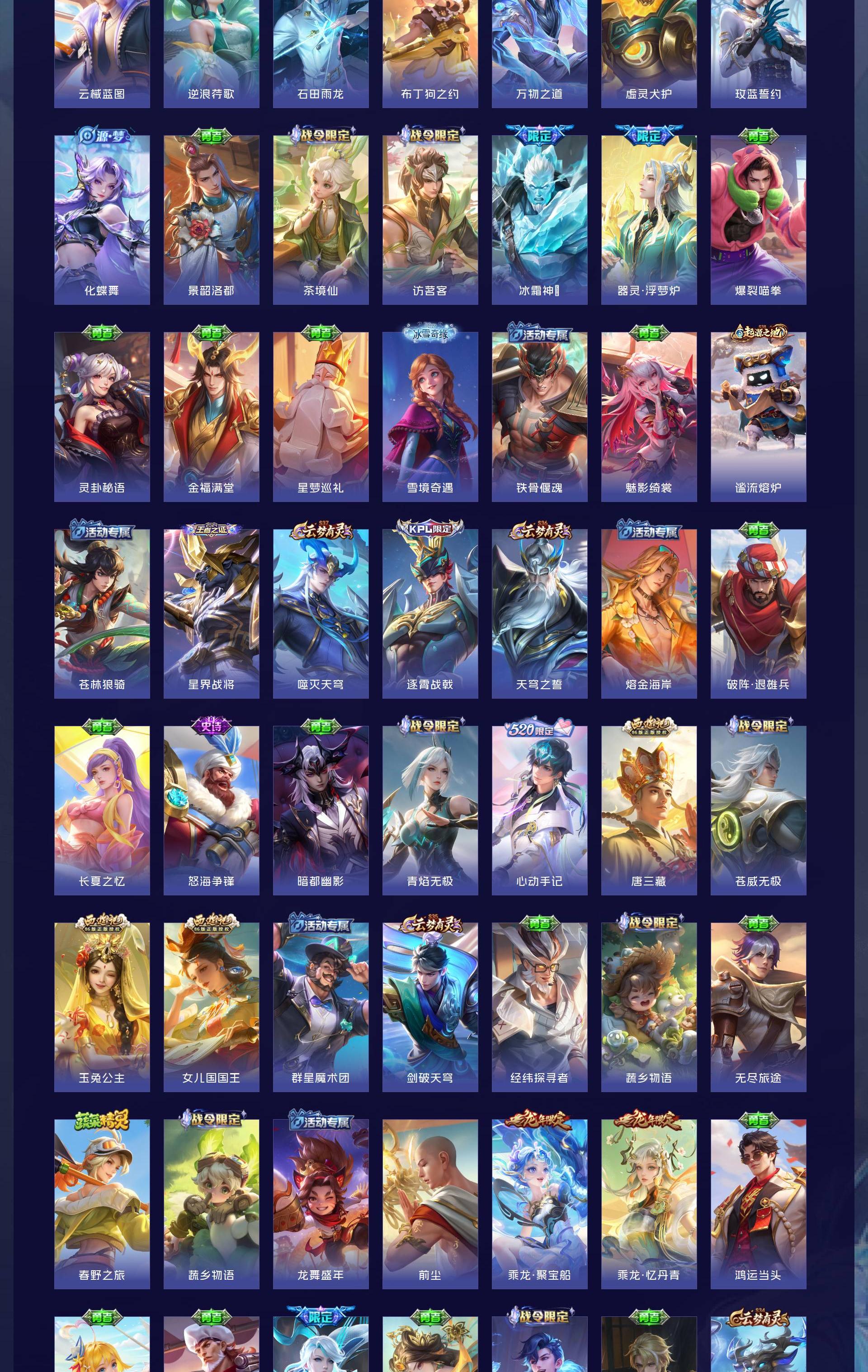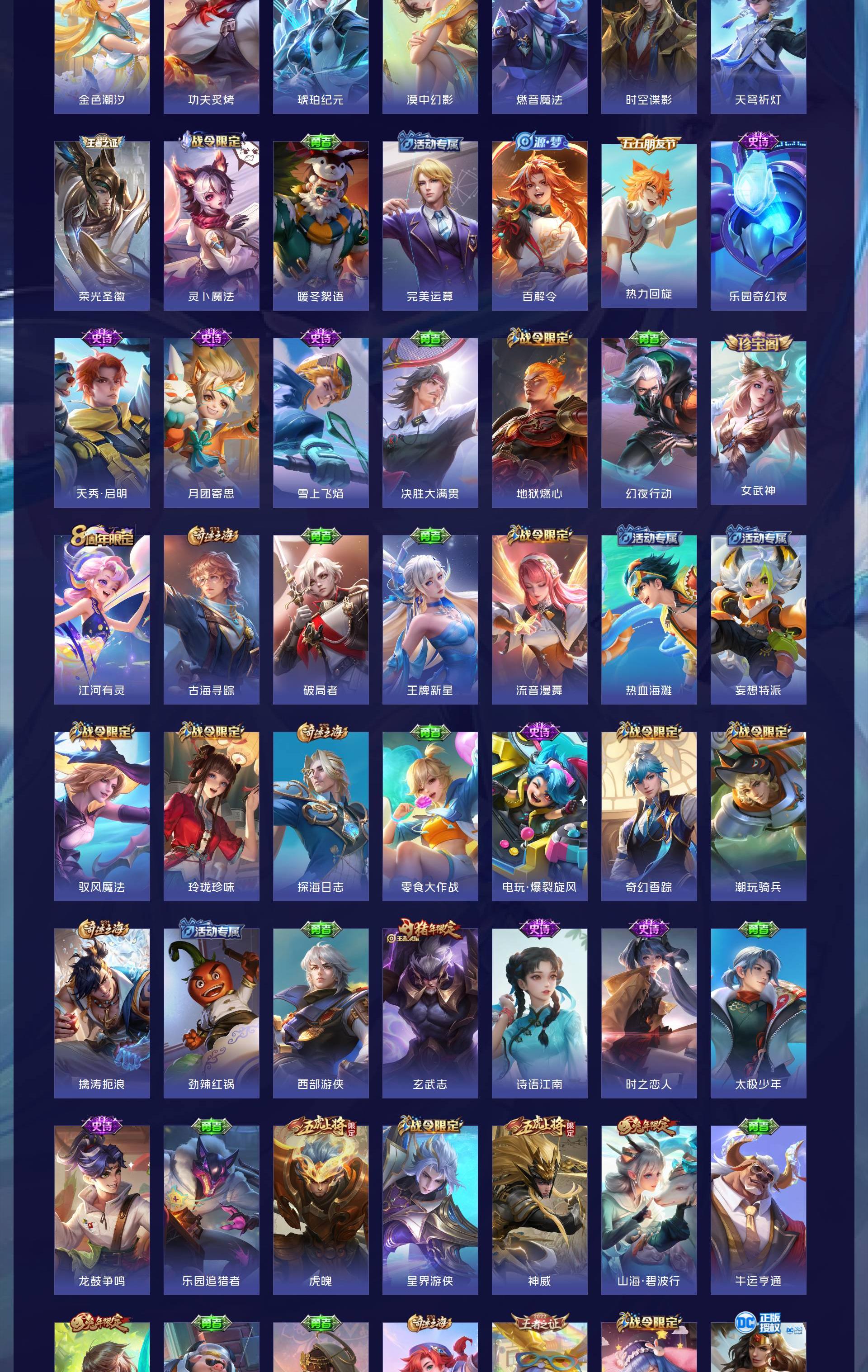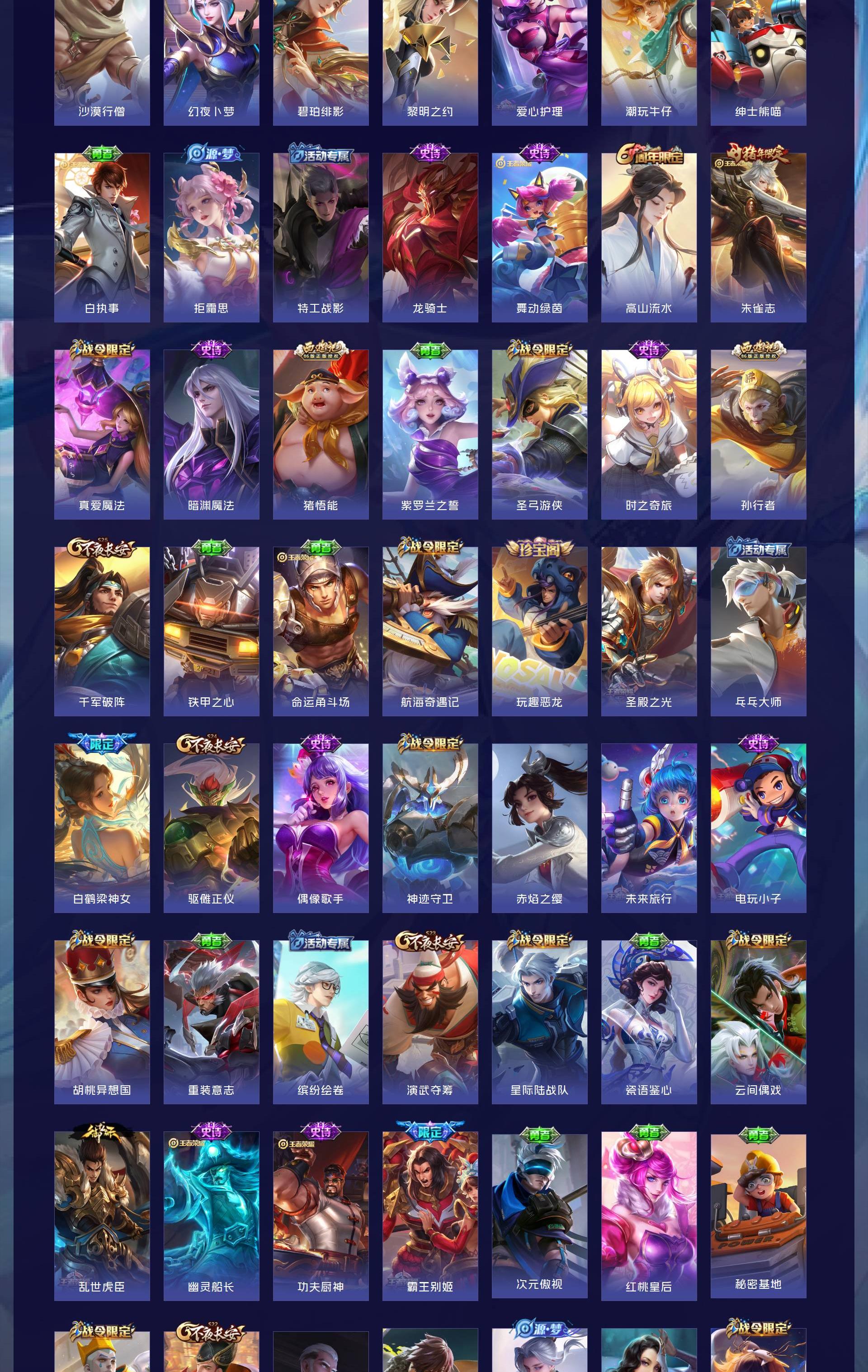 V10 皮肤495 英雄129 至尊星耀 荣耀典藏5 传说46 其他皮肤450