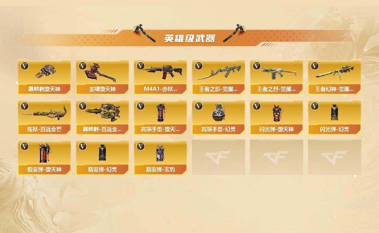 【热门武器】:传说光耀,传说圣灵,QBZ03-金色蔷薇,死亡之眼,M4A1-黑骑士,COP-堕天神,沙鹰-修罗