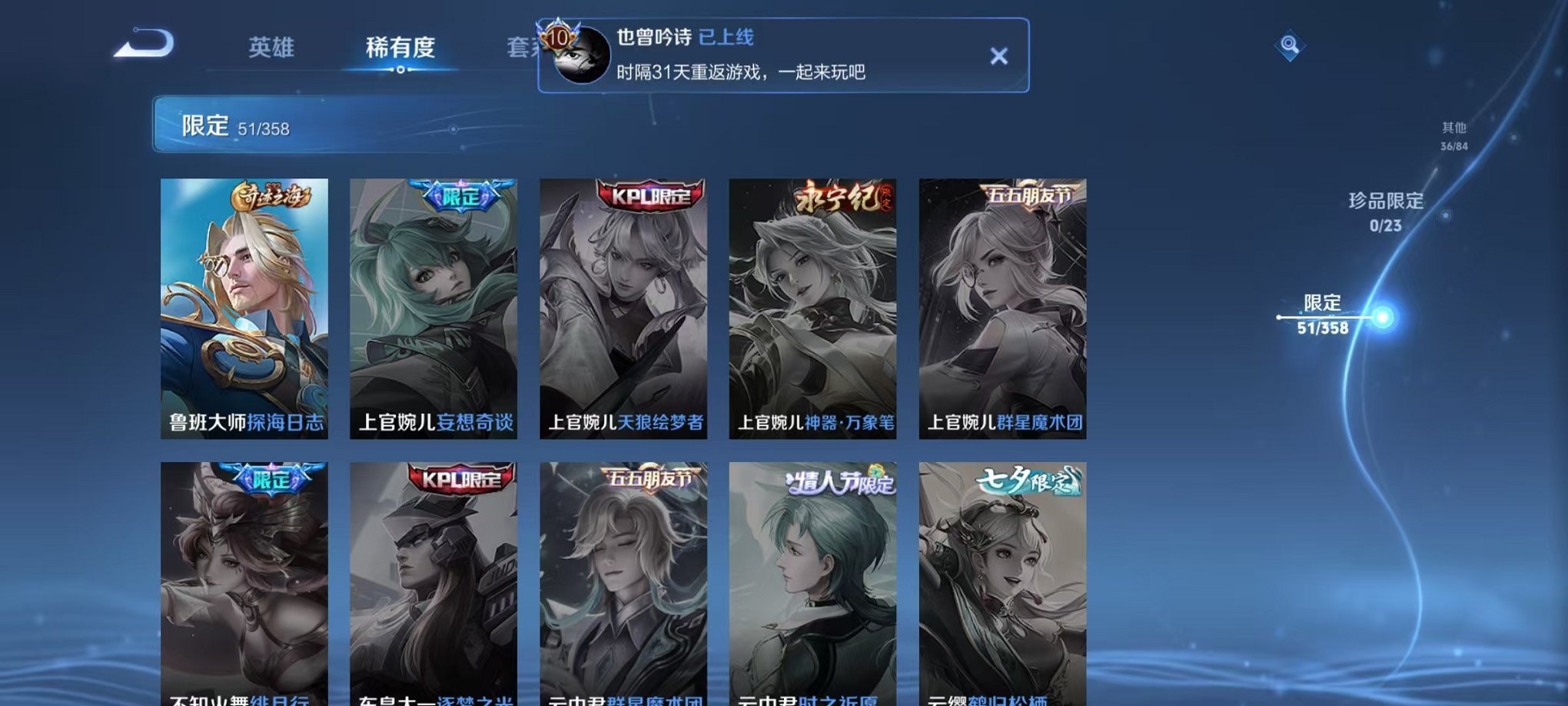 145皮肤1星元1传说 Q70极 -127英雄