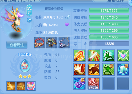 新区乙巳端午95男普陀,特技齐全,天地护法易成长衣服,1内丹玉龙将,3个宠物皮肤,高级坐骑,海景庄园,1000金子,2980邮箱,有双重。