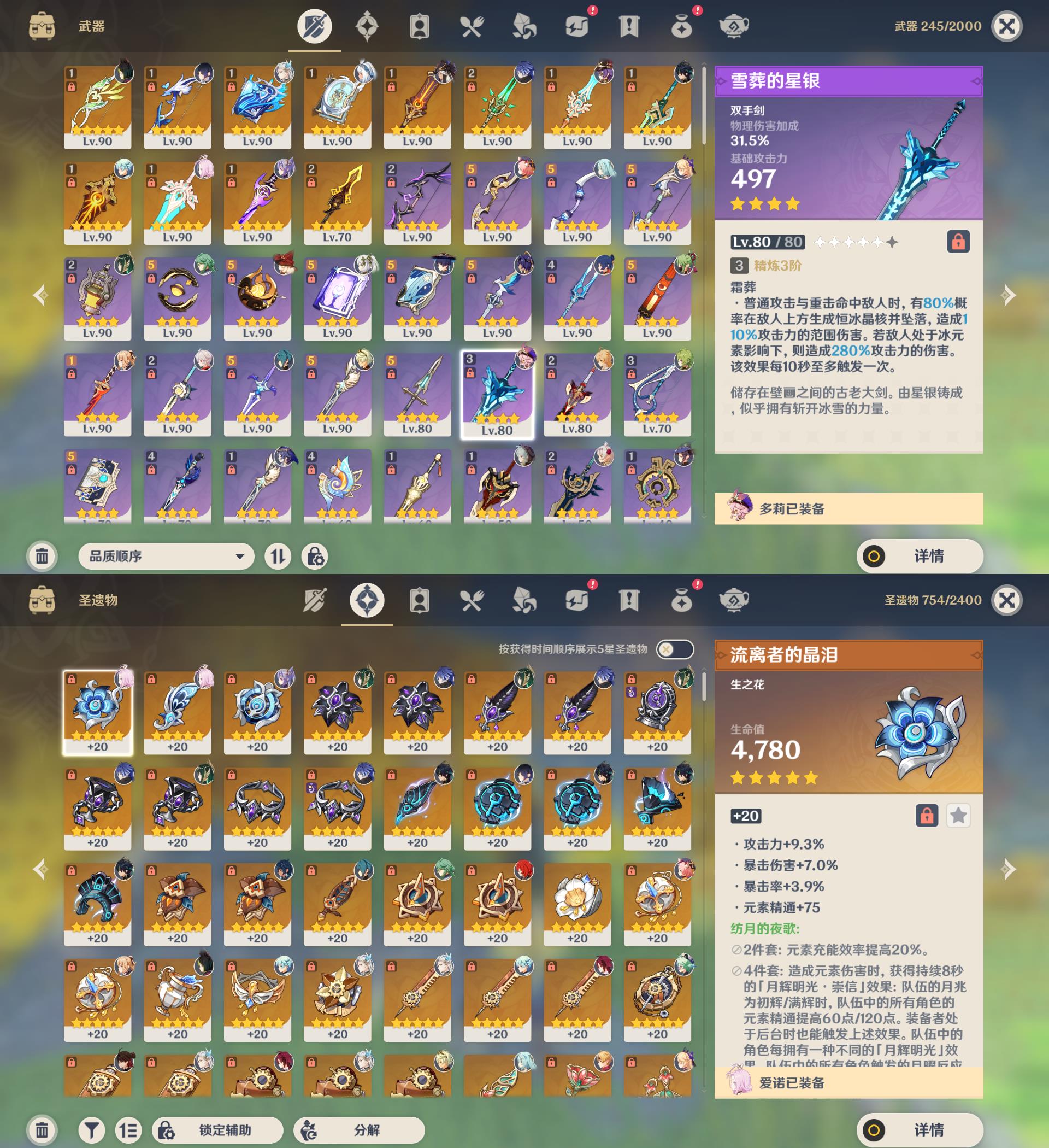 60级/55黄/女主/16个五星角色/12个五星武器/2命基尼奇/5命赛诺/1命那维莱特