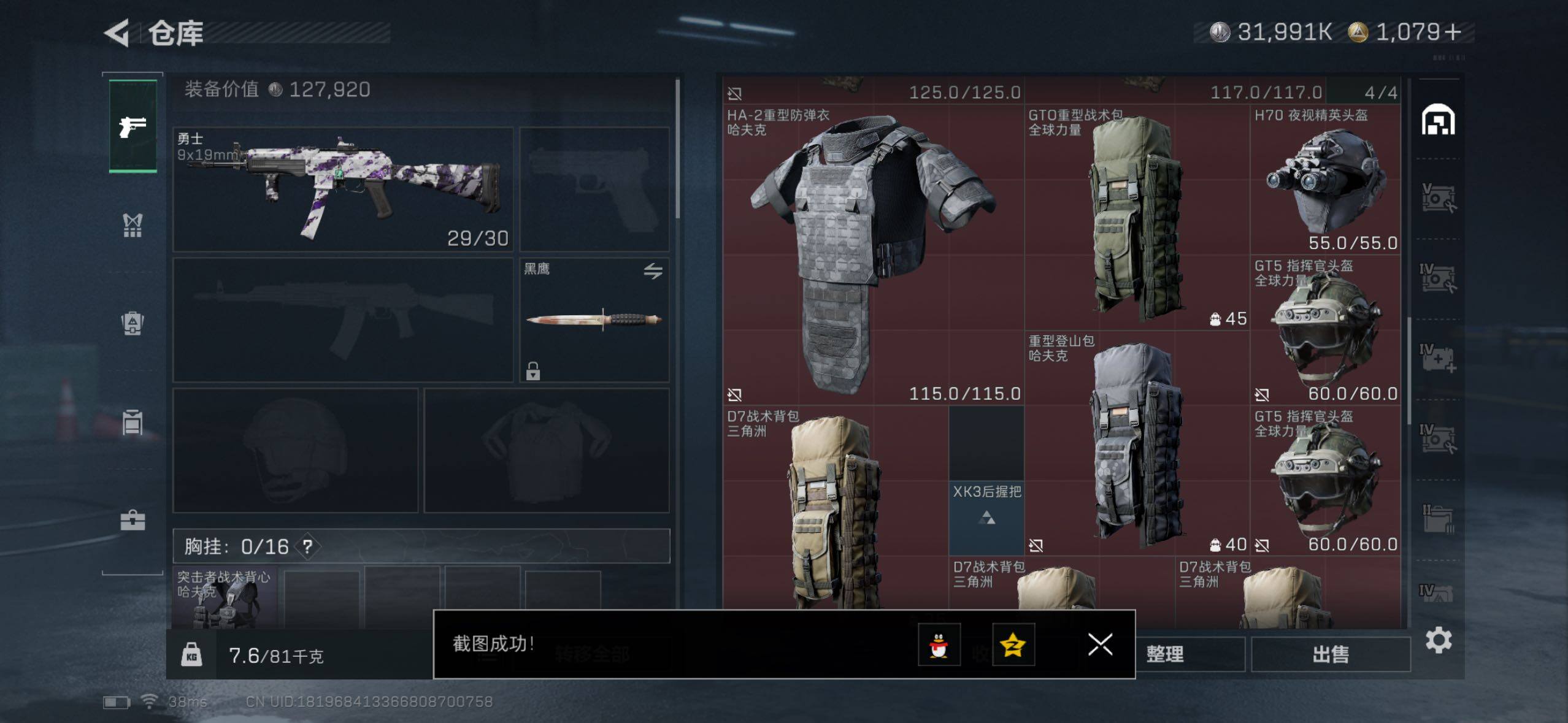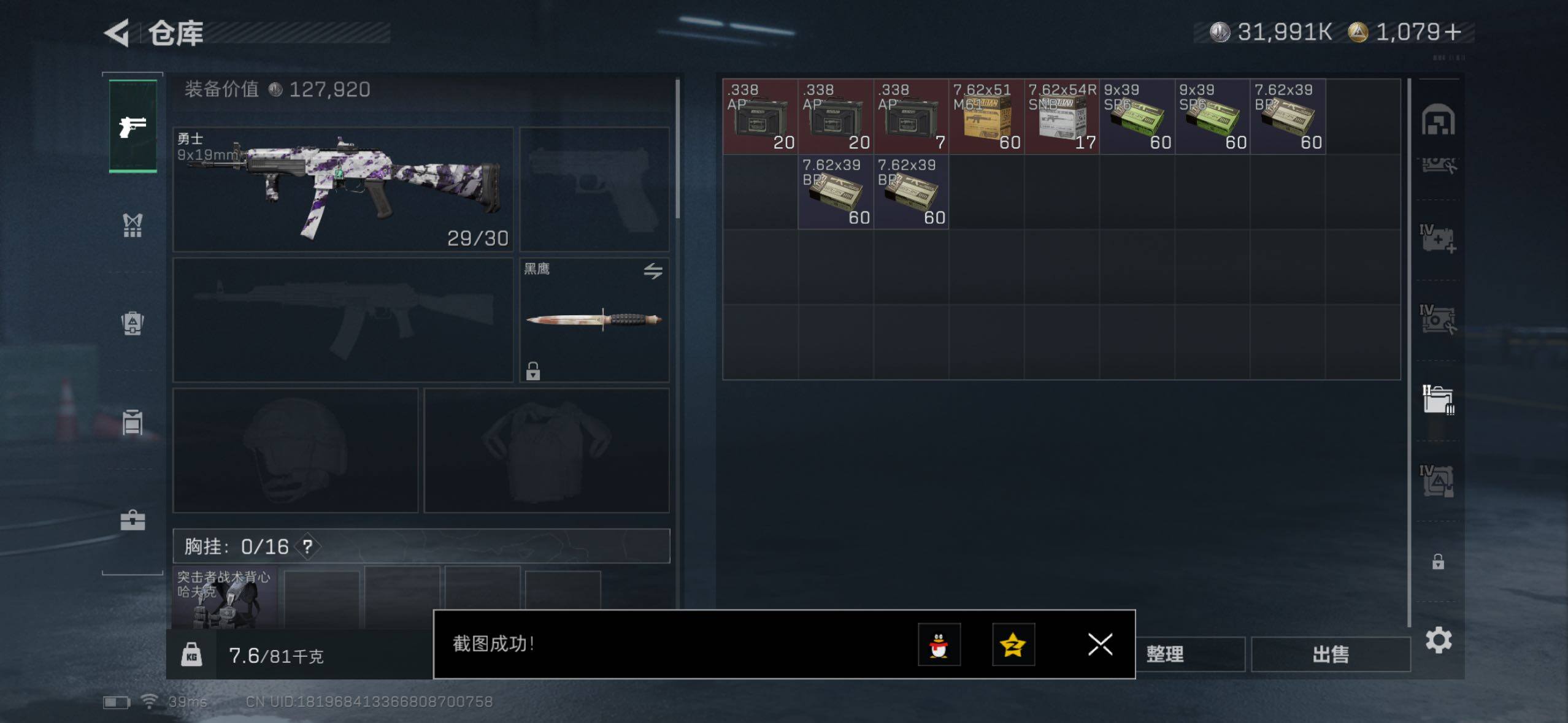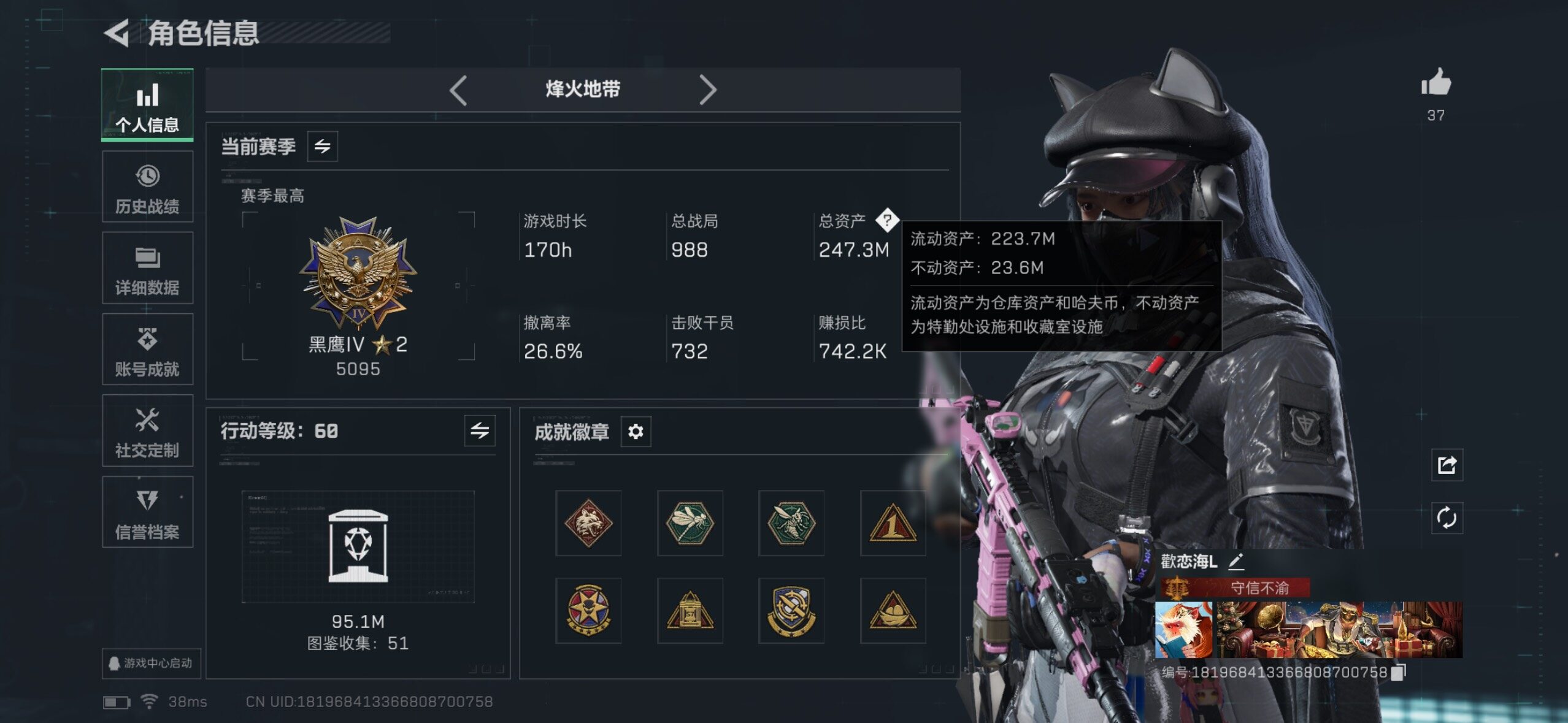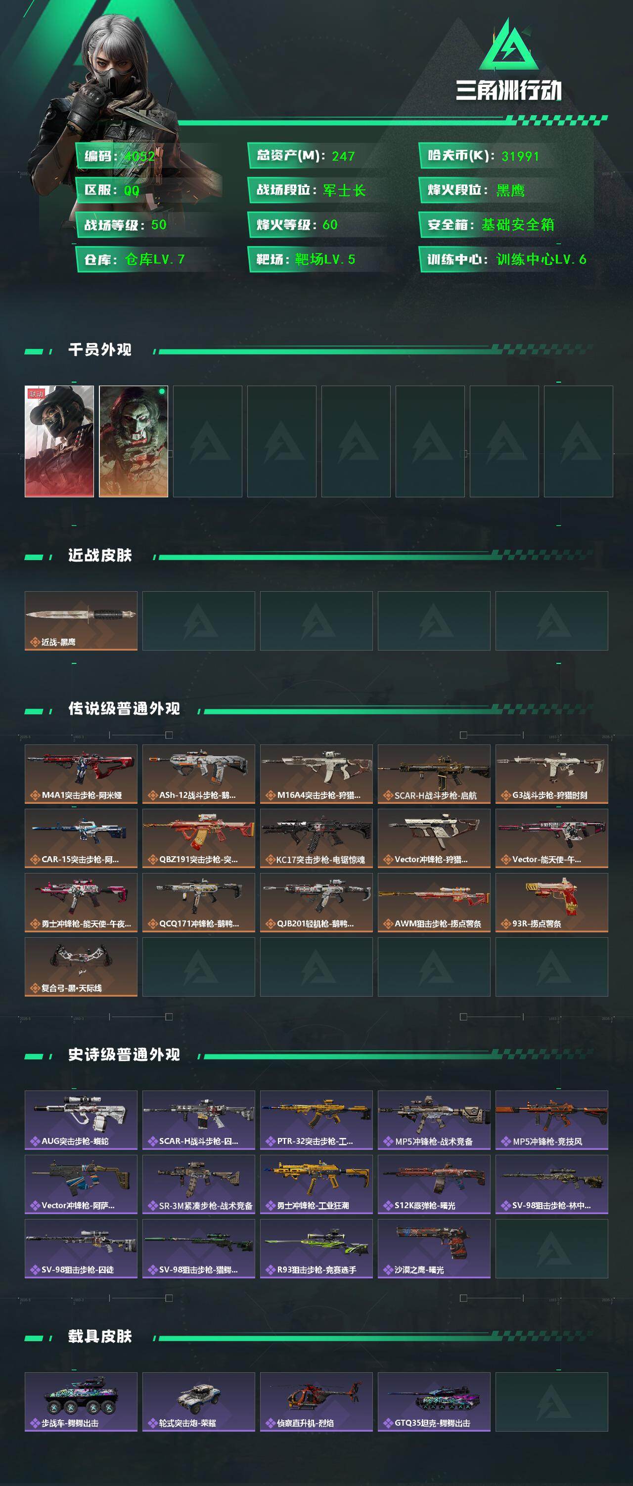 247m总资产-31991k哈伏币-60烽火等级-黑鹰-50战场等级-军士长
