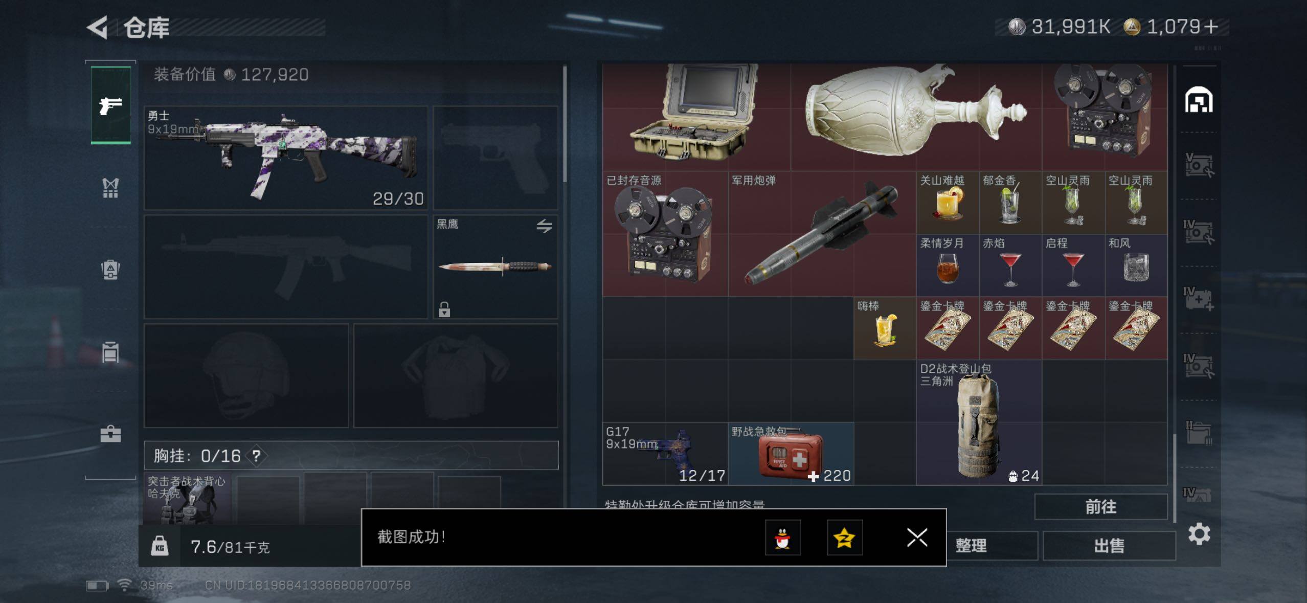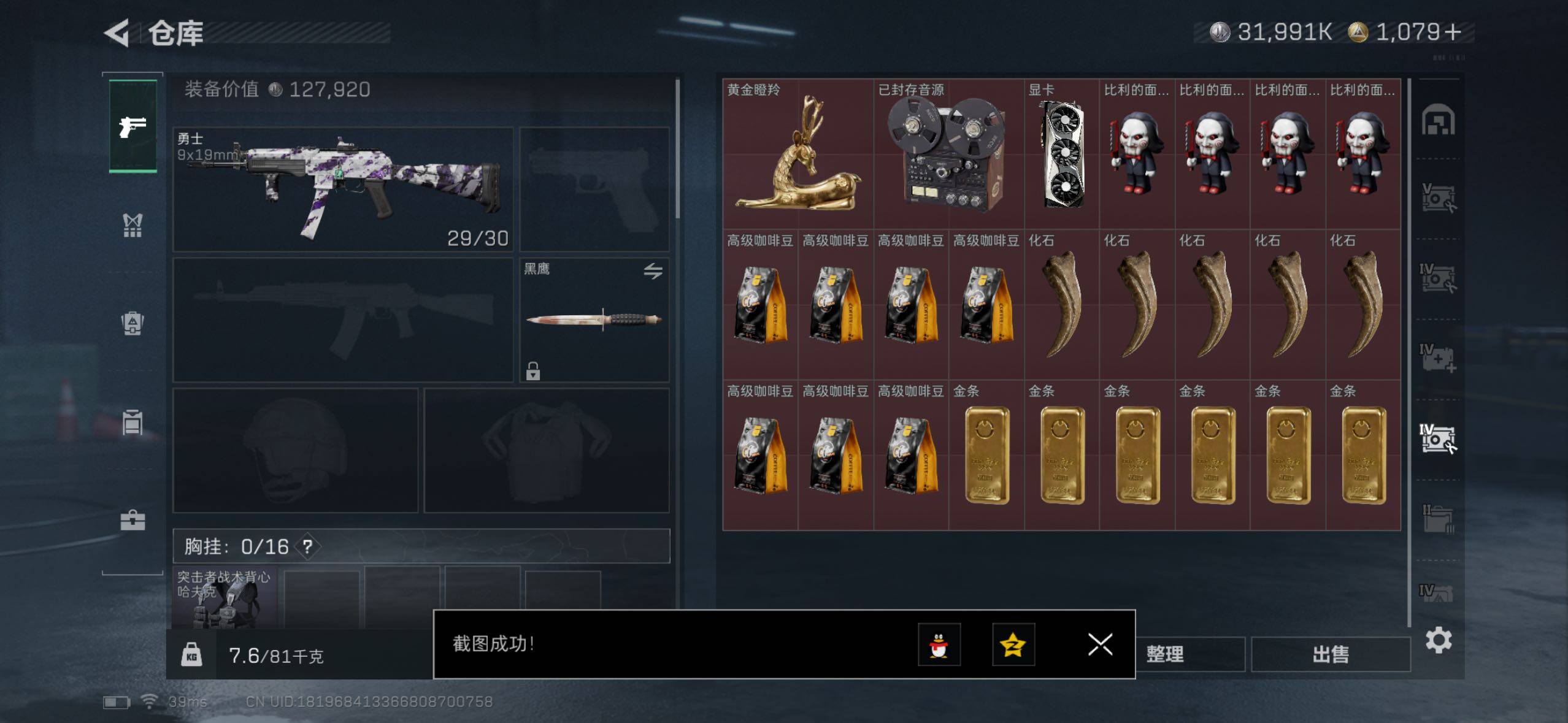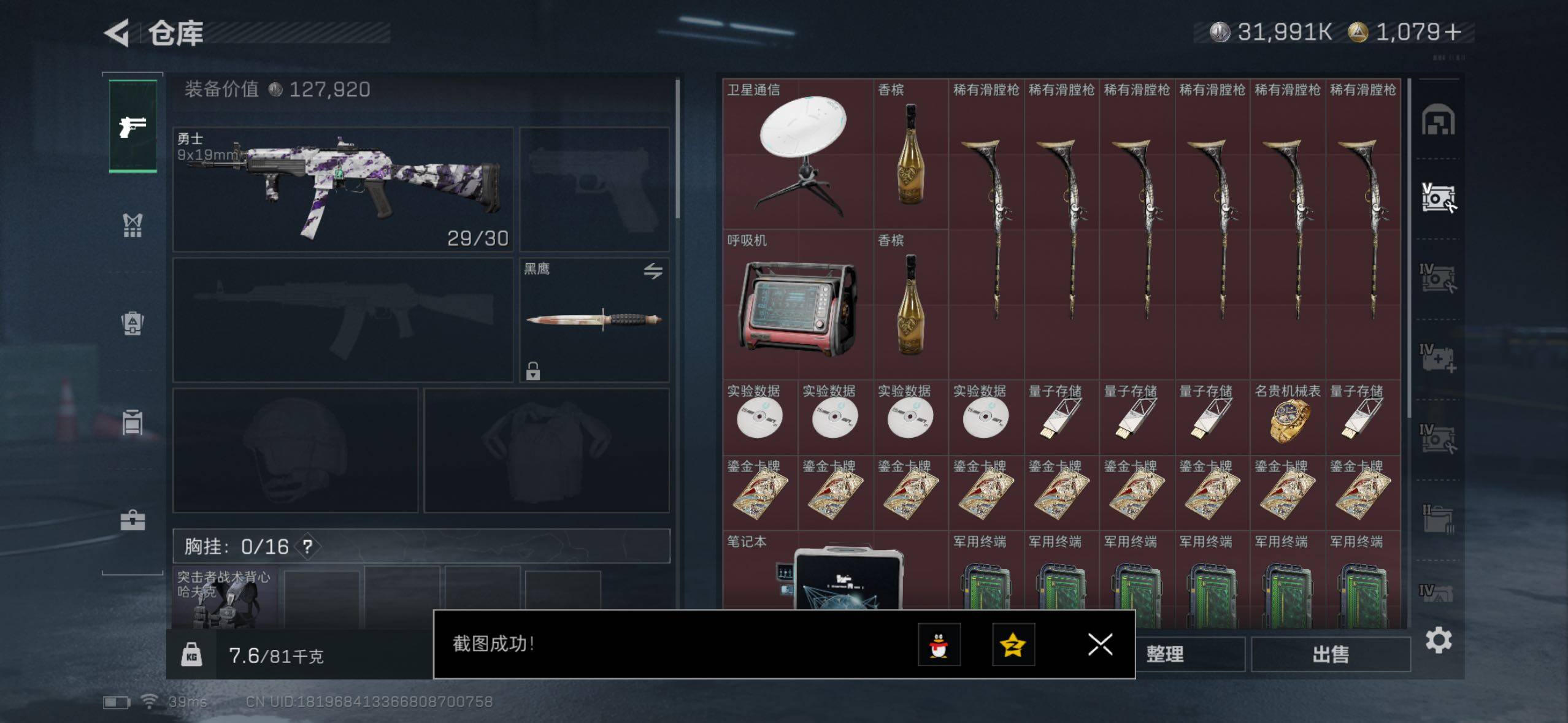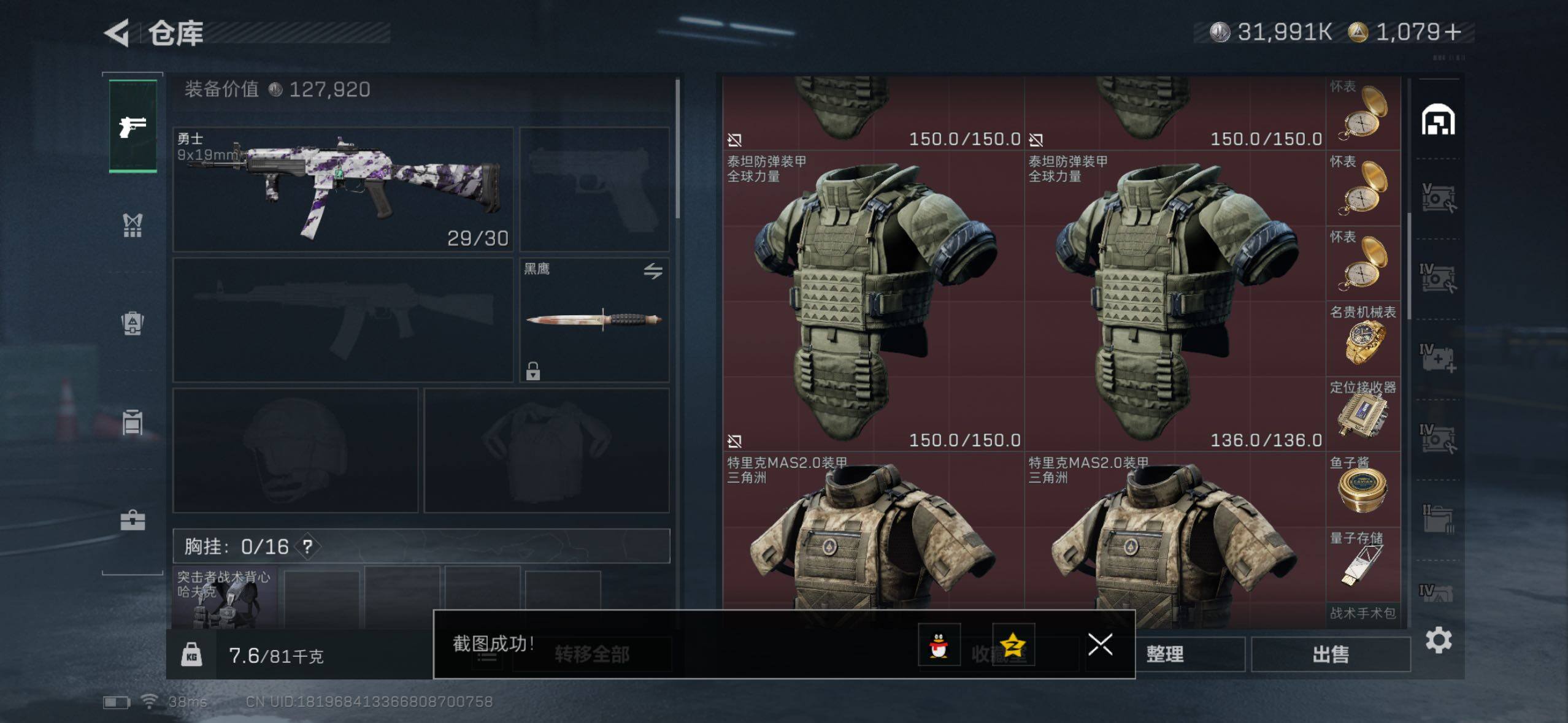 247m总资产-31991k哈伏币-60烽火等级-黑鹰-50战场等级-军士长