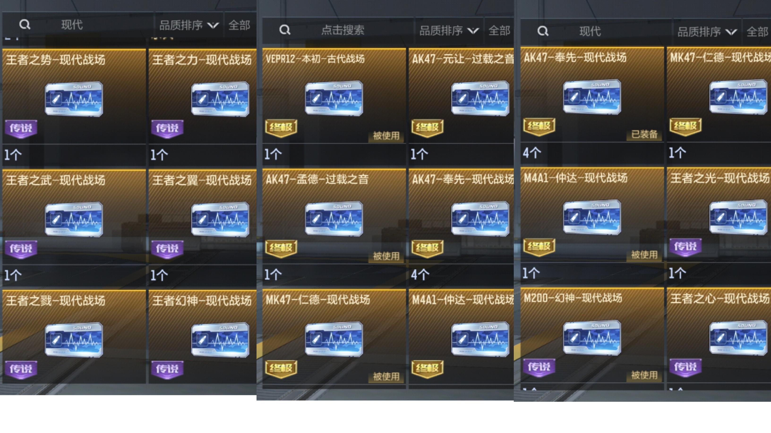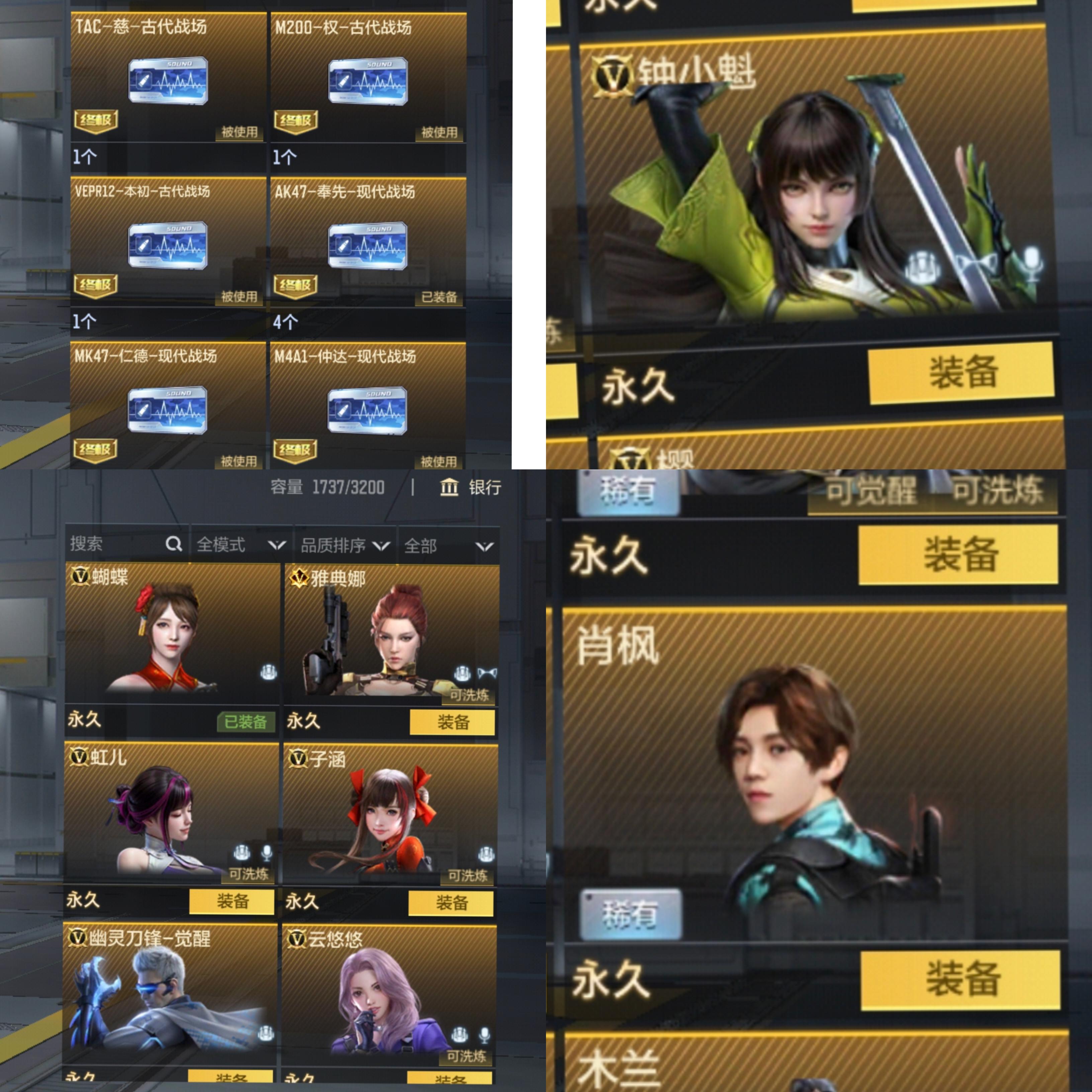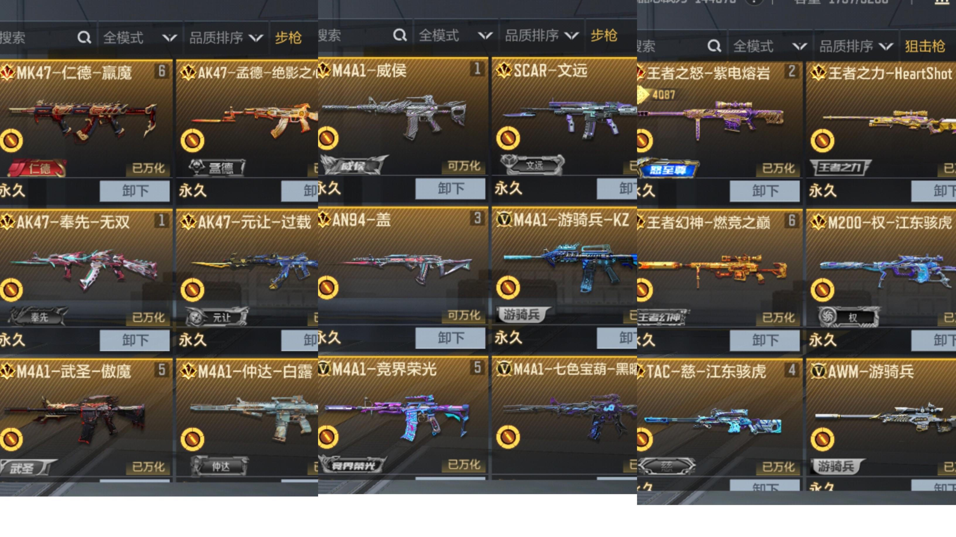 基本所有武器都有音效卡皮肤万化三国套装特别多背包还有女团自选皮肤