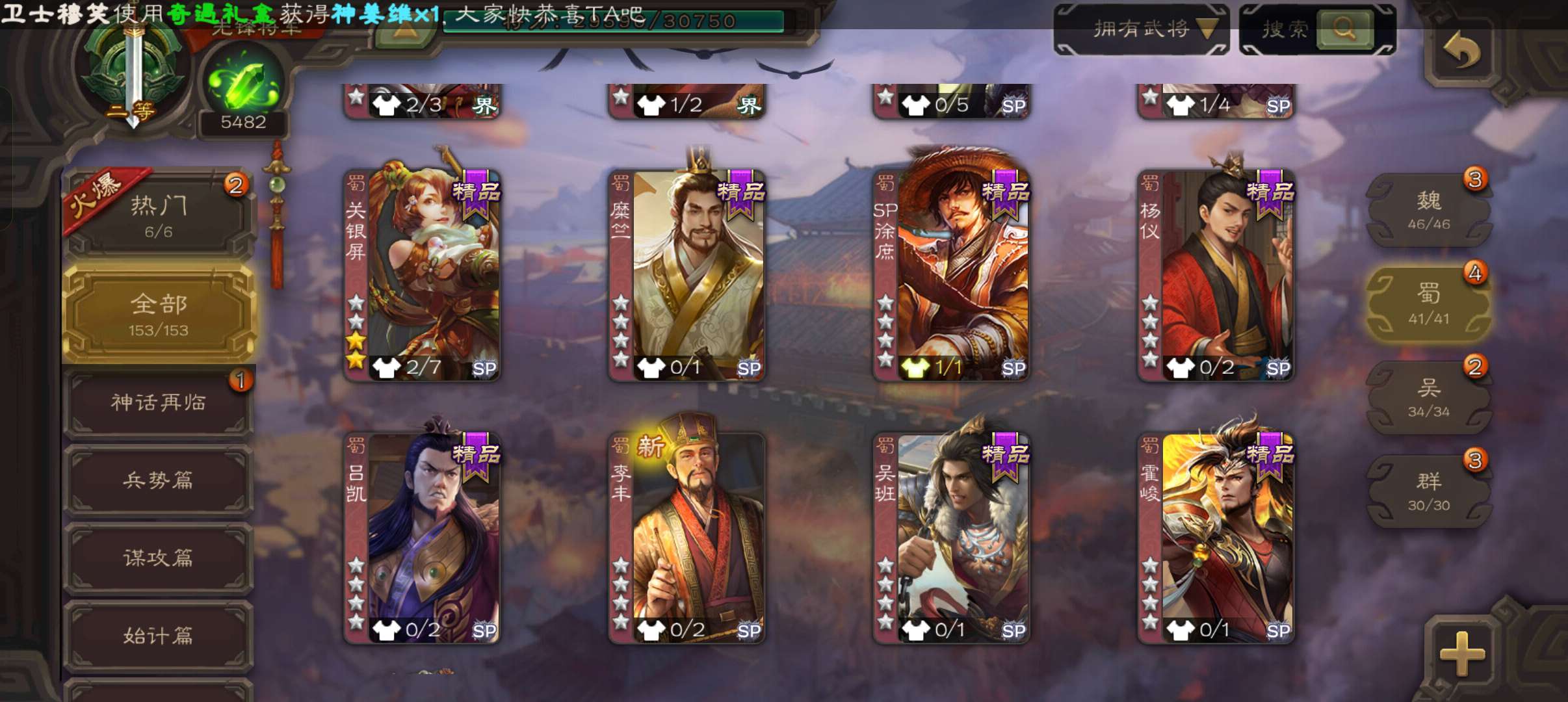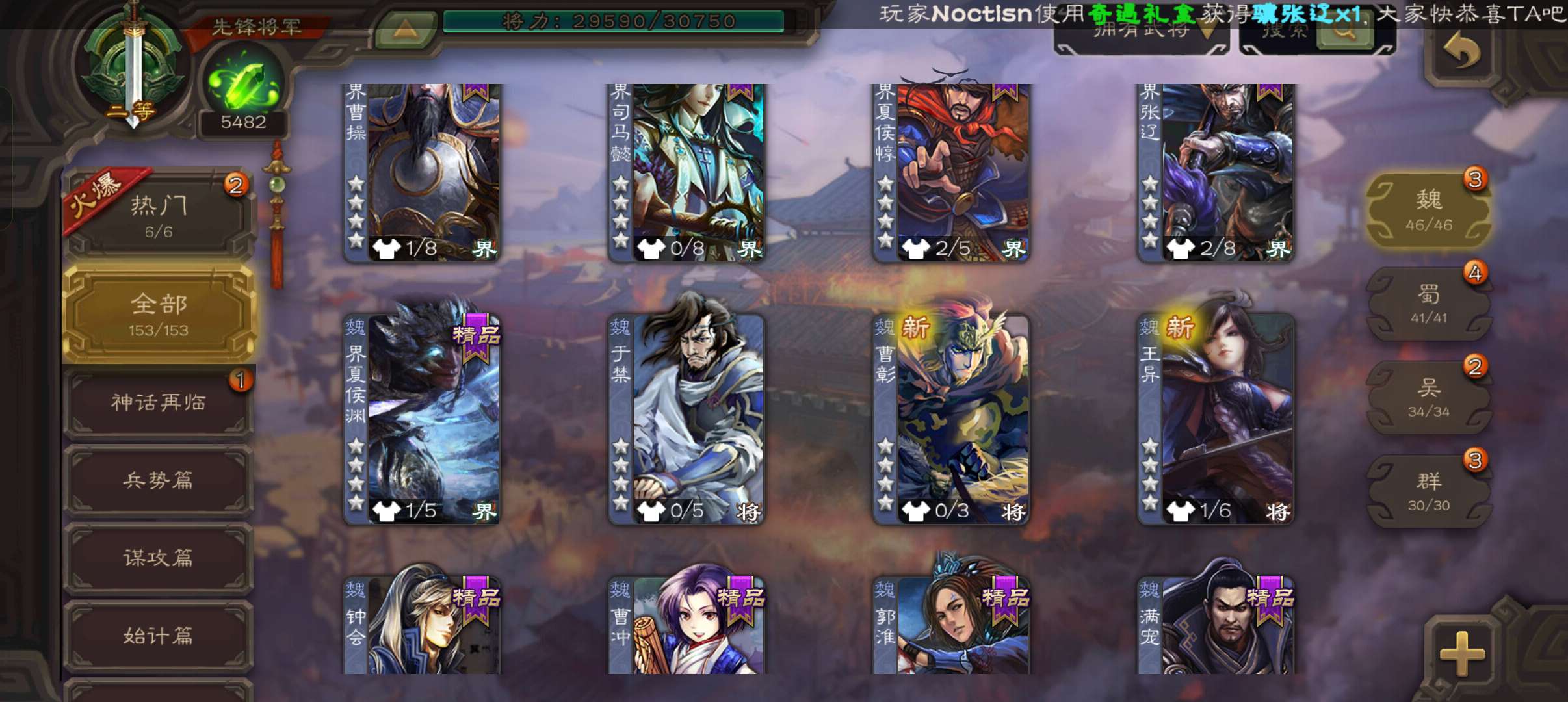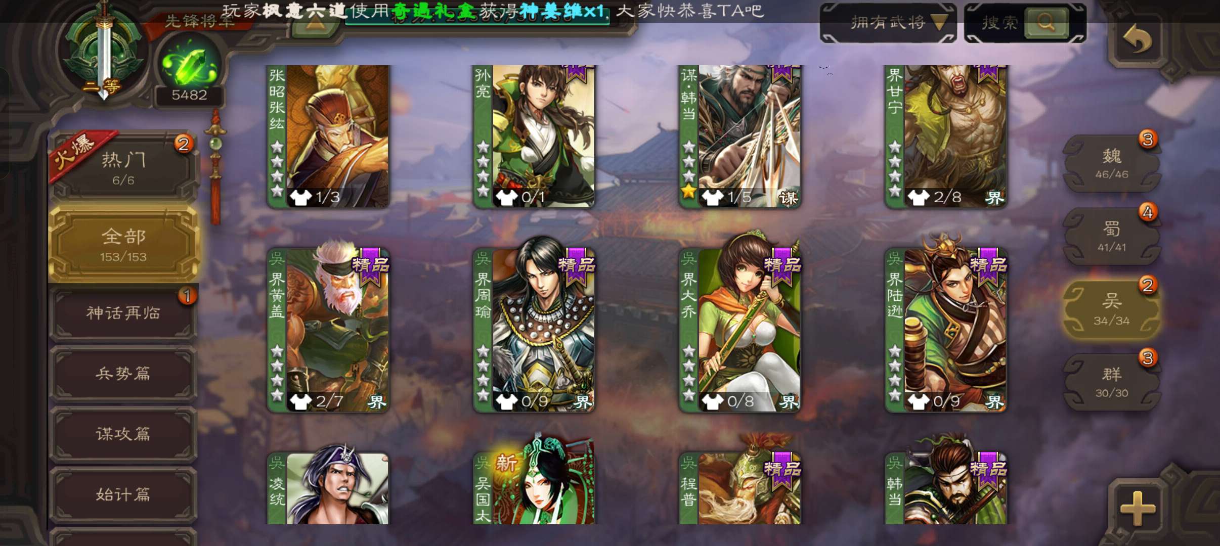 39.3宝珠9万羽毛5400魂,神赵云曹婴界黄忠3史诗先锋,神吕蒙动态关银屏谋卢植谋高顺谋韩当霍峻