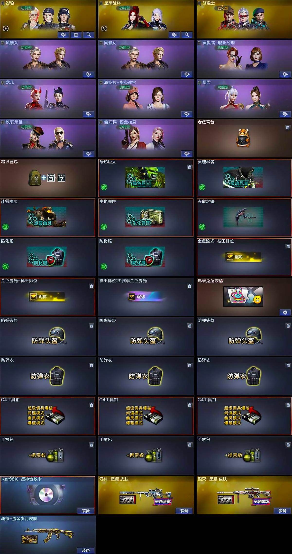 【皮肤】:幻神-星耀 皮肤,幻神-电竞之星 皮肤,毁灭-星耀 皮肤,战神-流金岁月皮肤,AK47-B-常胜将军-曹操*2,AK47-B-常胜将军-刘备,AK47-B-常胜将军-孙权
