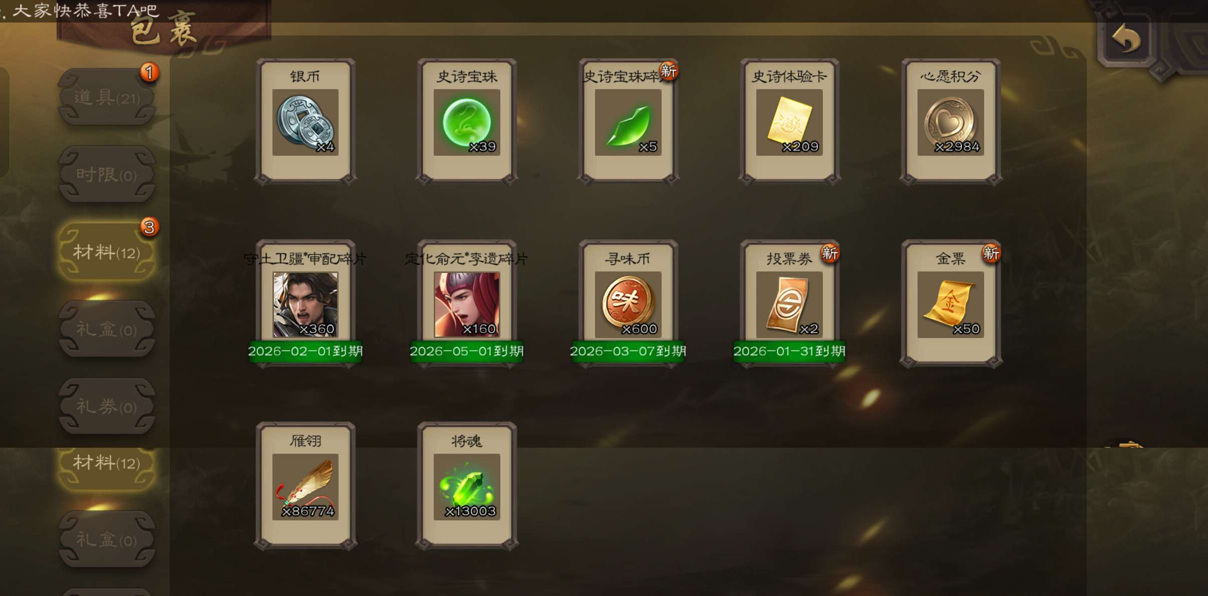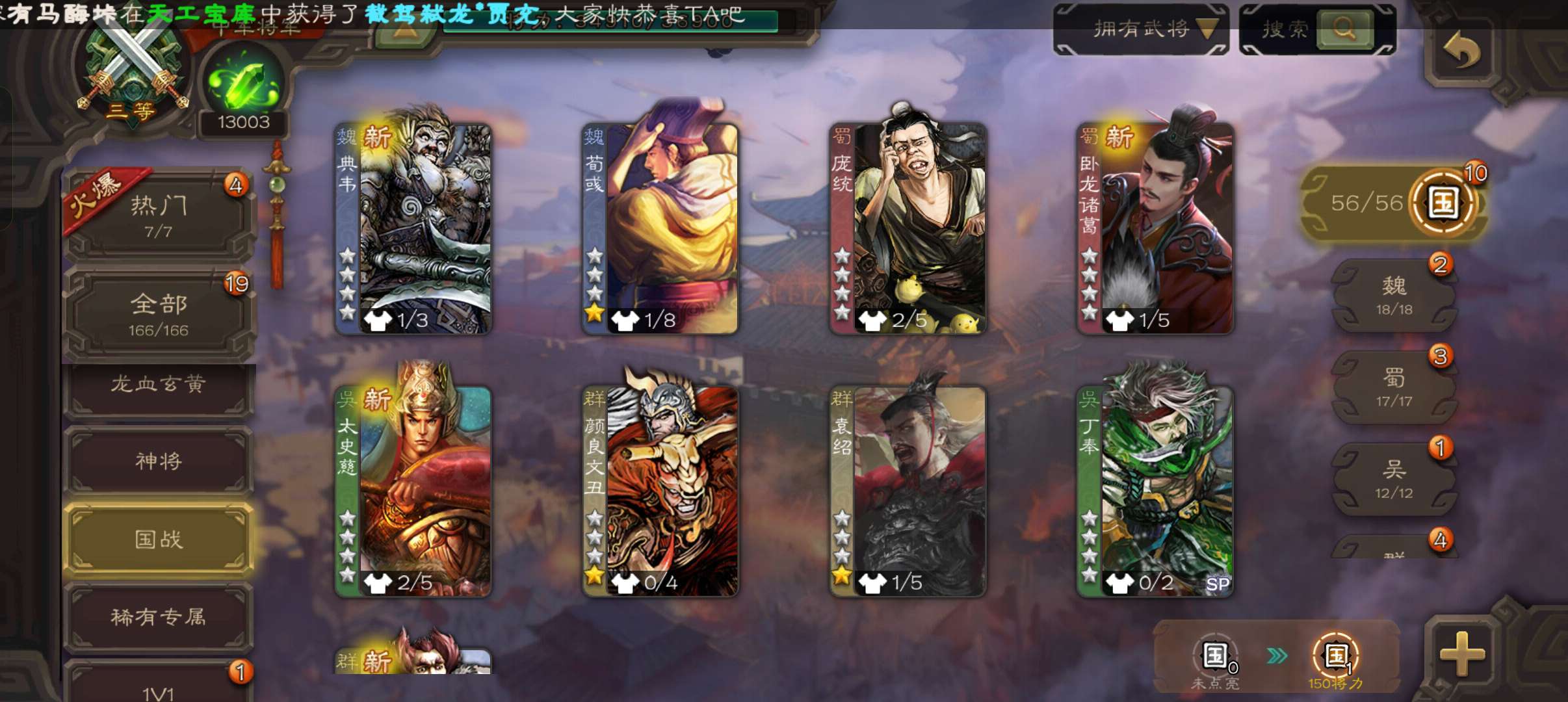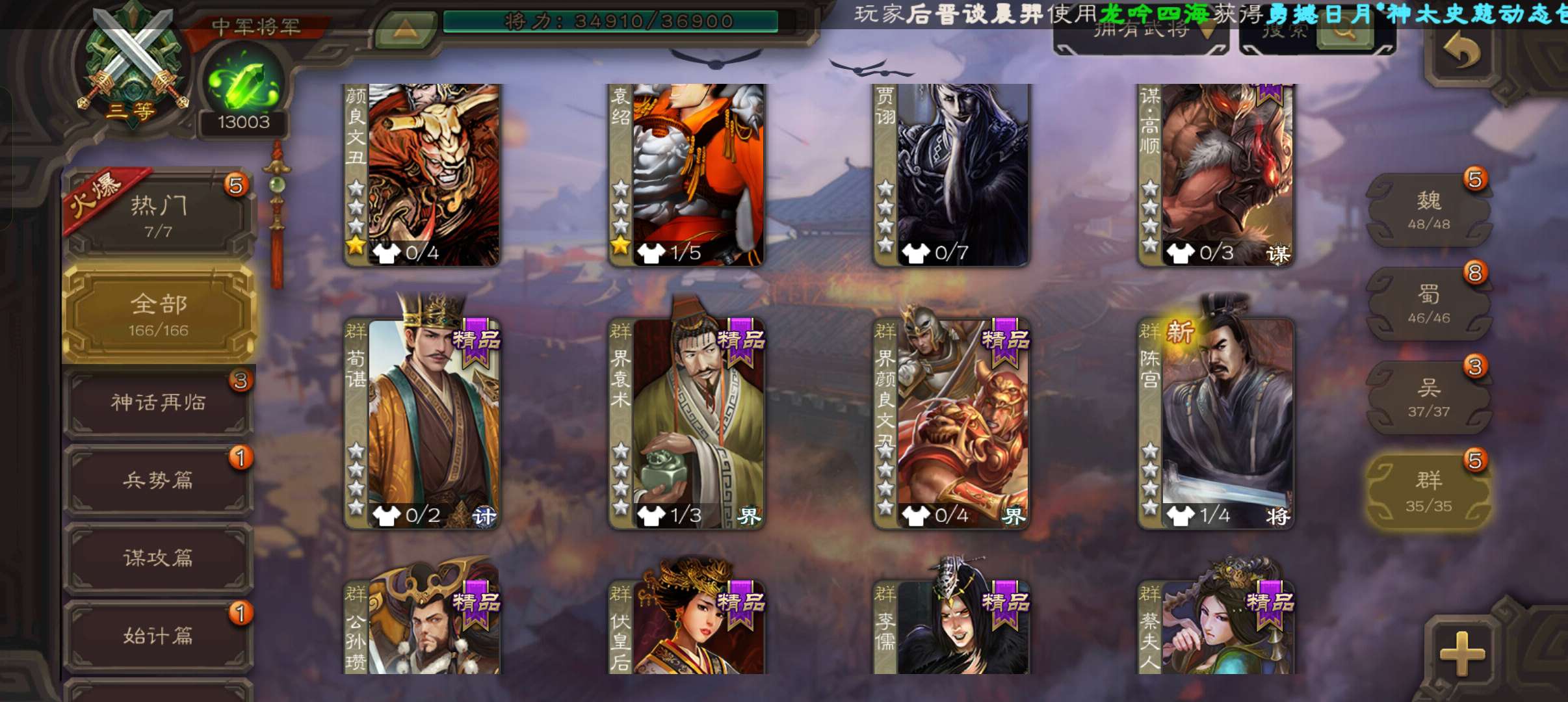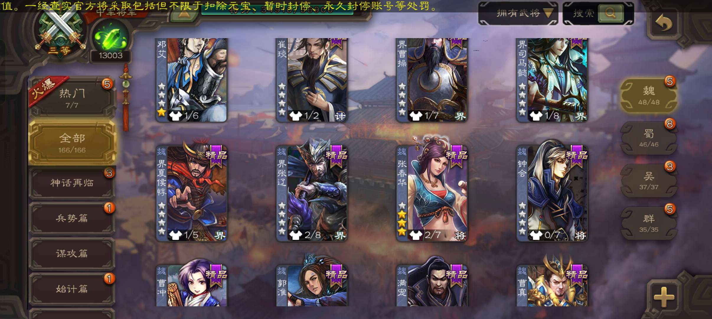 39.5珠8.6万毛1.3将魂7万豆,谋关羽神刘备谯周花鬘程昱中军,动张春华动关银屏动诸葛果166将