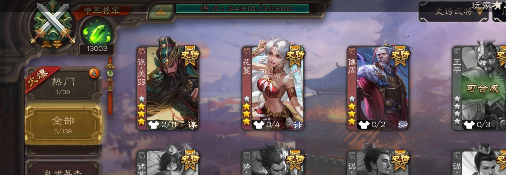 史诗武将数量: