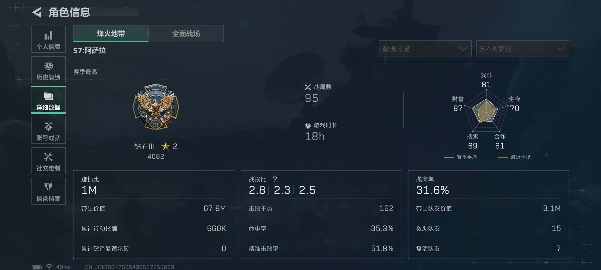 总资产(M):24M/哈夫币(K):2417K/哈夫币(K):2417K/传说枪皮数:15/全面战场