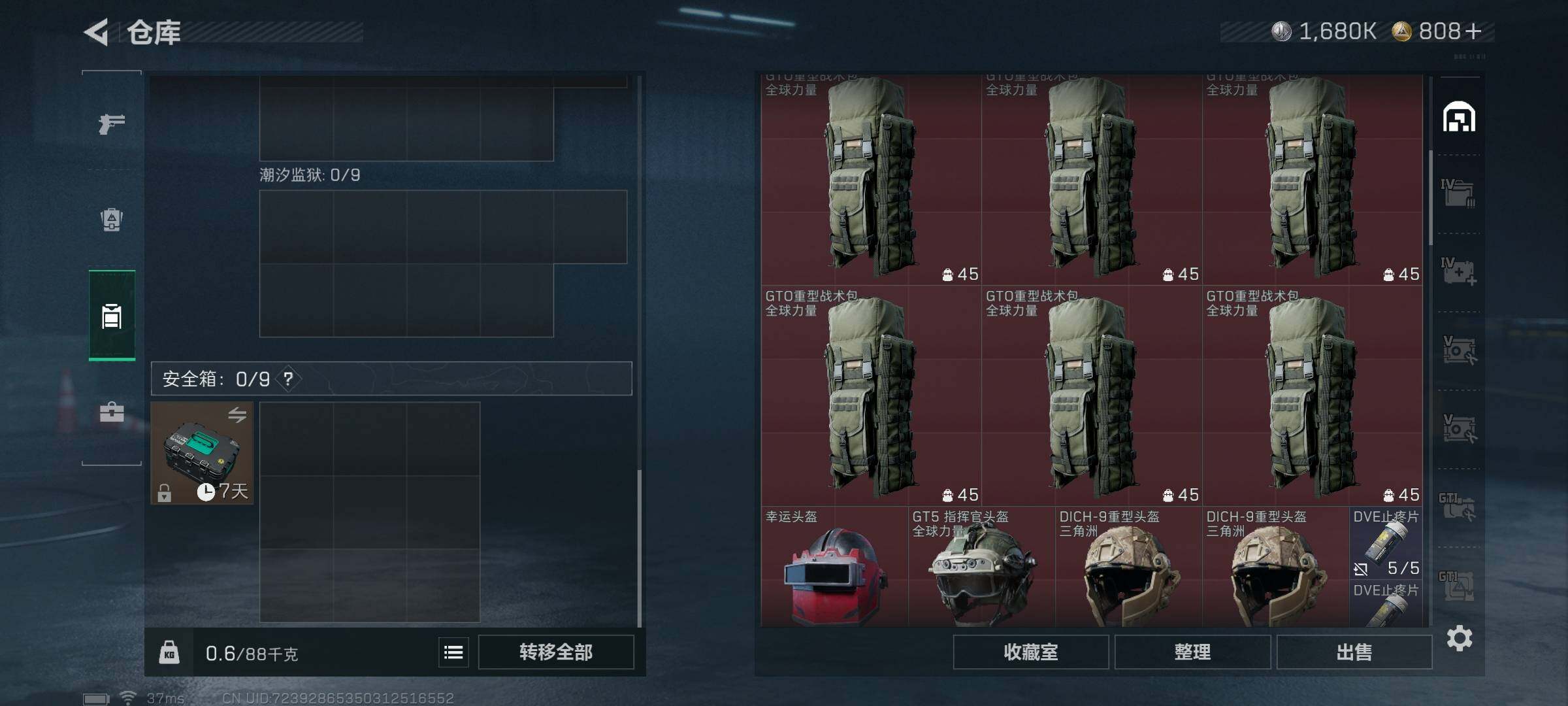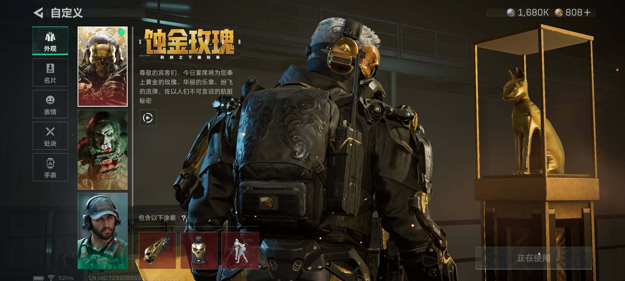 总资产(M):252M/哈夫币(K):1680K/哈夫币(K):1680K/传说枪皮数:9/全面战场