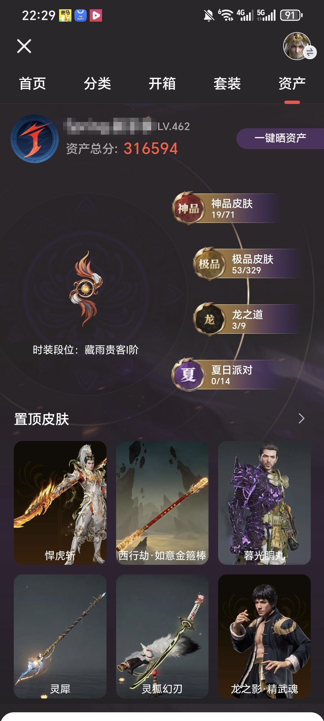 【神品19 极品53 龙之道3】【游戏等级】462【大区】国服【神品皮肤】