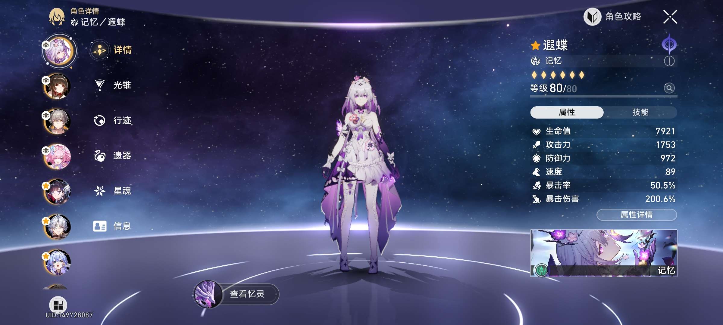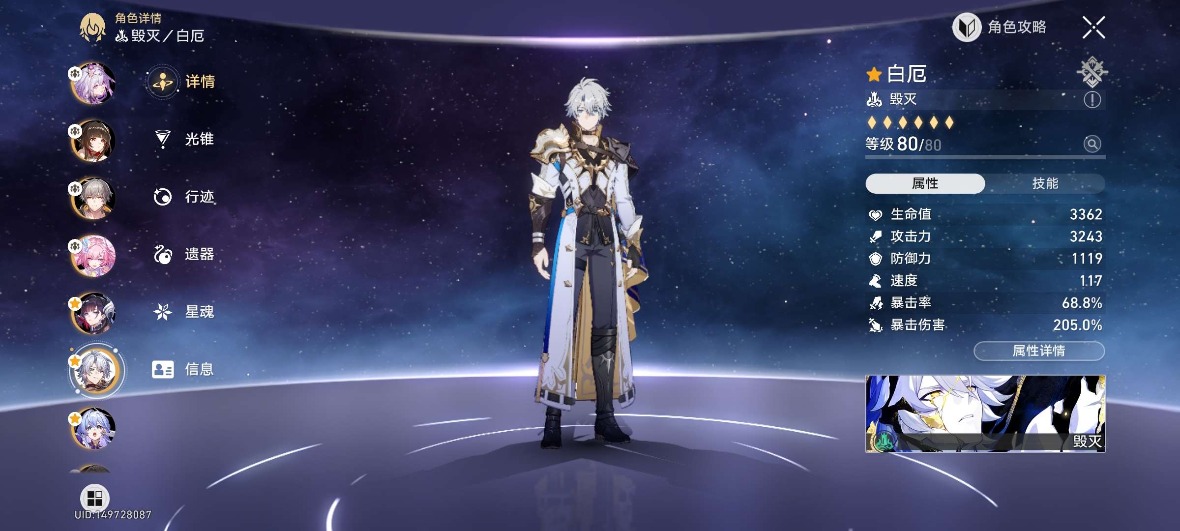 男主,开拓等级 70,黄数 78,25个五星角色,14个五星光锥 ,1731个星穹