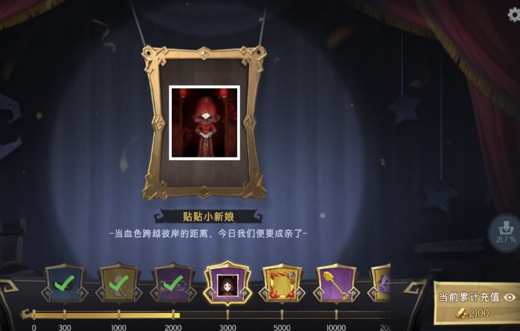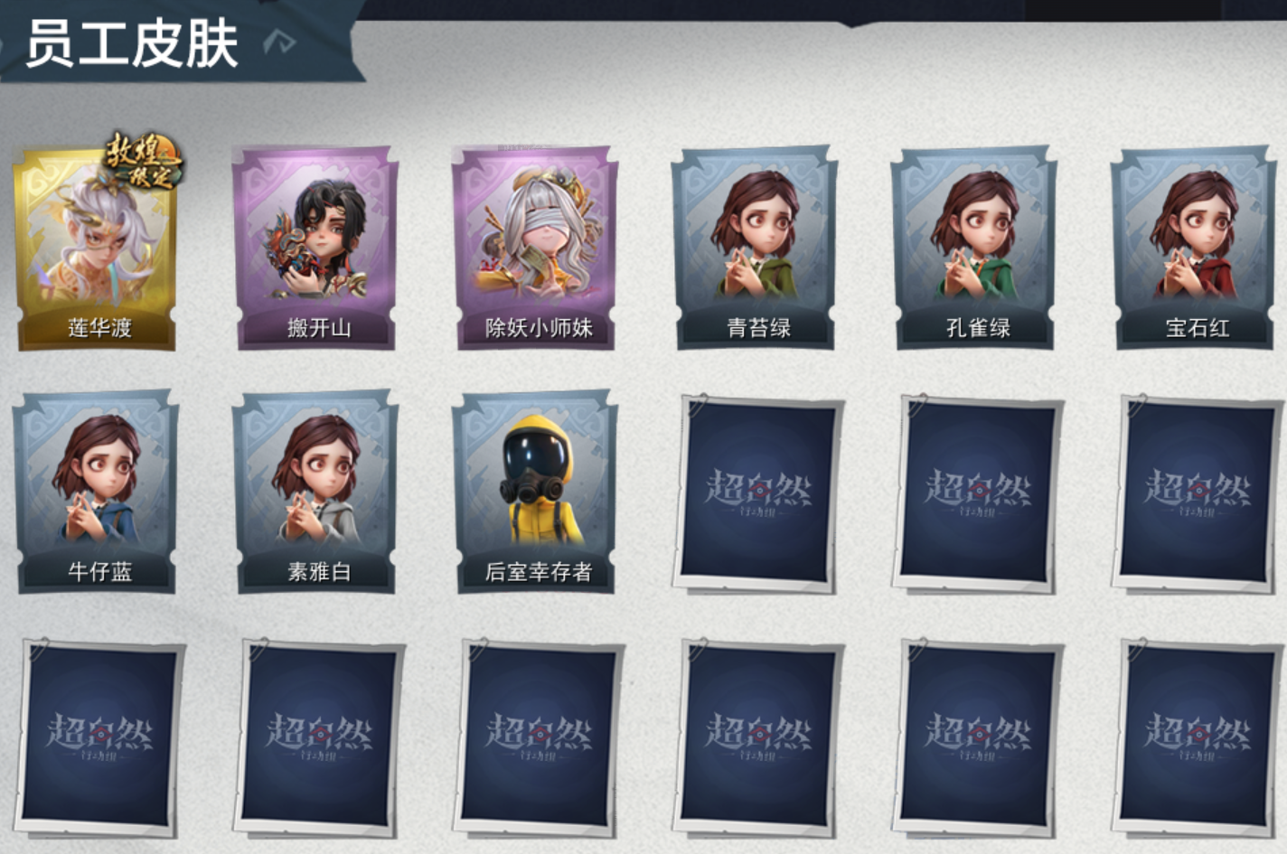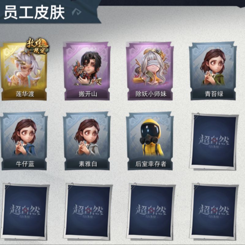 ZR238,金皮:1,紫皮:2,道具皮:3,铲铲币:28w,累充:2100金砖,服装:逍遥-莲华渡、零-搬开山、莉莉-除妖小师妹,员工:小黄、爱丽丝、零、逍遥、薇薇安、莉莉、兰,头饰:太空鲨头套、雪墩墩头套、精致露比头套、鱼头怪头套、烈焰红唇头套、面具马头套、哈士奇头套、萨卡班甲鱼头套、嘻嘻头套、滑稽头套、呆滞头套、卑微头套、像素朋克墨镜、后室幸存者头套,挂饰:九色祥鹿、钗头凤,动作:孤身摇、舞台