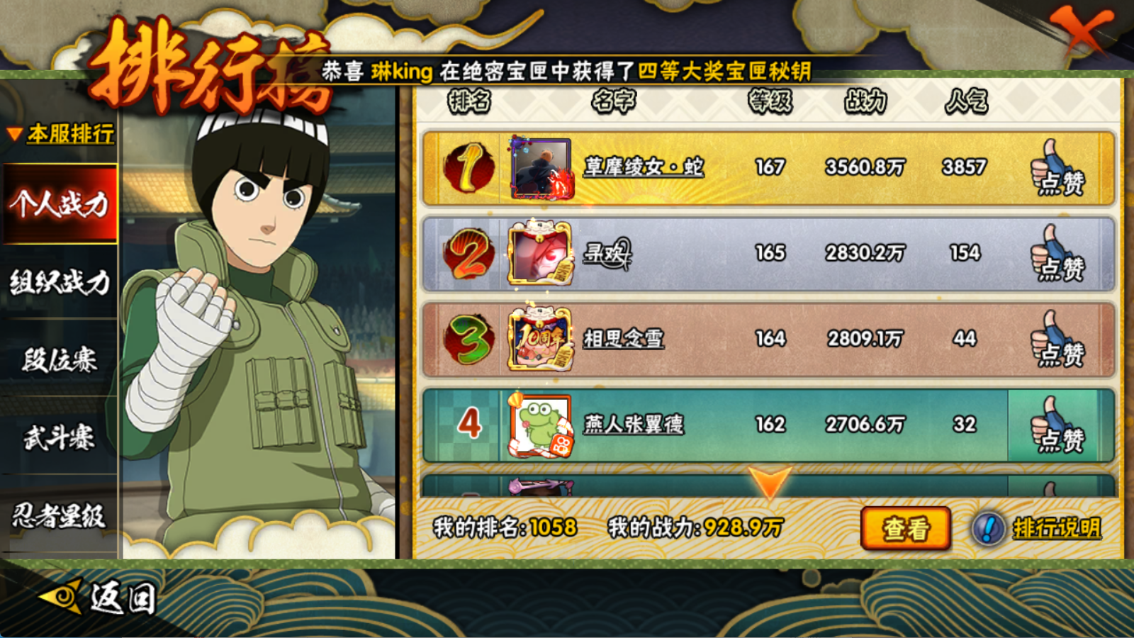 928W战力 五影斑 紫狗 罗砂22S+青水 神农 劳大34A+四百战