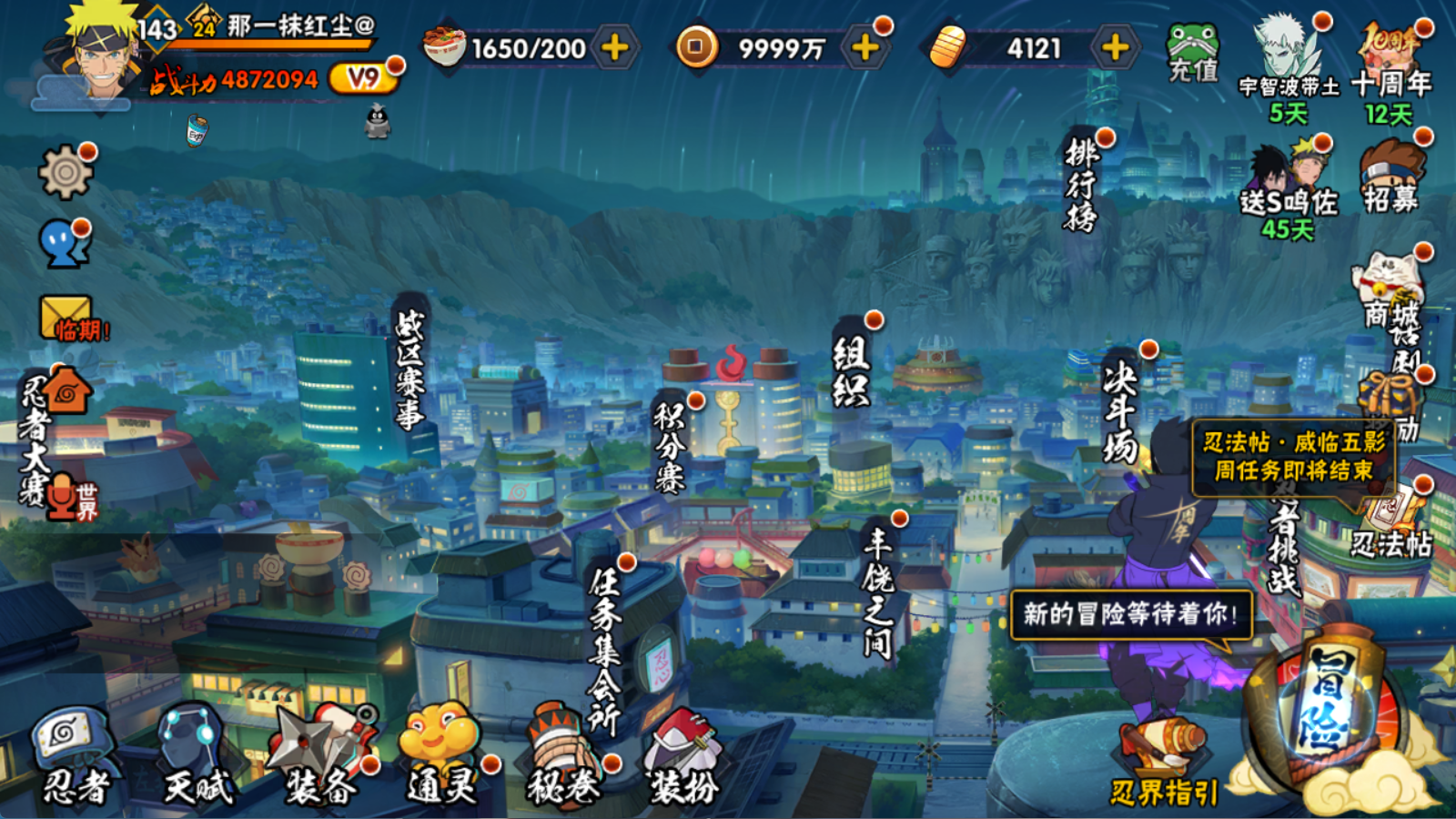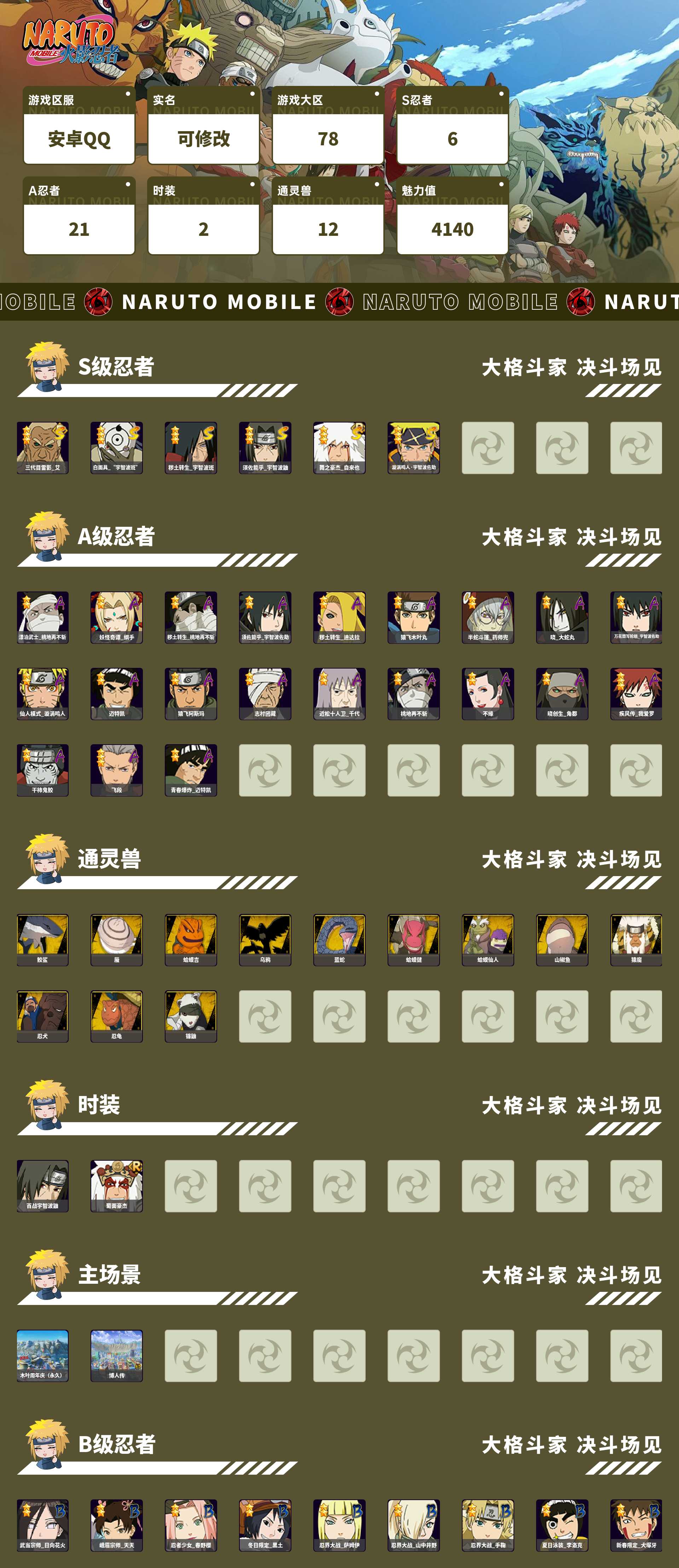 487W战力 三雷子 破面 秽土斑6S+漂泊再不斩 妖怪纲手2个198直购21A