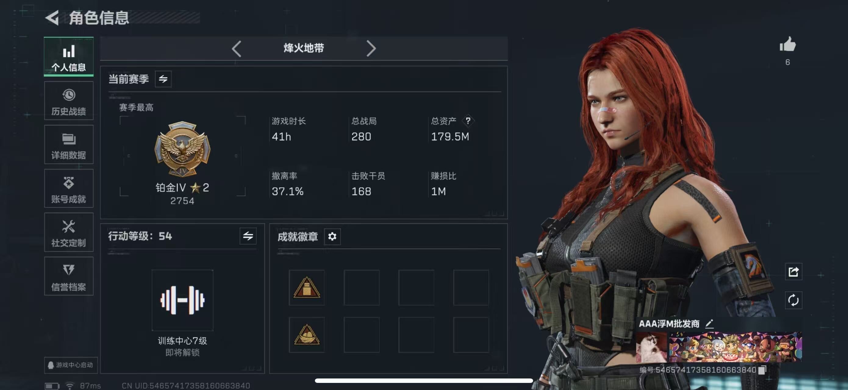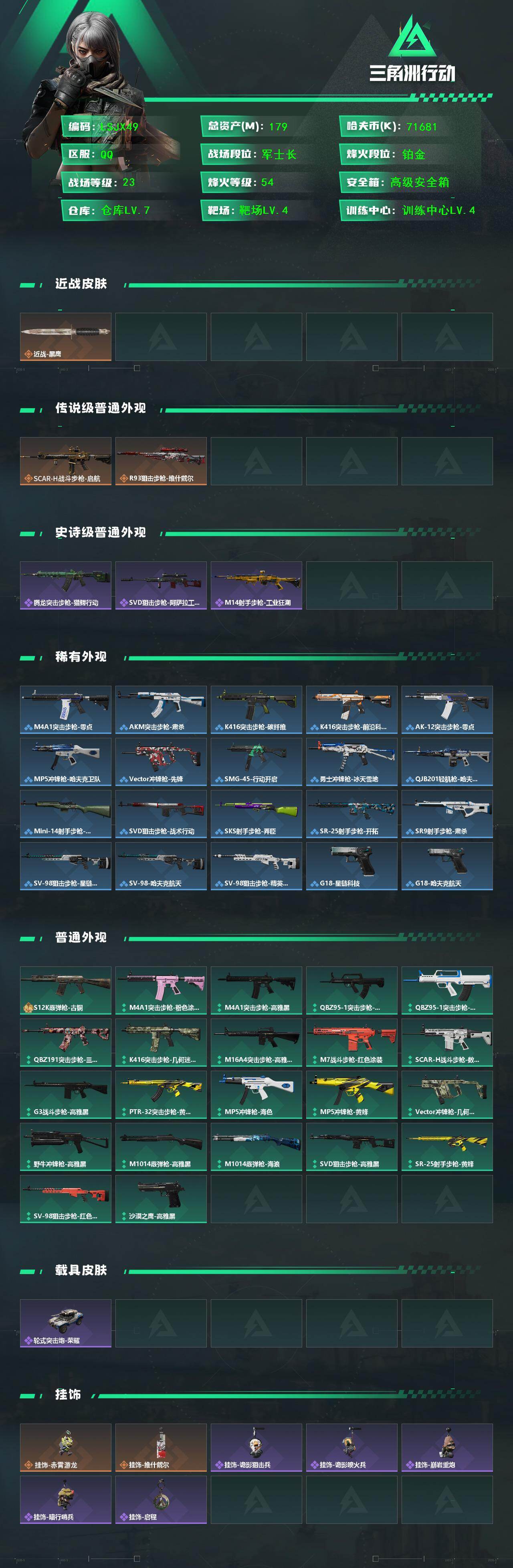 【特价出售/店主推荐】179m总资产-71681k哈伏币-54烽火等级-铂金-23战场等级-军士长