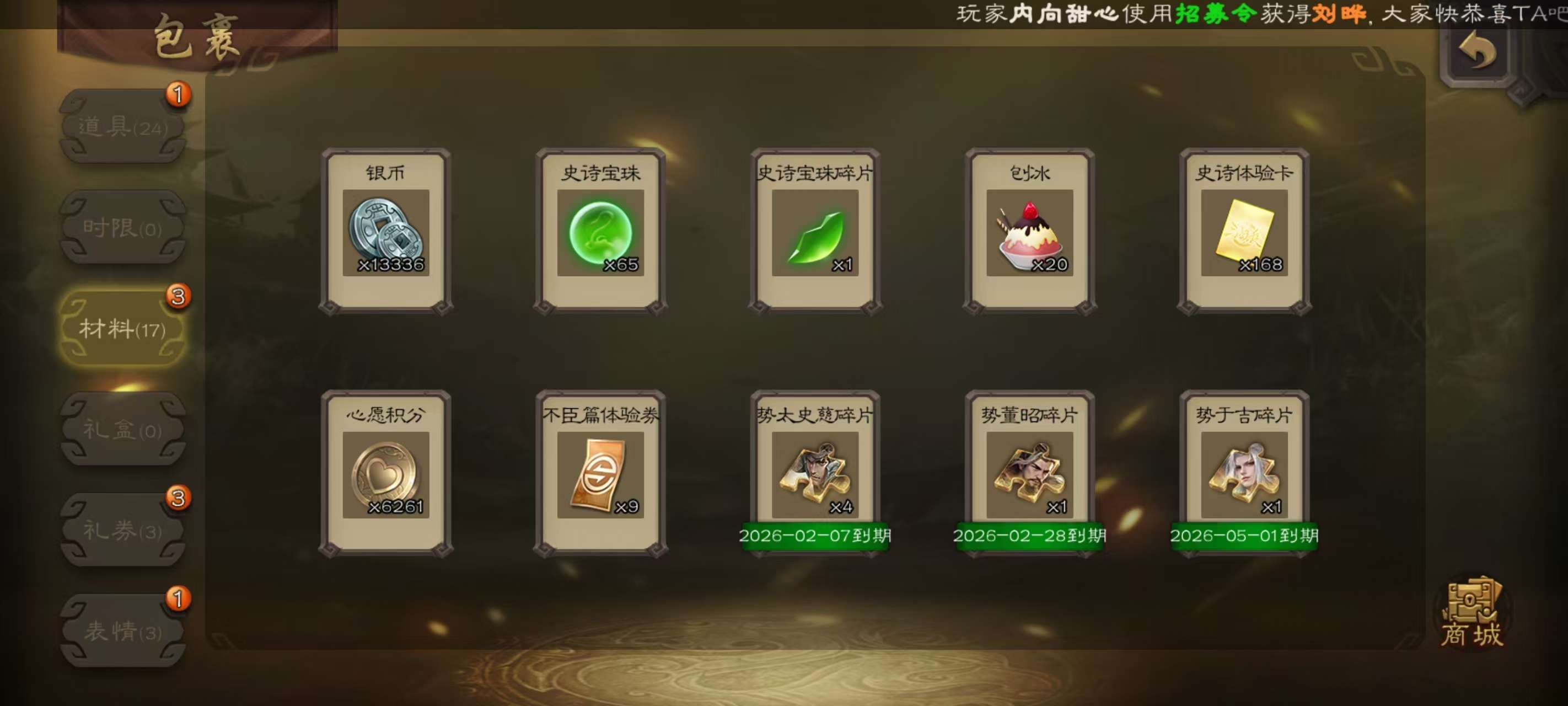 V6,三等大将军,35史诗武将,19动皮,史诗宝珠:64个