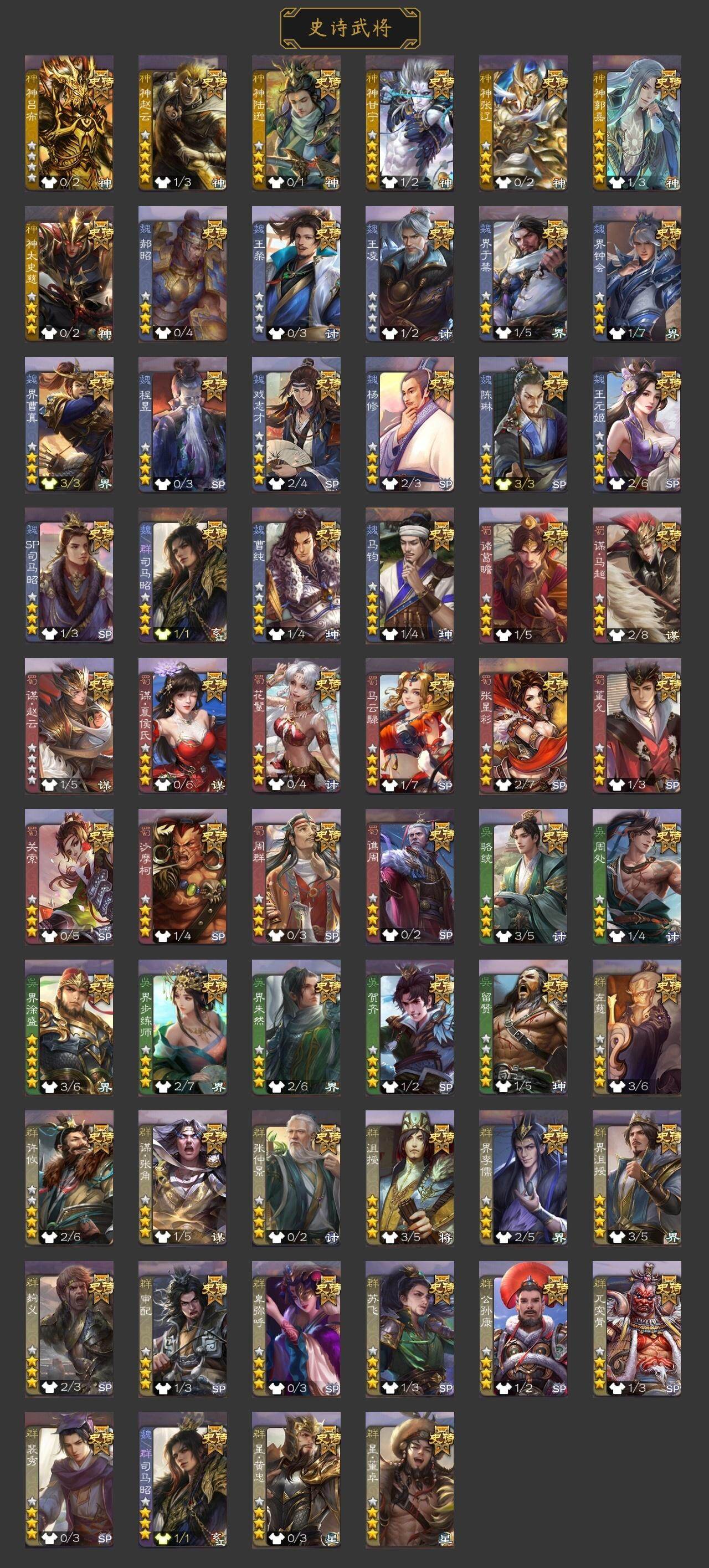 史诗武将数量: