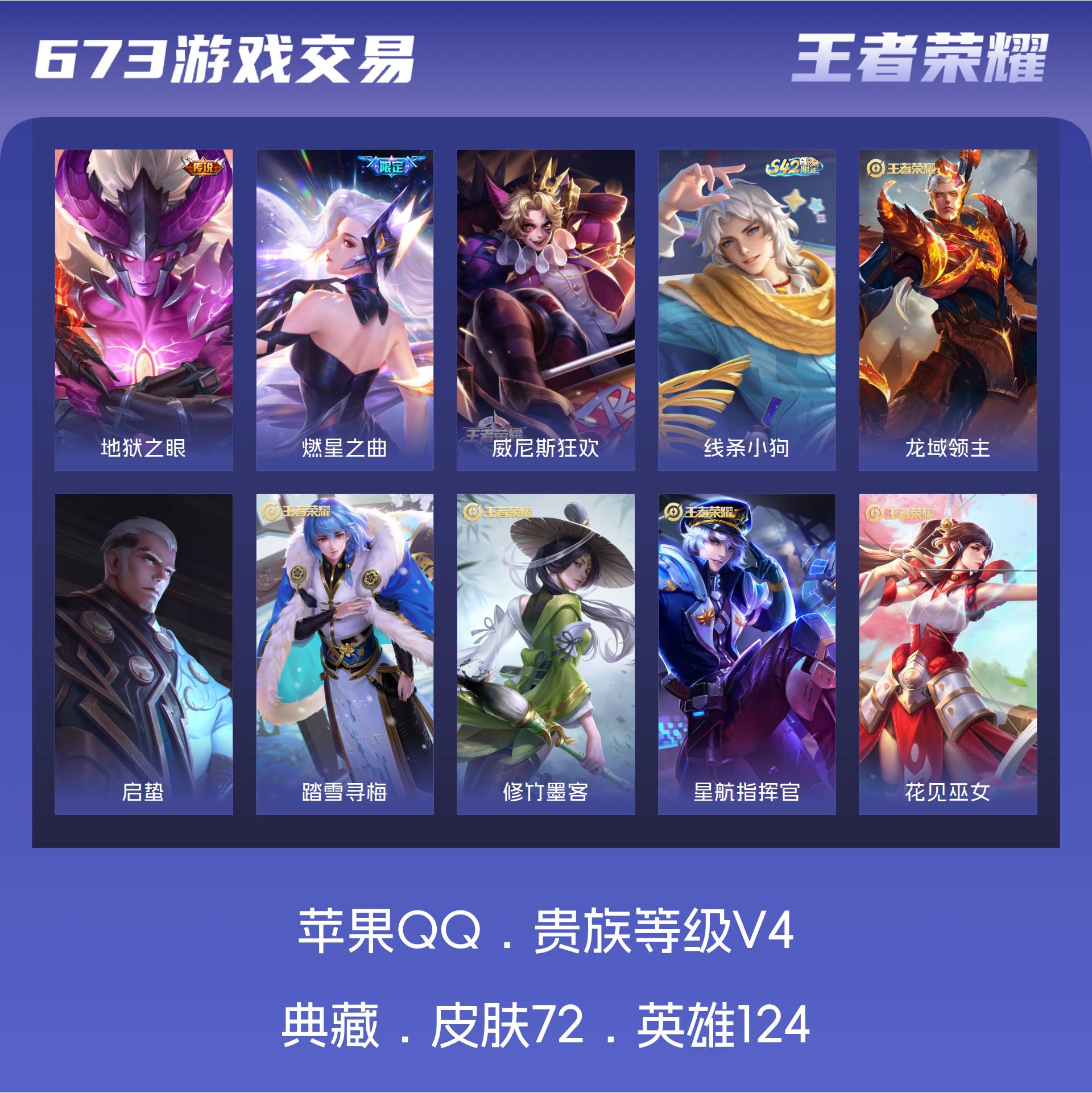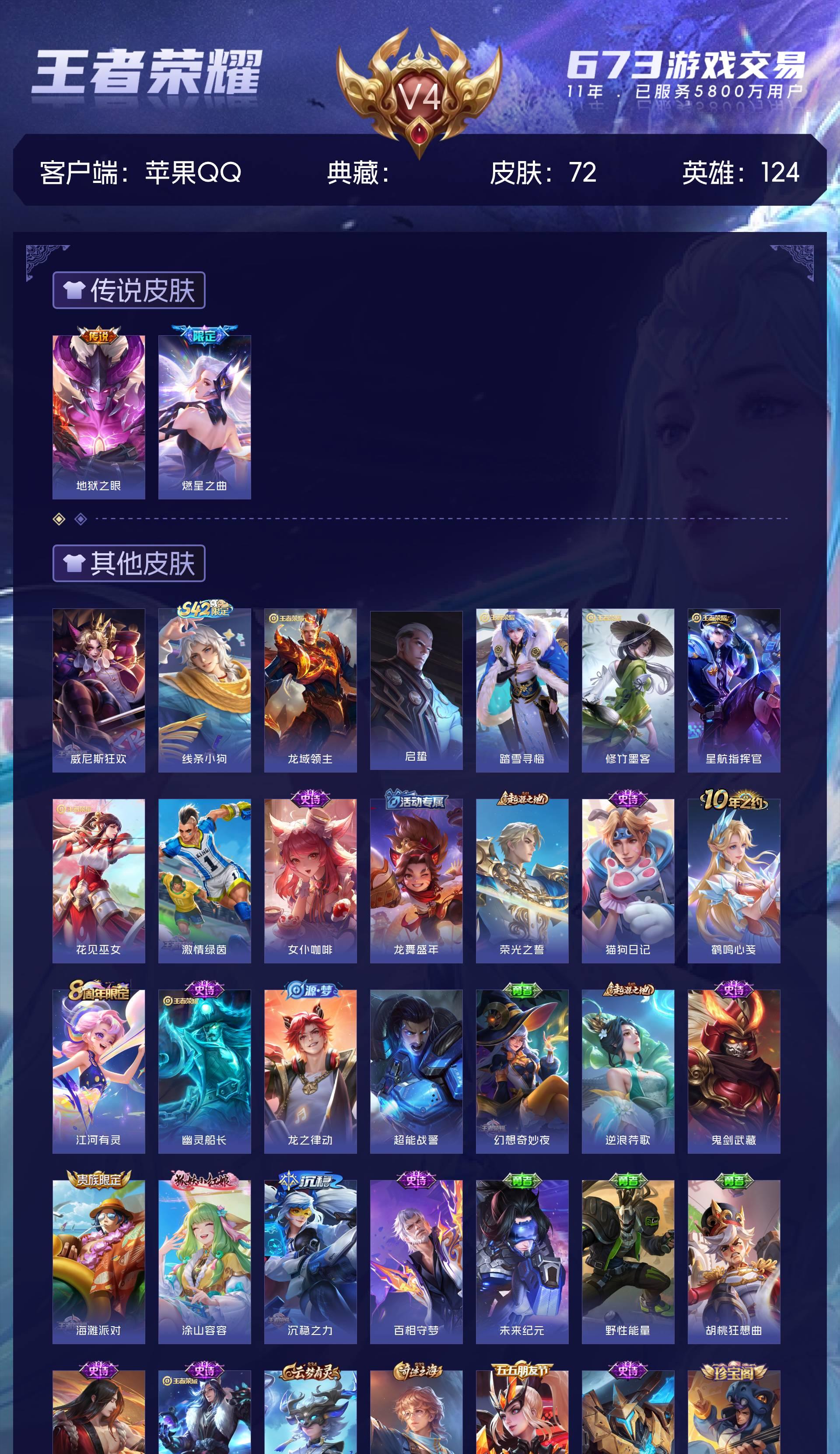 V4 皮肤72 英雄124 永恒钻石 星传说1 传说2 其他皮肤76