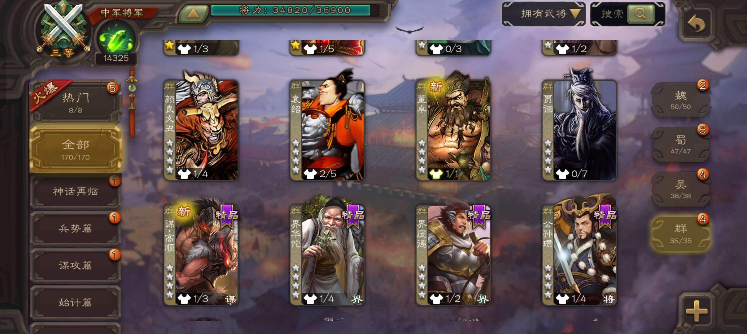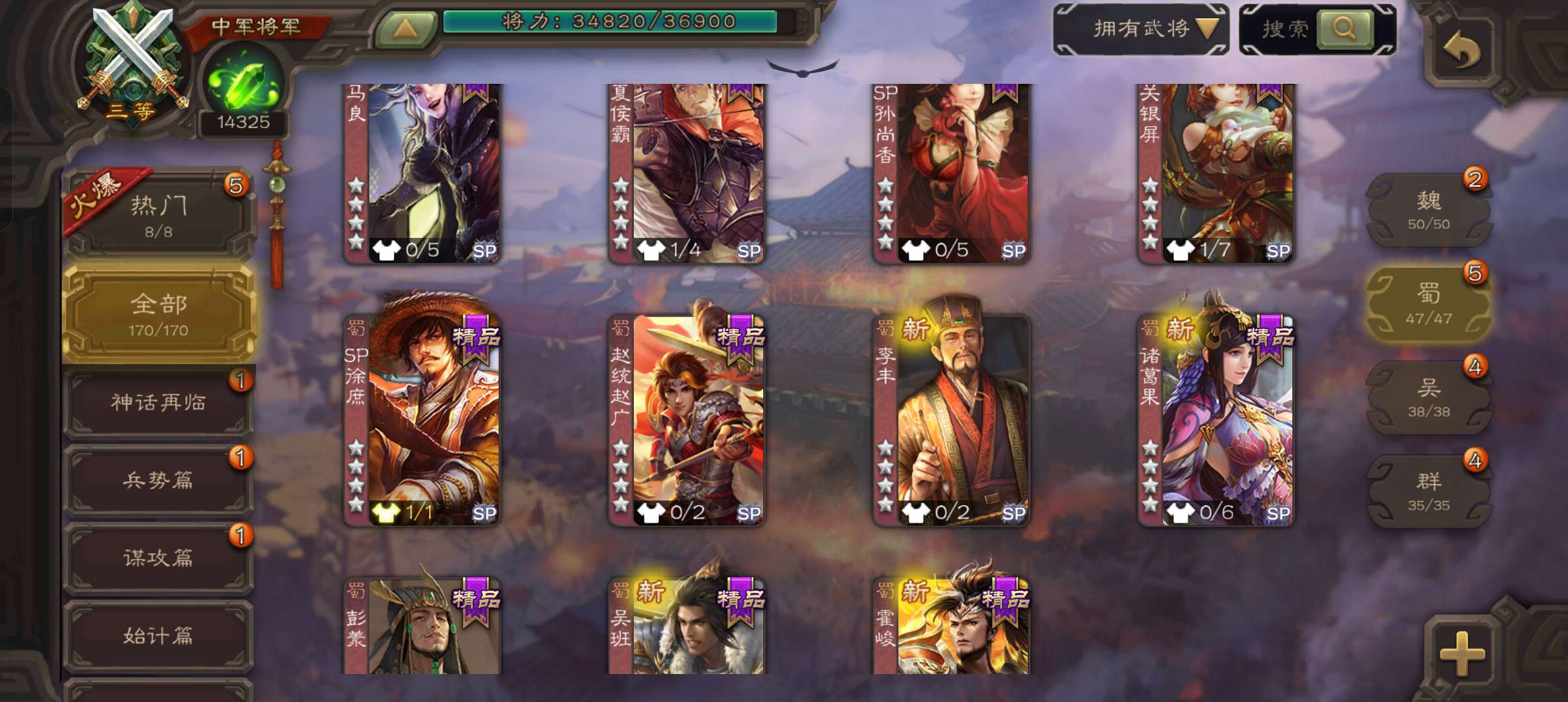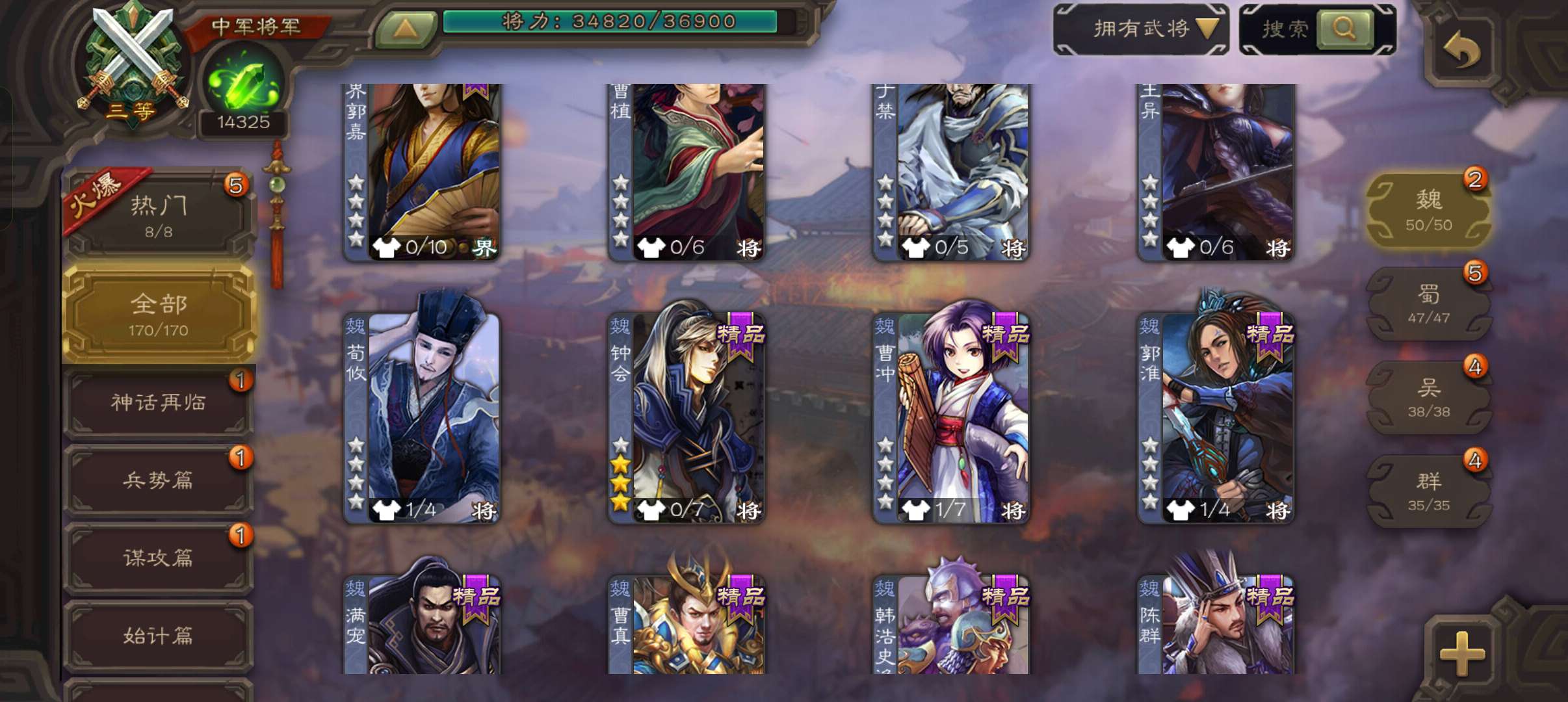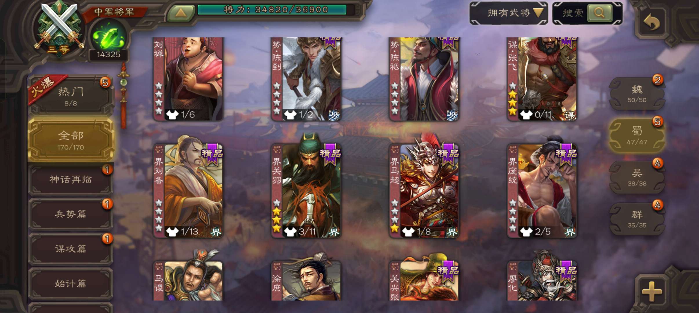 10万羽毛1.4万将魂,金皮大宝界徐盛星黄忠王粲公孙康程昱5史诗中军,谋张飞关银屏动态界关羽170将