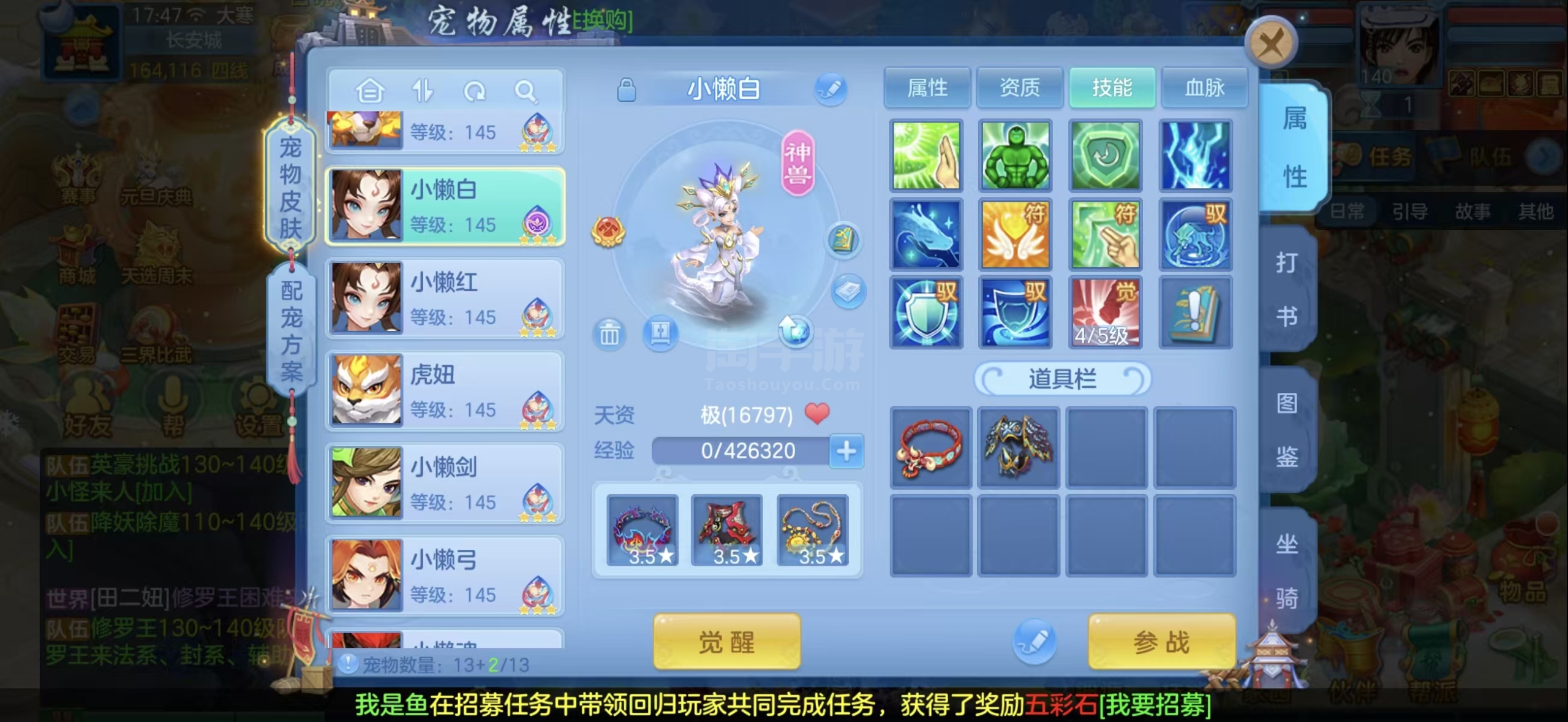 宝宝7红天赋加两内胆蛇,两个13段其他12,双红装备一堆(迅捷易成长鞋子)可以转任何职业