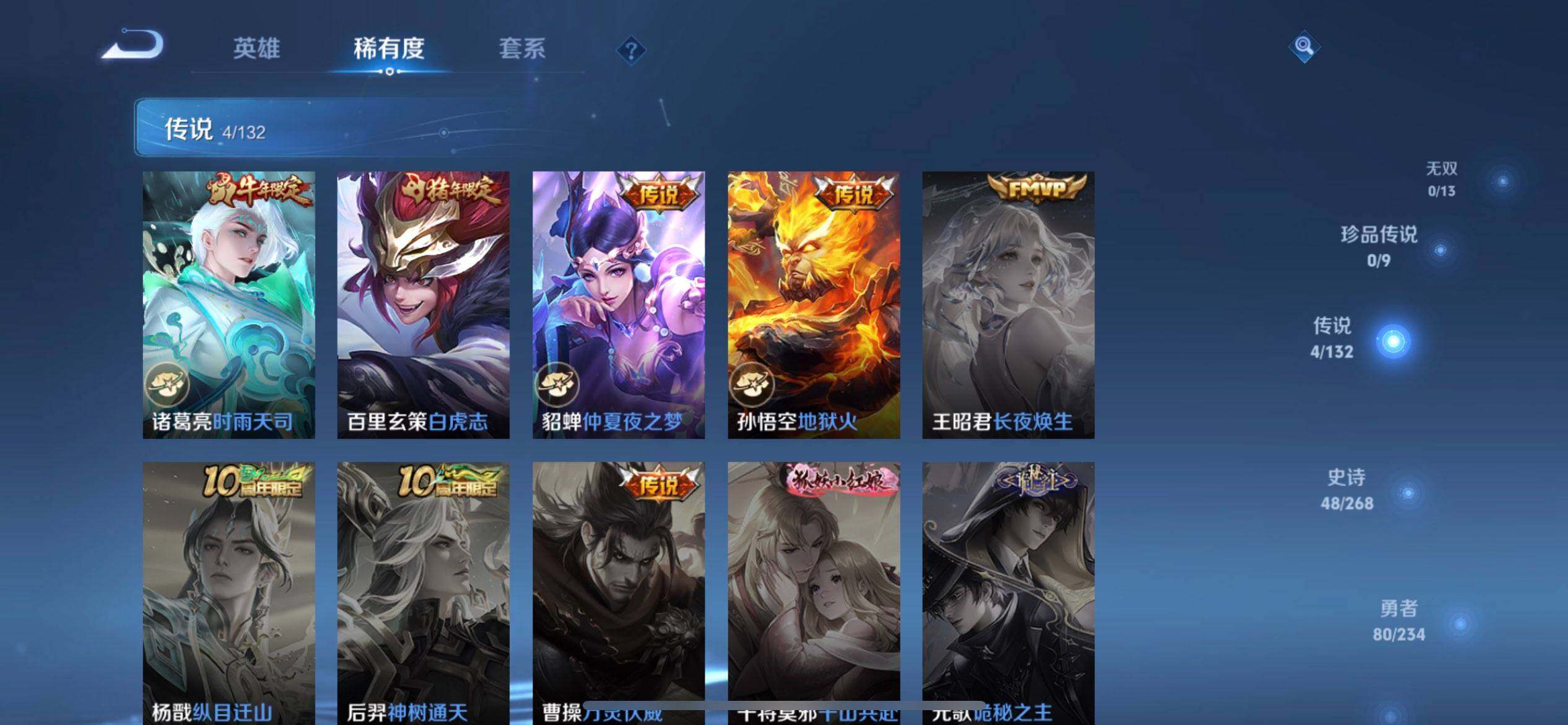 【传说皮肤】:诸葛亮时雨天司,百里玄策白虎志,貂蝉仲夏夜之梦,孙悟空地狱火