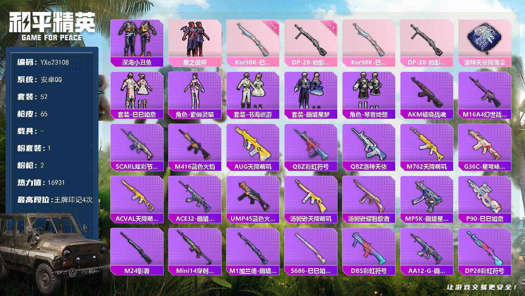 安卓Q-1粉装2特效枪6热门52套装65枪皮 4印记 历史超级王牌8星