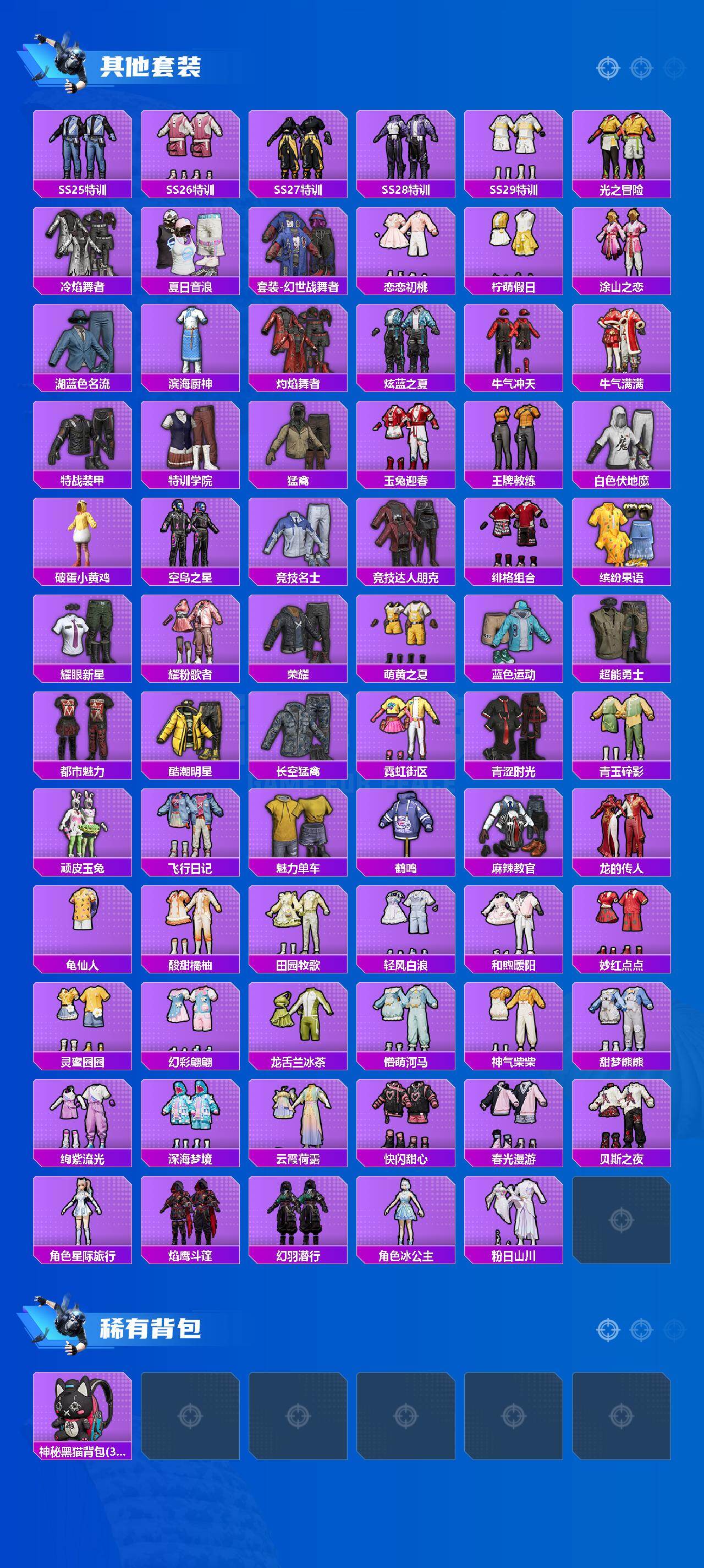 【粉色套装】:粉装-暗夜鎏金,粉装-闲梦青缨,角色-超弦星,角色-萨利娅,粉装-雪月幻音,粉装-星穹咏叹调,角色-荧海星豚,角色-绯穹魔姬,角色-花灵,角色-星渊,角色-羊梦糖心