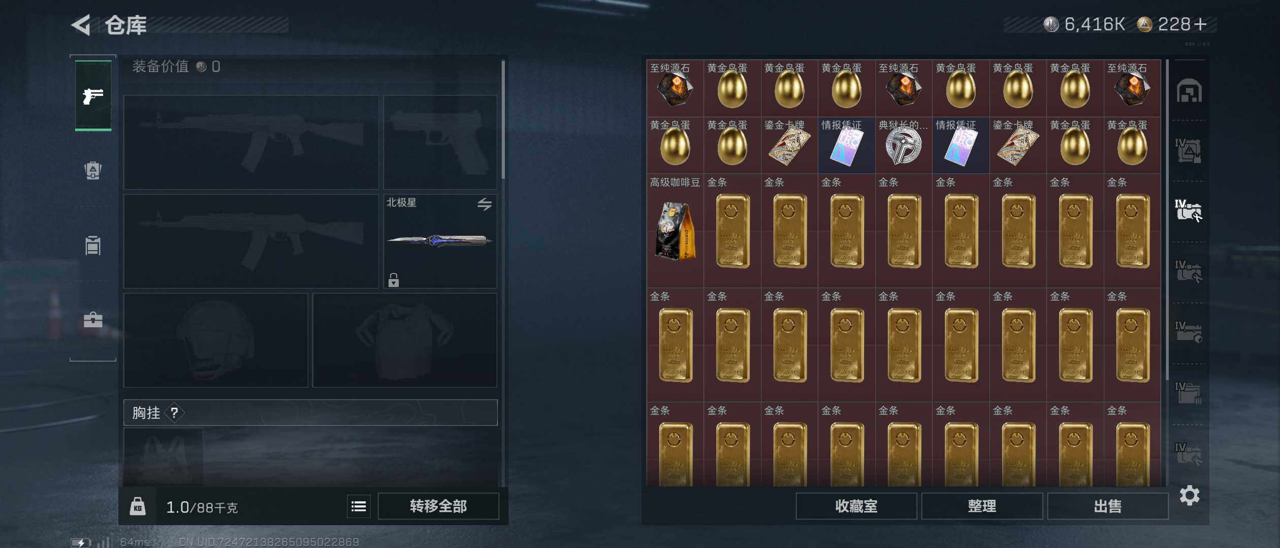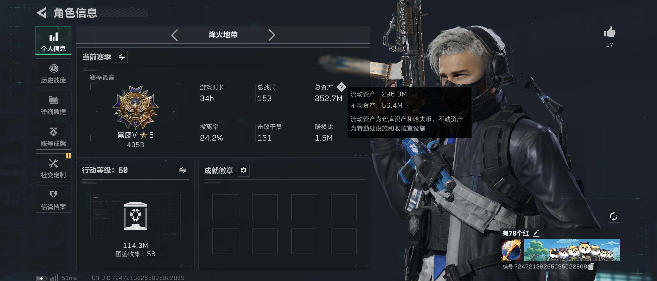 352m总资产-6416k哈伏币-60烽火等级-黑鹰-10战场等级-列兵